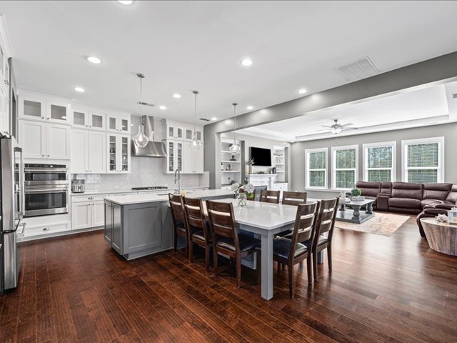 A rare luxury offering in the highly sought-after Waterside at the Catawba community in the Fort Mill school district. This exceptional Taylor Morrison Rochester E model delivers refined design, generous living space, and thoughtful upgrades throughout. Featuring 6 bedrooms, 5.5 baths, and a 3-car garage, the home offers luxury vinyl plank and prefinished hardwood flooring throughout.