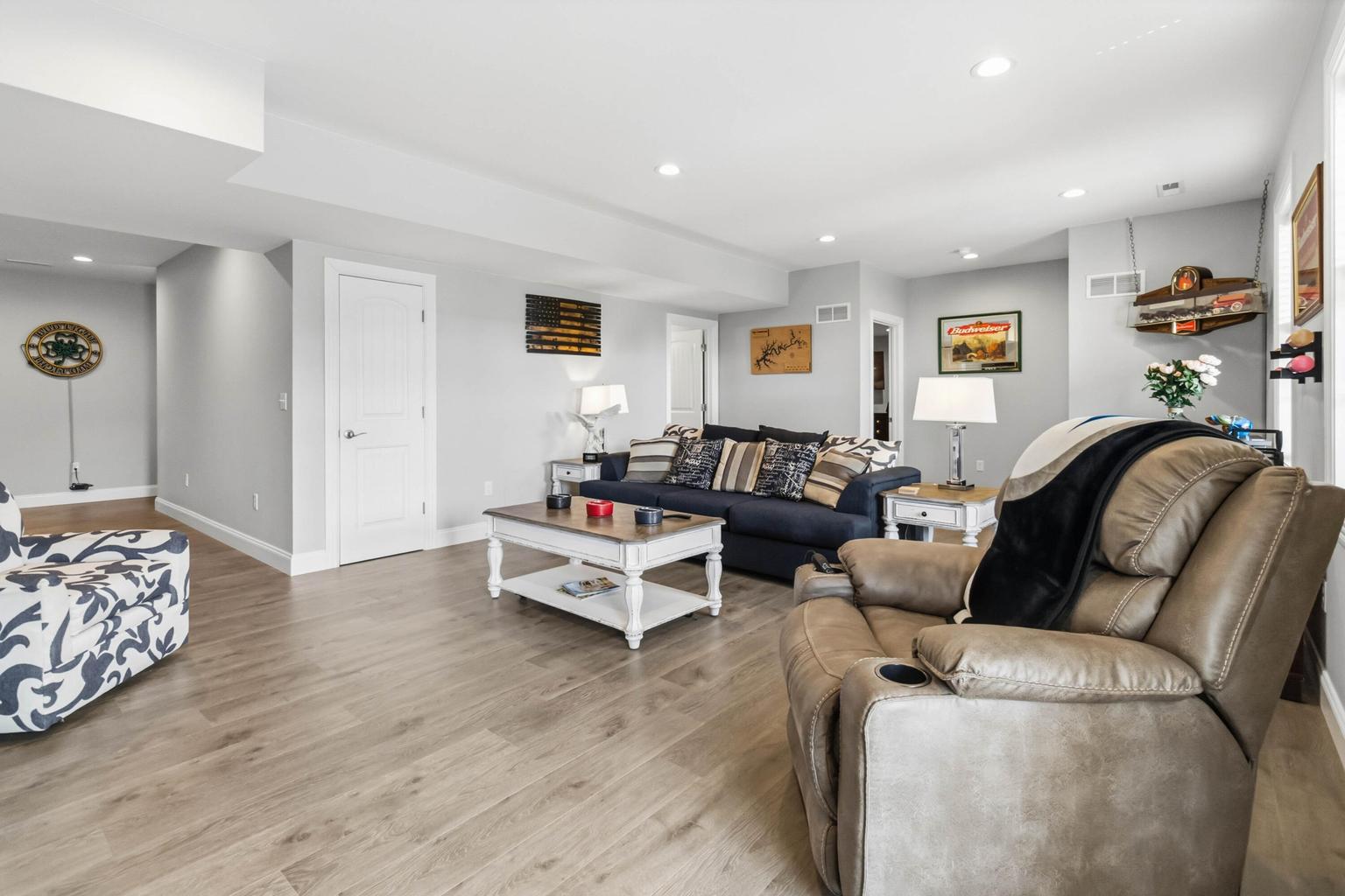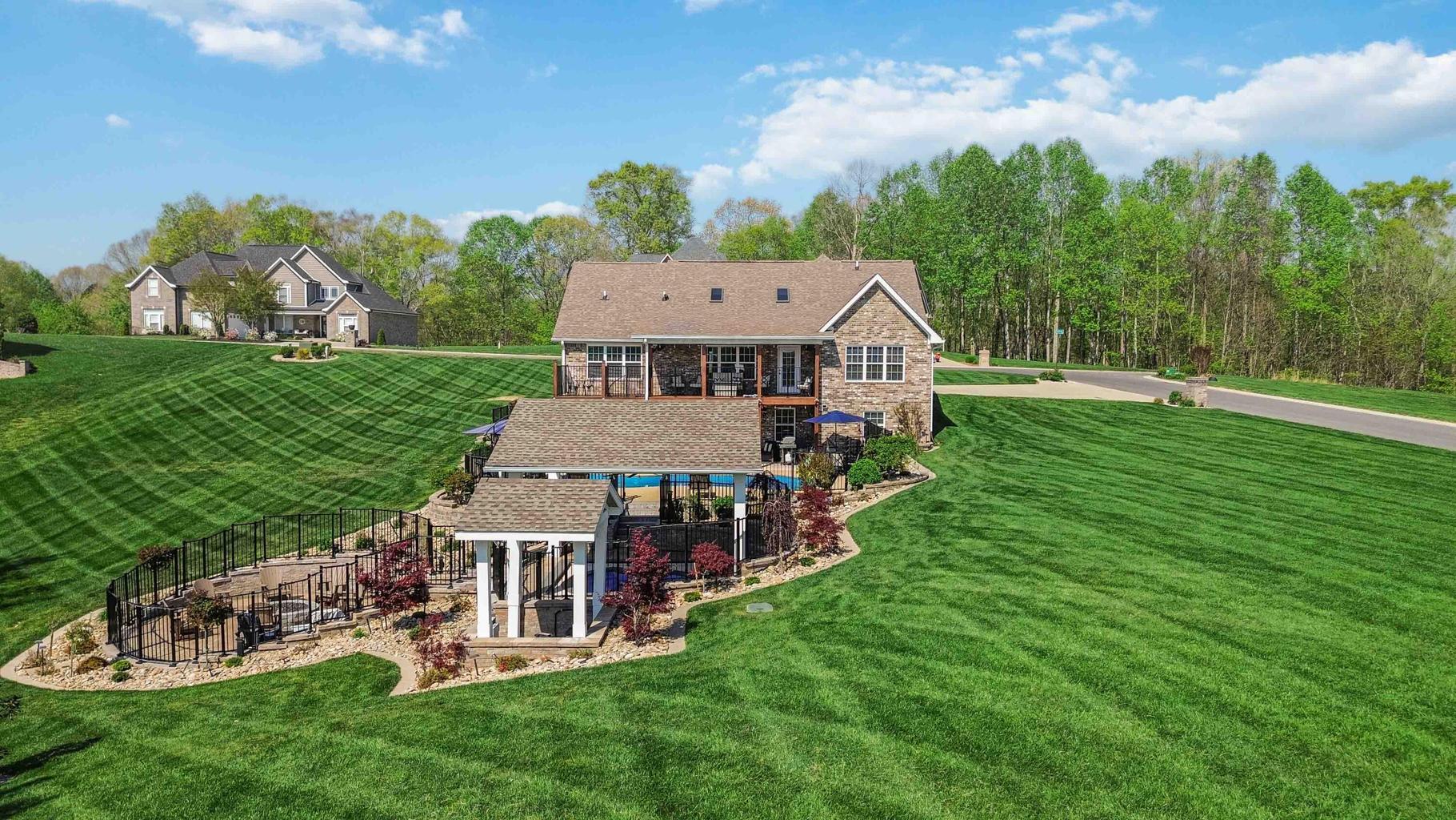 SPECTACULAR meticulously kept home in High Pointe South. Discover the tranquil beauty of this 5 bedroom, 3.5 full bath home with 2 car garage. Why go through the hassle of a new build when you can get this practically new, meticulously kept home today? This home is specifically designed for those who crave a current spacious open 1st floor living area with 9 foot ceilings at its finest. Youll feel welcome once you walk onto the front porch and for the first time walk into the foyer. To the right is the office with French Doors. Once out of the foyer you will enter the expansive great room. The gourmet kitchen with Quartz island leads to the dining area. Youll find that the gourmet kitchen has plenty of cabinets, counter space and a pantry to do your day to day cooking with stainless steel Wi-Fi enabled appliances to convey. Off the family room is the mudroom with access to the garage, half bath and 2nd office. From the dining area is the covered balcony/maintenance free deck with terrific secluded views that is terrific for entertaining and welcoming your guests to this fabulous home. Upstairs there are 4 good sized bedrooms of which the primary bedroom suite has a walk in closet and the primary bathroom with shower stall, double bowl vanity and spa like feel. The other 3 bedrooms share the hall bath and dont miss the 2nd floor laundry room with wash tub. For added living space the lower level recreational room is spacious with rough in plumbing and electric for a wet bar, 5th bedroom and full bath in the back, sliders to the walk out lower level to the back yard and the utilities are tucked away in the utility/storage room which are the HVAC gas forced air system, tankless gas water heater and sump pump. Other property features include, LVP flooring, ceramic tile, and forced air gas HVAC system. The Sellers since purchasing the property added Plantation shutters, faux wood blinds, Bidets in all bathrooms and 4 power wash shower heads. Dont miss out in seeing this terrific home and property.