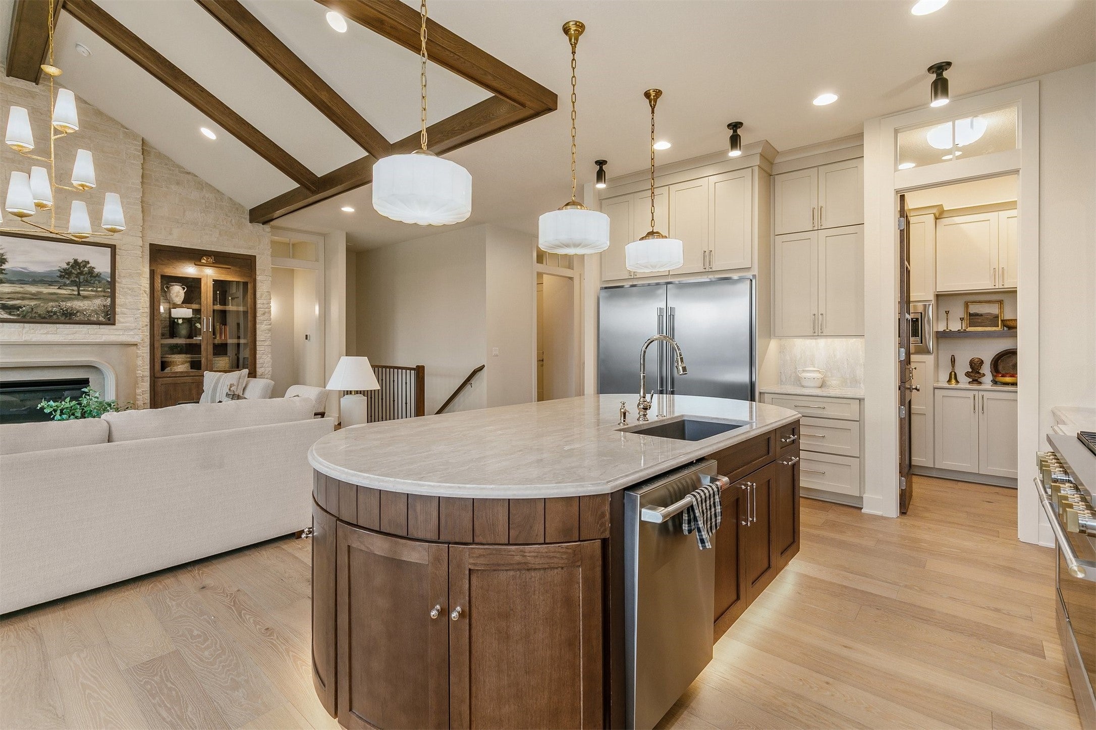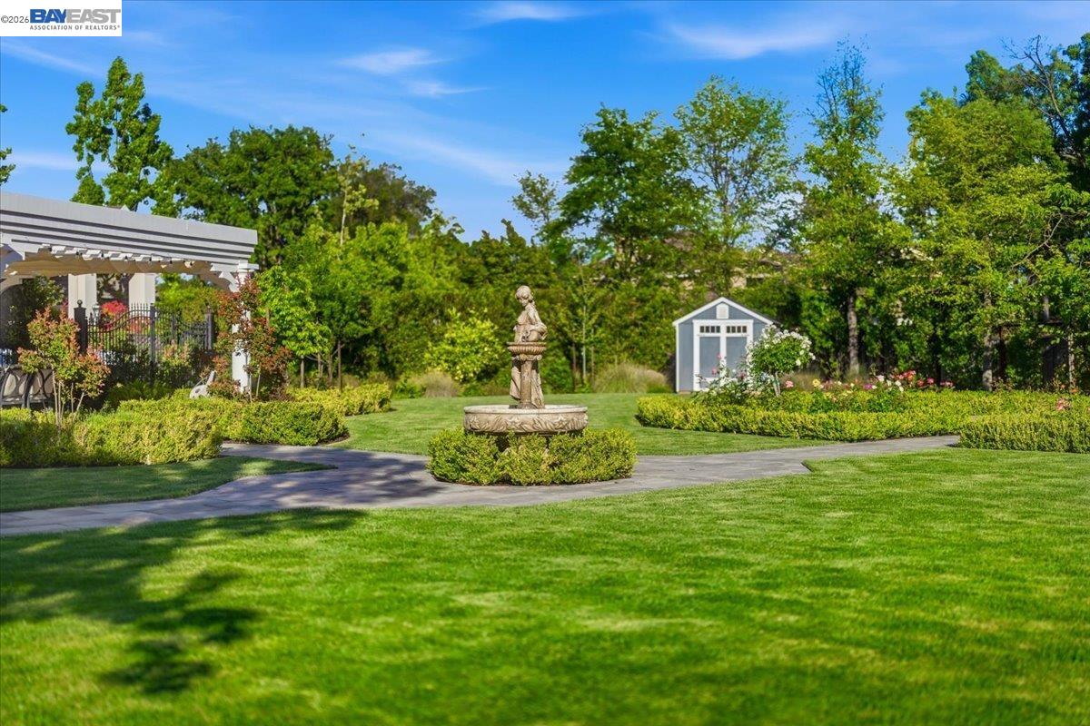 Discover refined elegance in this exceptional custom-built estate in Golden Eagle, an exclusive gated luxury community. This 5-bedroom, 5.5-bath residence offers approximately 6,528 sq ft of living space on a rare, flat 0.85-acre lot and includes a 4-car garage. A grand entry with soaring ceilings and abundant natural light opens to expansive living spaces designed for both everyday living and entertaining. The chefs kitchen is beautifully appointed with a large island, walk-in pantry, built-in wet bar, and premium Thermador appliances, flowing seamlessly into the inviting family room. Thoughtfully designed with an open-concept layout, the home offers two dedicated offices and spacious en-suite bedrooms throughout. The luxurious primary suite is a private retreat featuring a spa-inspired bath with steam shower, soaking tub, and generous walk-in closet. High-end finishes include hardwood and marble flooring, custom cabinetry, designer countertops, and elegant architectural details throughout. Additional highlights include a custom wine cellar, smart home features, tankless water heater, and three-zone HVAC system. The professionally landscaped, garden-like grounds feature a waterfall pond, patio, and a rare, flat backyard offering exceptional space for outdoor living and entertaining. Enjoy a private retreat offering modern luxury, comfort, and practical living in one of Pleasantons most coveted communities.