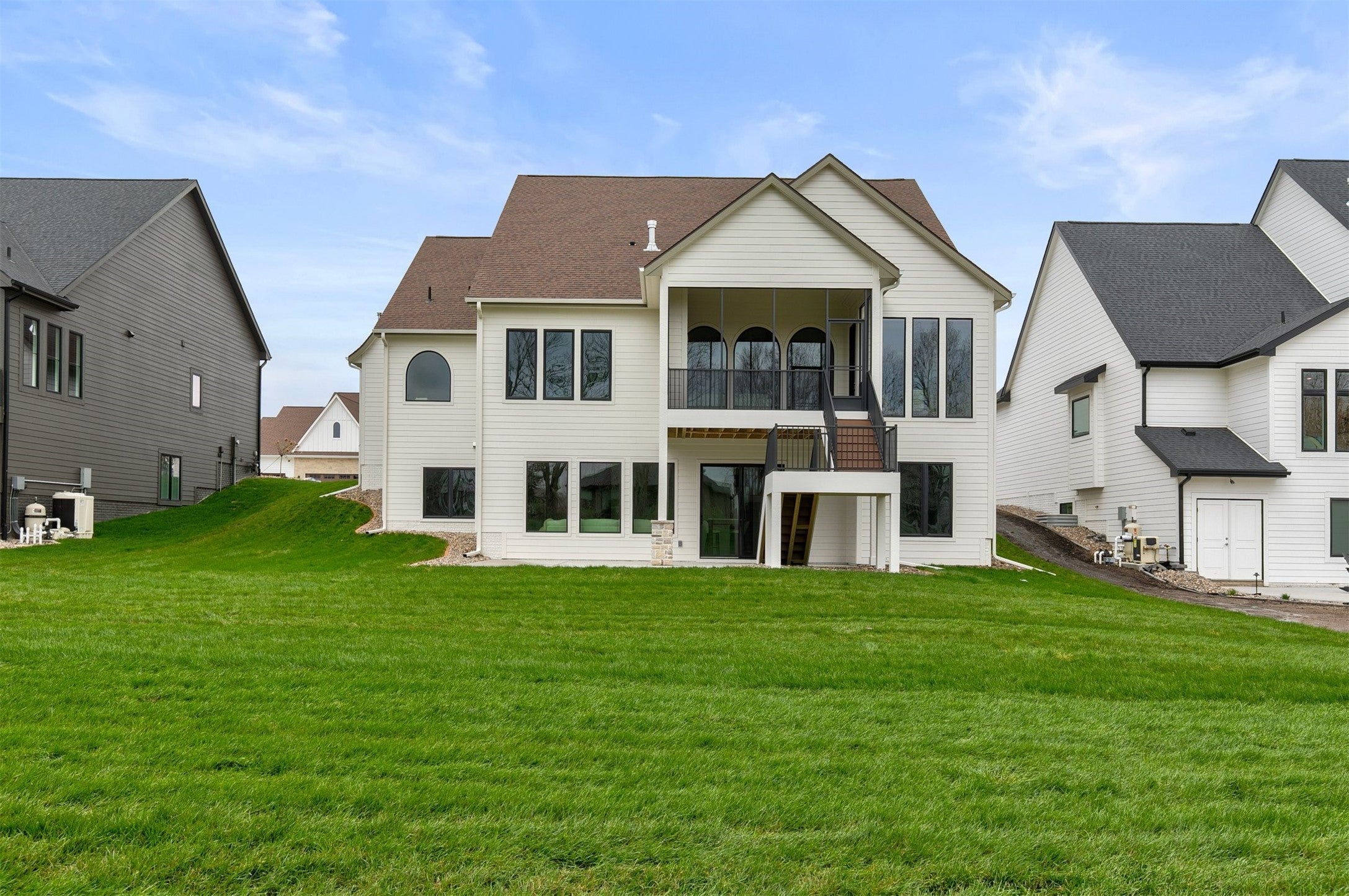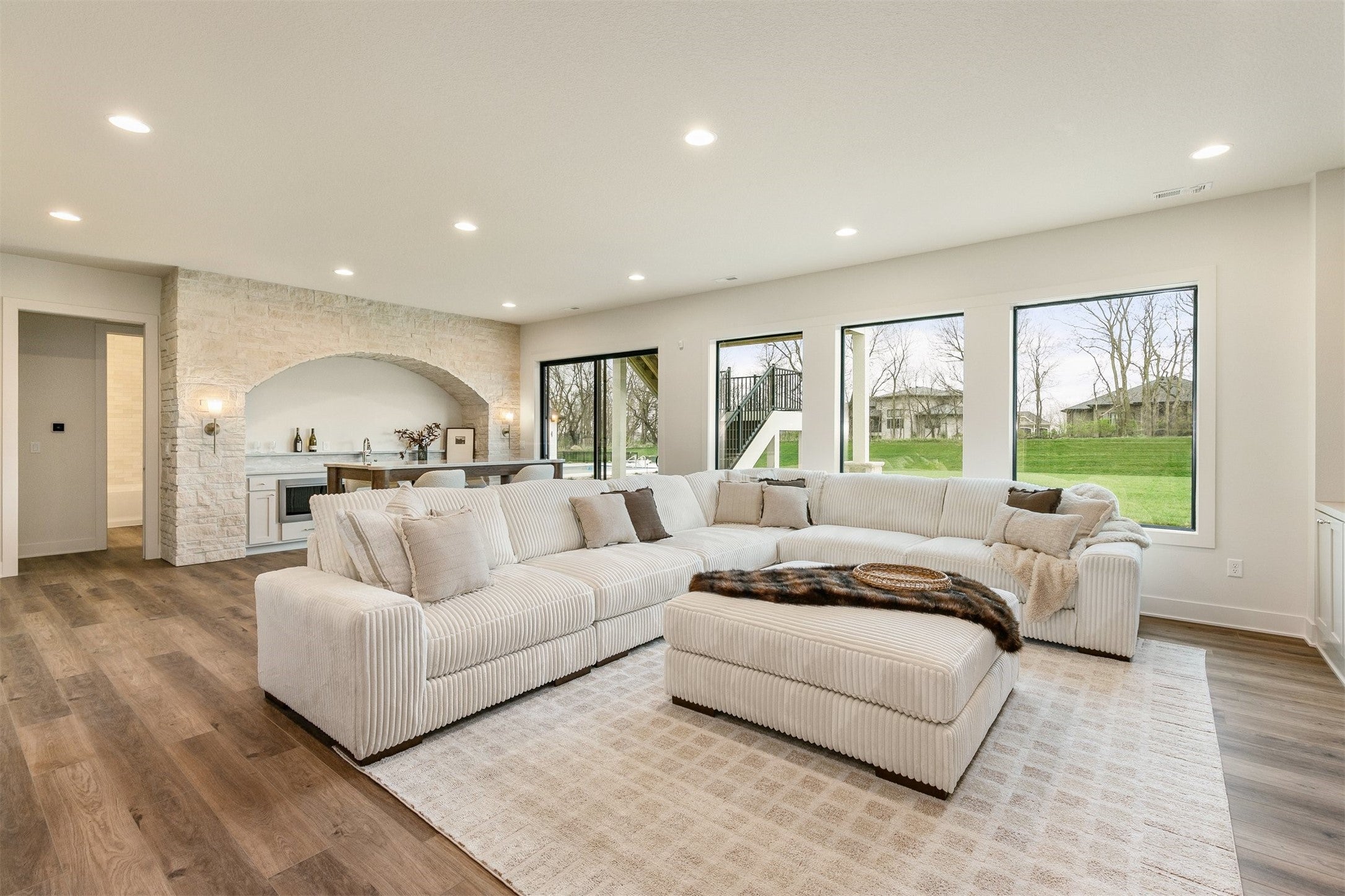 Tucked within Chesterfield Estates, this custom home by Dynasty Homes offers a thoughtful blend of timeless design, quality finishes, and functional living space, with 3,763 finished square feet.Inside, engineered white oak floors, 10 ceilings, and 8 doors create a bright, open feel. The main level is designed for everyday living and entertaining, featuring a chefs kitchen with a 48 Monogram range, custom soft-close cabinetry with smoked mirror accents, ogee-edge countertops, and a walk-in pantry with glass Dutch door. The living area is anchored by a cast stone fireplace and complemented by arched entryways and custom millwork.The primary suite features vaulted ceilings with stained beam accents and a well-appointed bath with zero-entry shower, soaking tub, heated floors, and a custom walk-in closet. A second main-level bedroom includes a private en-suite, along with a half bath for guests.The finished lower level adds additional living space with 10 ceilings and 8 doors, a bar with arched limestone detail, a 400-bottle wine room, and three additional bedrooms with two baths.Outdoor living includes a screened-in composite deck with fireplace. The oversized 4-car garage is heated and finished with epoxy floors, floor drains, and painted walls.Additional features include irrigation, security system, central vac, and extensive upgrades throughout.All information obtained from seller and public records.