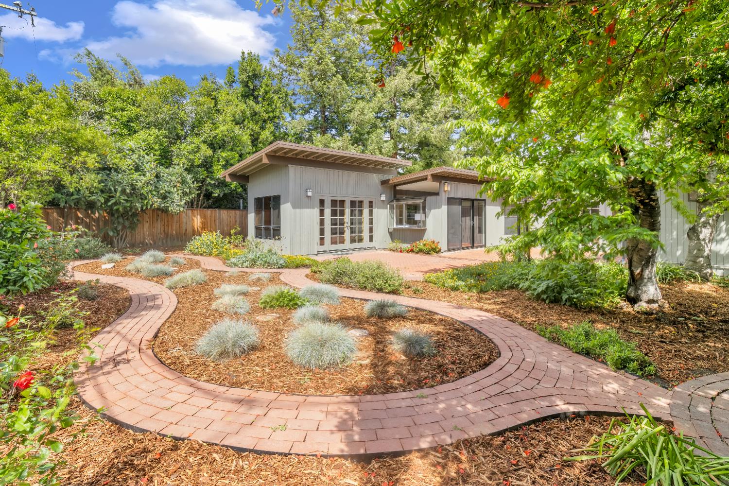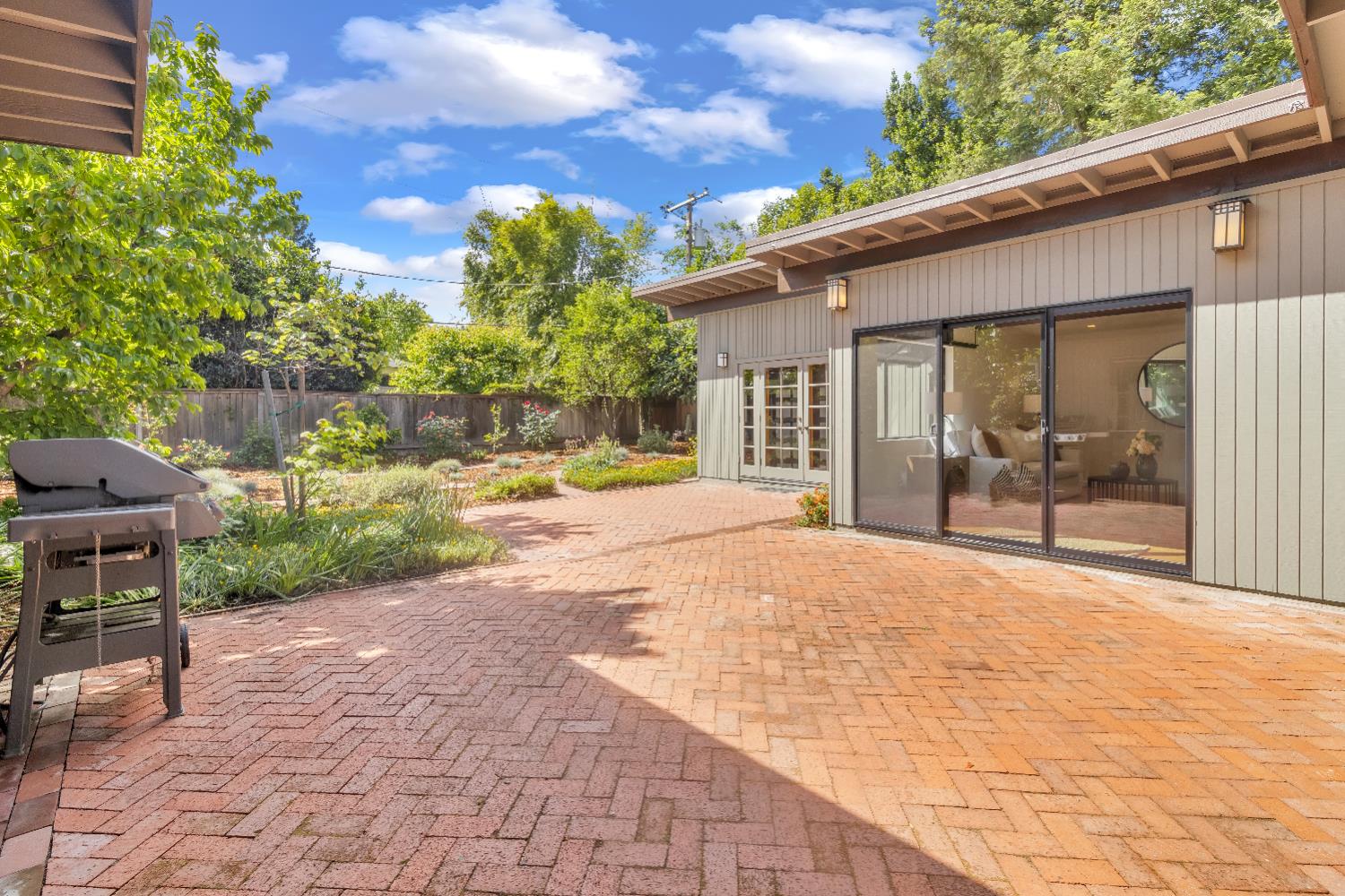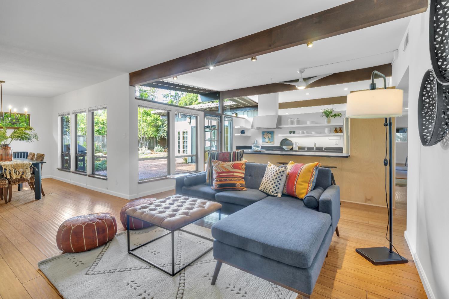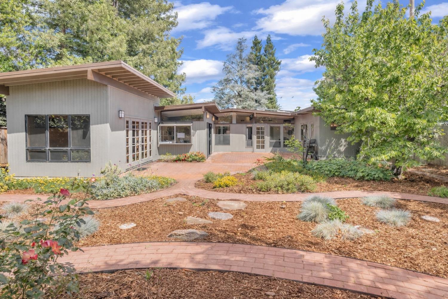 A signature Streng Brothers mid-century modern design, ideally located in one of Daviss most sought-after neighborhoods along the Davis Bike Loop - just a short walk to Willett and Cesar Chavez Elementary and offering quick access to UC Davis and downtown. This 4-bedroom, 2-bathroom home spans 2,151 square feet, showcasing the timeless architectural elements Streng homes are known for. Floor-to-ceiling windows and skylights flood the interior with natural light, creating a seamless connection between indoor and outdoor living. The functional layout includes both formal living and family rooms, offering flexibility for entertaining and everyday living. The remodeled kitchen features leathered granite countertops and an upgraded induction cooktop - perfect for those who love to cook. A raised hearth fireplace with a new insert anchors the living space, adding warmth and character. The spacious primary suite serves as a private retreat, complete with a walk-in closet and a beautifully remodeled bathroom. Secondary bedrooms are generously sized with ample closet space, and a large indoor laundry and utility room adds everyday convenience. Upgrades include interior and exterior paint, a new roof, energy-efficient heat pump, and an owned 5.6 kW solar system for improved efficiency and sustainability. The backyard offers incredible versatility, featuring a large, finished space ideal for a workshop, craft studio, or potential hot tub room. An attached one-car garage provides additional storage. Combining iconic mid-century design, thoughtful updates, and an unbeatable location, this home is a rare opportunity to own a true Davis classic.