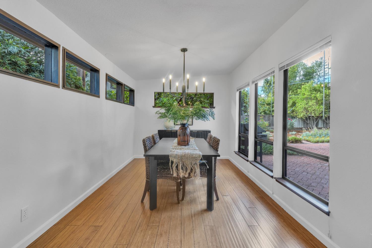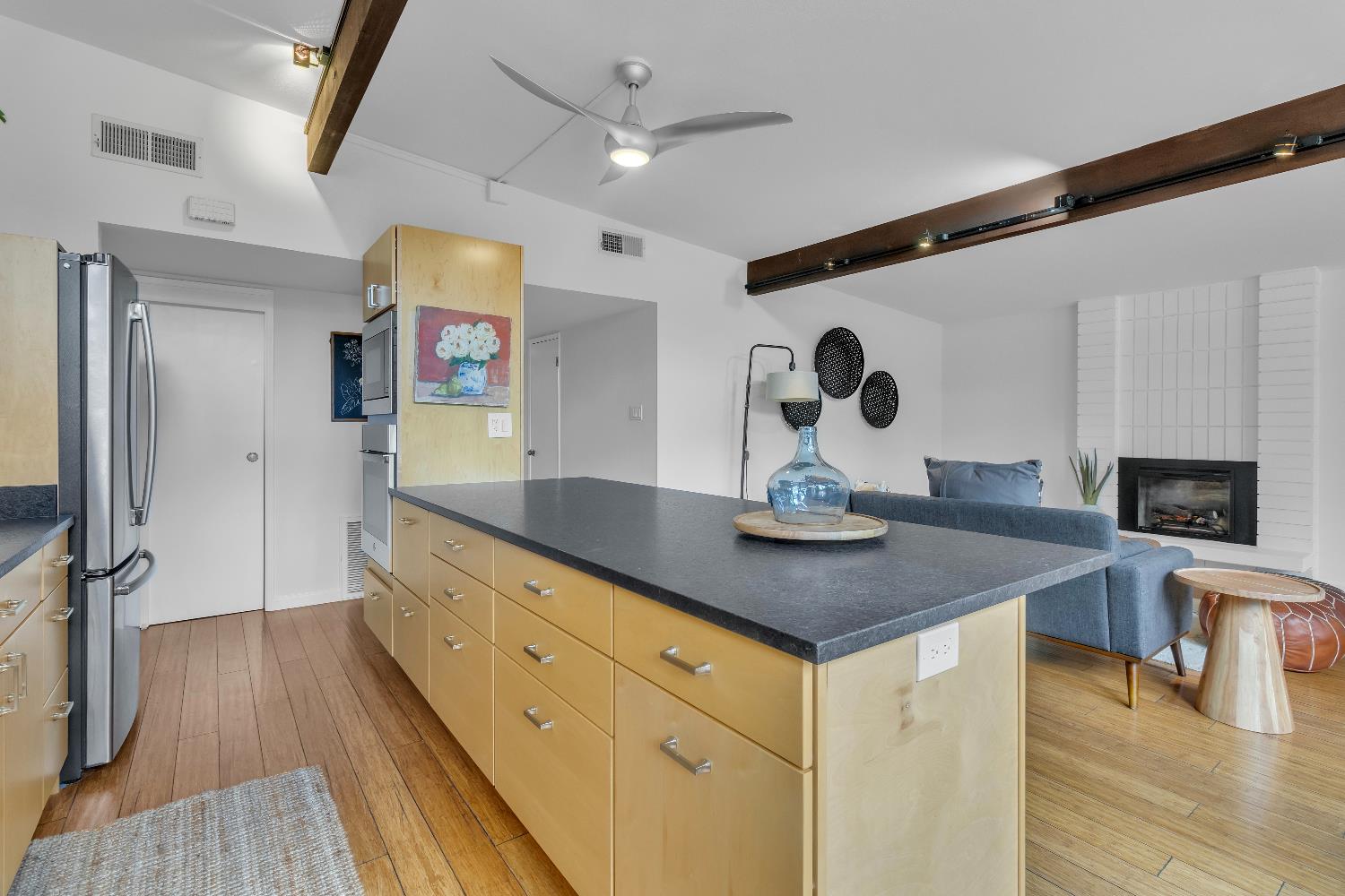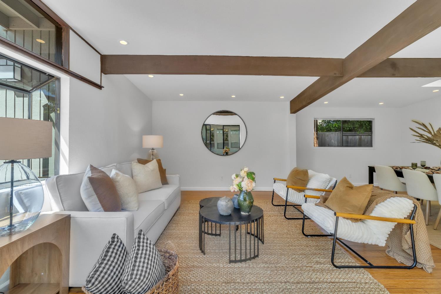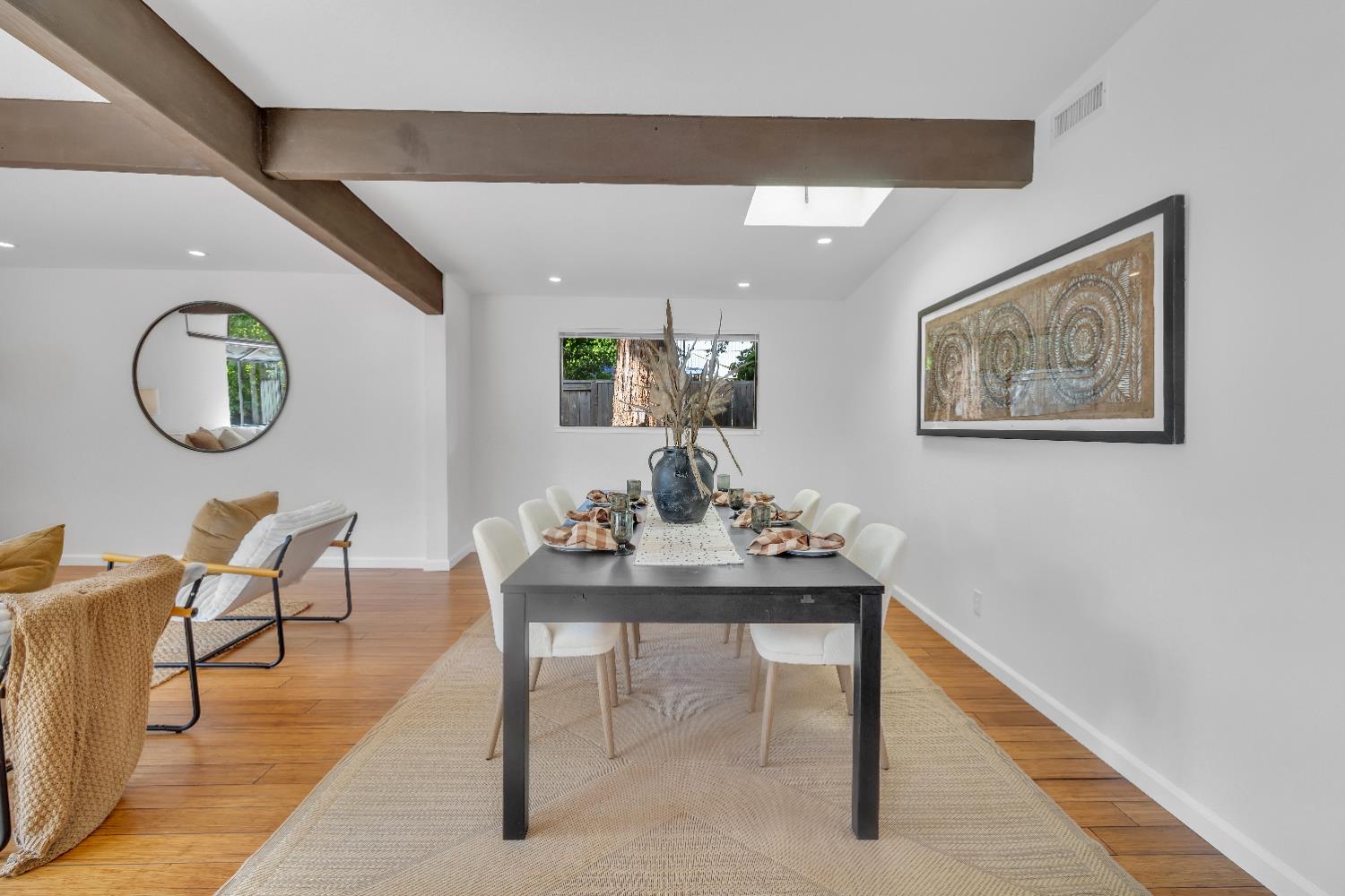 A signature Streng Brothers mid-century modern design, ideally located in one of Daviss most sought-after neighborhoods along the Davis Bike Loop - just a short walk to Willett and Cesar Chavez Elementary and offering quick access to UC Davis and downtown. This 4-bedroom, 2-bathroom home spans 2,151 square feet, showcasing the timeless architectural elements Streng homes are known for. Floor-to-ceiling windows and skylights flood the interior with natural light, creating a seamless connection between indoor and outdoor living. The functional layout includes both formal living and family rooms, offering flexibility for entertaining and everyday living. The remodeled kitchen features leathered granite countertops and an upgraded induction cooktop - perfect for those who love to cook. A raised hearth fireplace with a new insert anchors the living space, adding warmth and character. The spacious primary suite serves as a private retreat, complete with a walk-in closet and a beautifully remodeled bathroom. Secondary bedrooms are generously sized with ample closet space, and a large indoor laundry and utility room adds everyday convenience. Upgrades include interior and exterior paint, a new roof, energy-efficient heat pump, and an owned 5.6 kW solar system for improved efficiency and sustainability. The backyard offers incredible versatility, featuring a large, finished space ideal for a workshop, craft studio, or potential hot tub room. An attached one-car garage provides additional storage. Combining iconic mid-century design, thoughtful updates, and an unbeatable location, this home is a rare opportunity to own a true Davis classic.