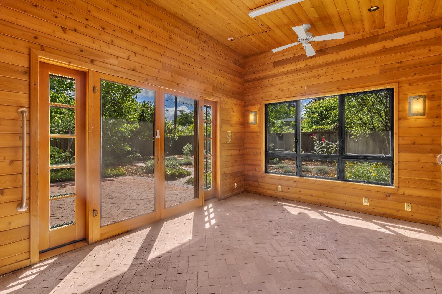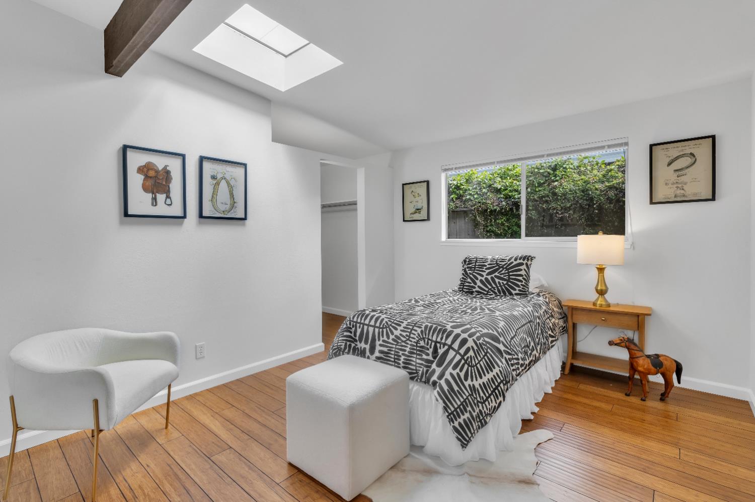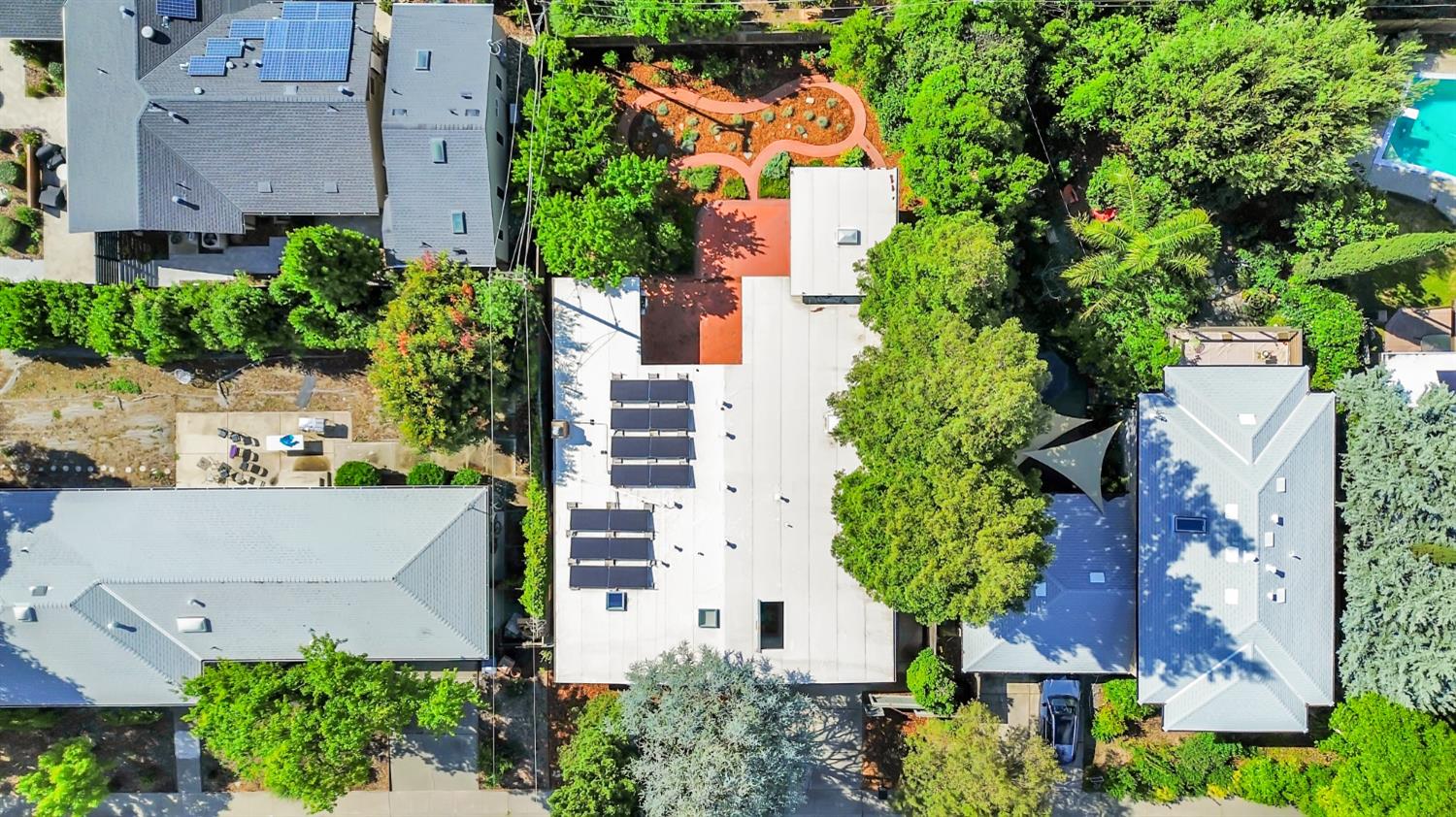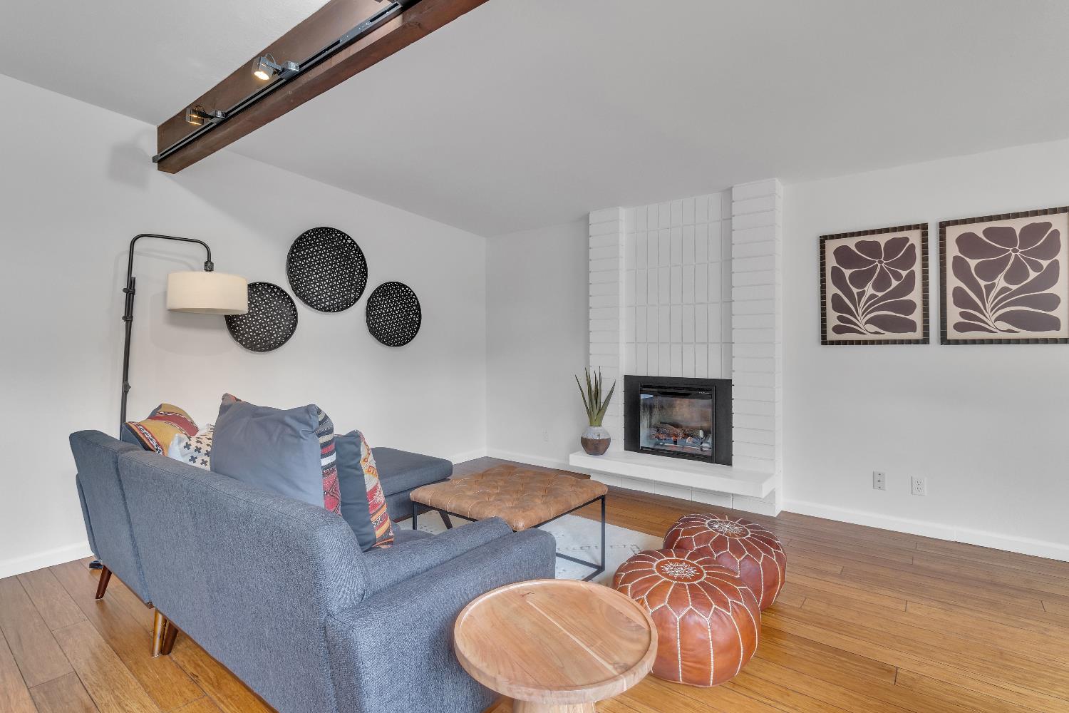 A signature Streng Brothers mid-century modern design, ideally located in one of Daviss most sought-after neighborhoods along the Davis Bike Loop - just a short walk to Willett and Cesar Chavez Elementary and offering quick access to UC Davis and downtown. This 4-bedroom, 2-bathroom home spans 2,151 square feet, showcasing the timeless architectural elements Streng homes are known for. Floor-to-ceiling windows and skylights flood the interior with natural light, creating a seamless connection between indoor and outdoor living. The functional layout includes both formal living and family rooms, offering flexibility for entertaining and everyday living. The remodeled kitchen features leathered granite countertops and an upgraded induction cooktop - perfect for those who love to cook. A raised hearth fireplace with a new insert anchors the living space, adding warmth and character. The spacious primary suite serves as a private retreat, complete with a walk-in closet and a beautifully remodeled bathroom. Secondary bedrooms are generously sized with ample closet space, and a large indoor laundry and utility room adds everyday convenience. Upgrades include interior and exterior paint, a new roof, energy-efficient heat pump, and an owned 5.6 kW solar system for improved efficiency and sustainability. The backyard offers incredible versatility, featuring a large, finished space ideal for a workshop, craft studio, or potential hot tub room. An attached one-car garage provides additional storage. Combining iconic mid-century design, thoughtful updates, and an unbeatable location, this home is a rare opportunity to own a true Davis classic.
