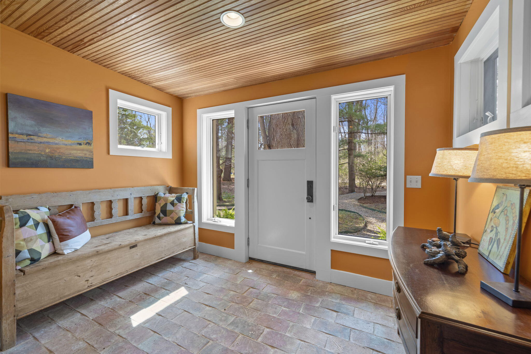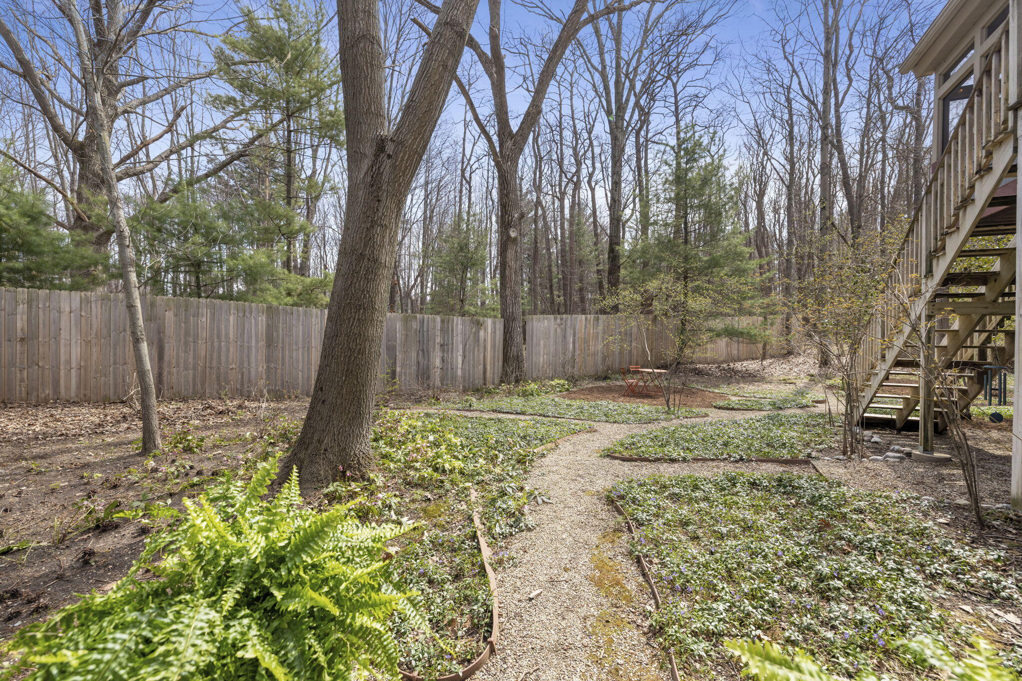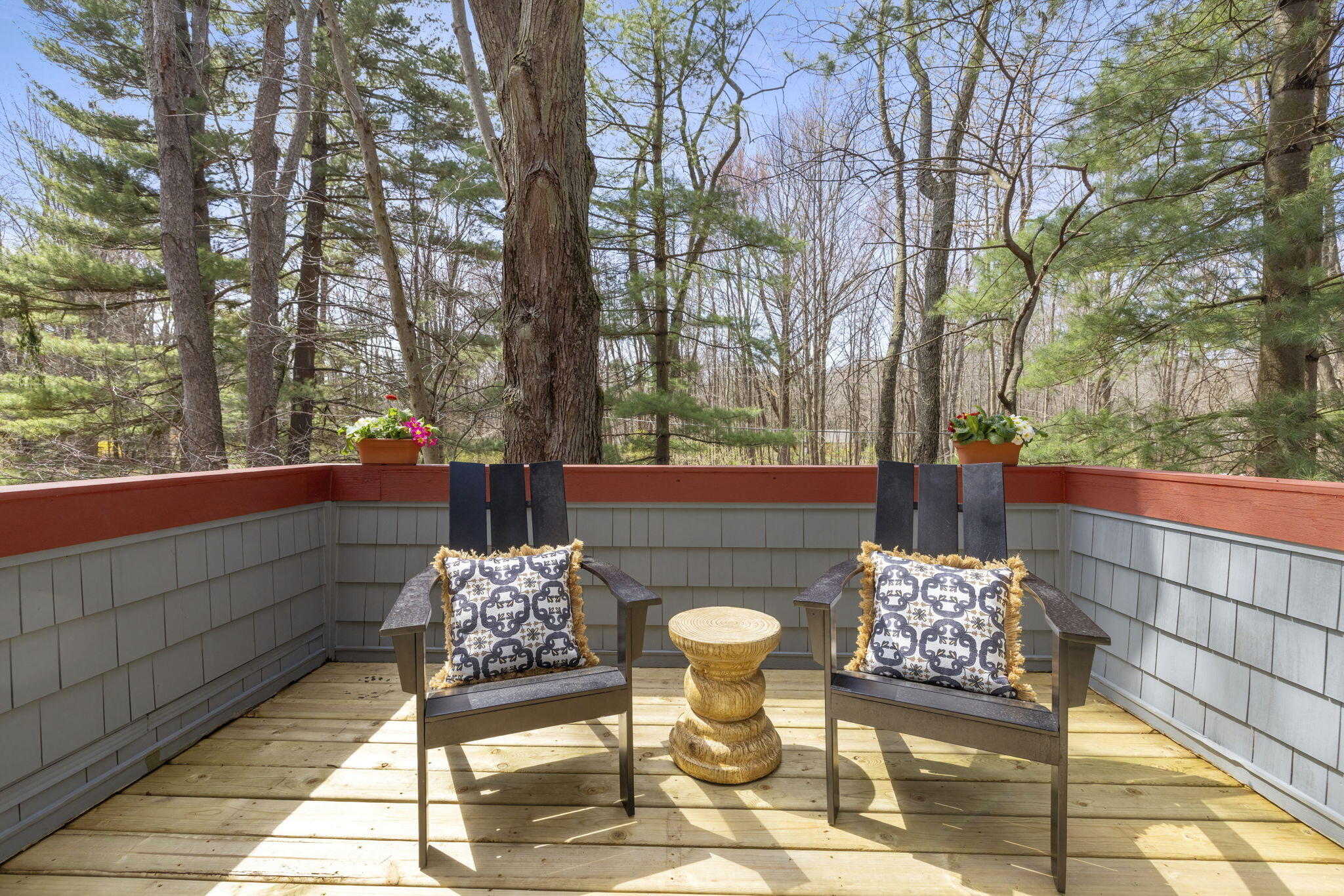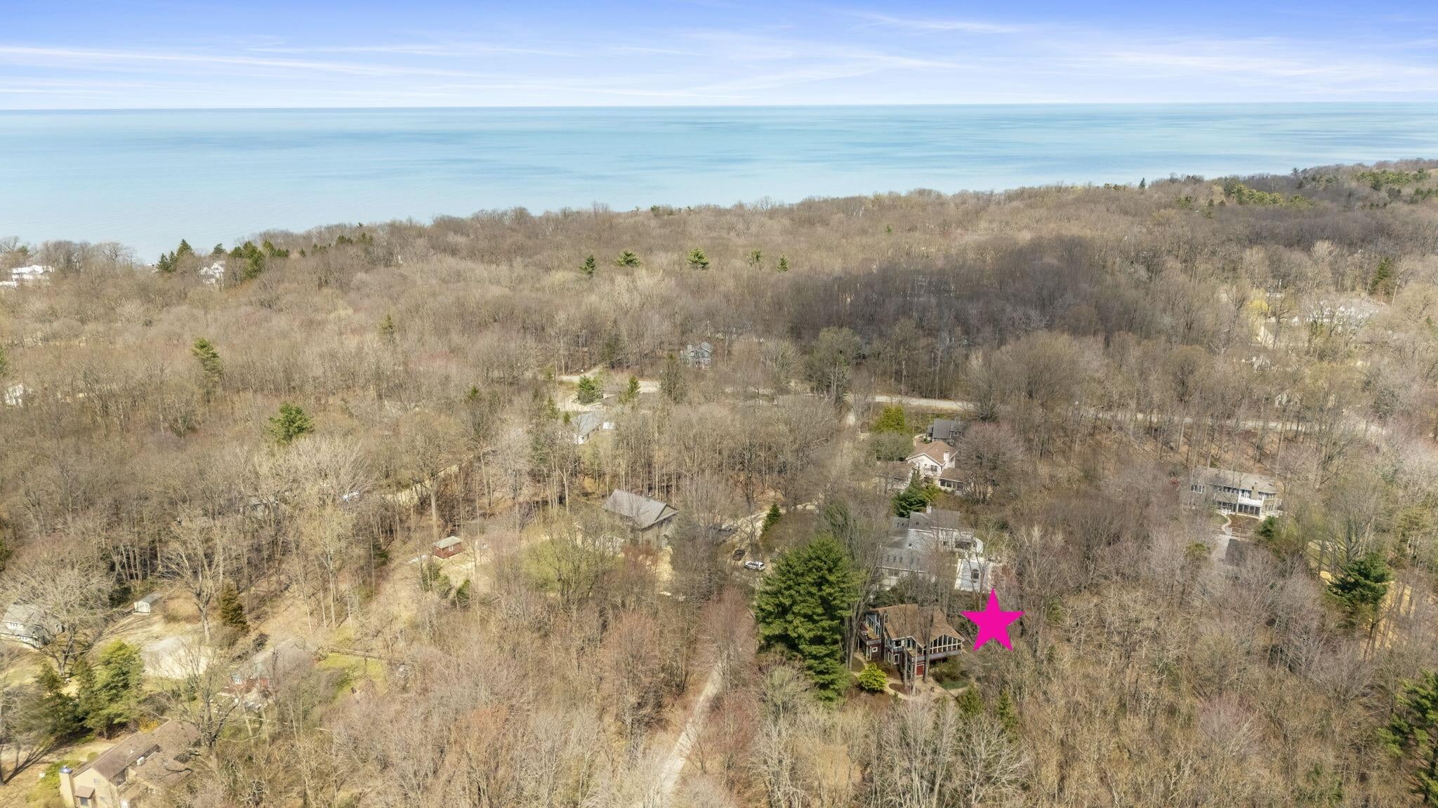 Tucked among the trees in the heart of Harbert, this distinctive Tree House retreat offers privacy, style, and proximity to Lake Michigan, less than 2,500 feet from beach access. Designed for indoor-outdoor living, the home features a dramatic treetop screened porch, vaulted ceilings, wood floors, and a fireplace anchoring the main living spaces, including both a living room and family room. With five bedrooms and four-and-a-half baths, there is room for hosting, highlighted by an en suite flex space ideal as a fifth bedroom, office, gym, or second family room. Outdoor amenities include a hot tub, outdoor shower, storage shed, and room for a pool. Located near local favorites, including a nearby coffee shop, and just half a block from the Red Arrow Trail bike/walking path, this home offers easy access to all that Harbor Country has to offer.