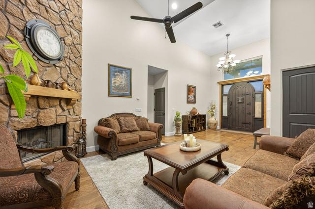 Welcome to this beautiful home in the Knolls at Little Valley, offering space, views, RV parking, a 3-car garage and no HOA. This 7-bedroom, 3.5-bathroom home features a functional layout with room for everyone. The main living area showcases soaring ceilings, a stunning stone fireplace, and abundant natural light.