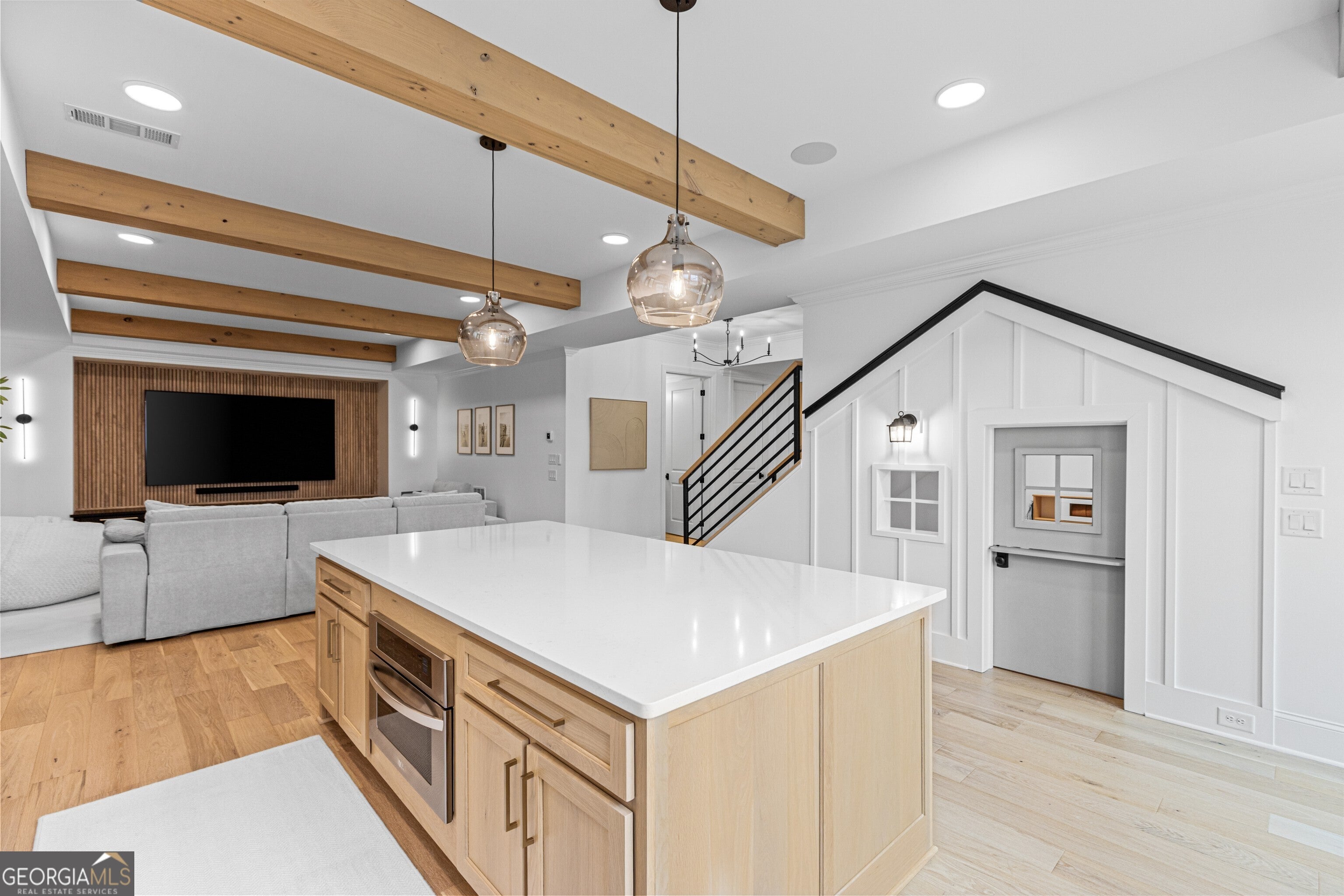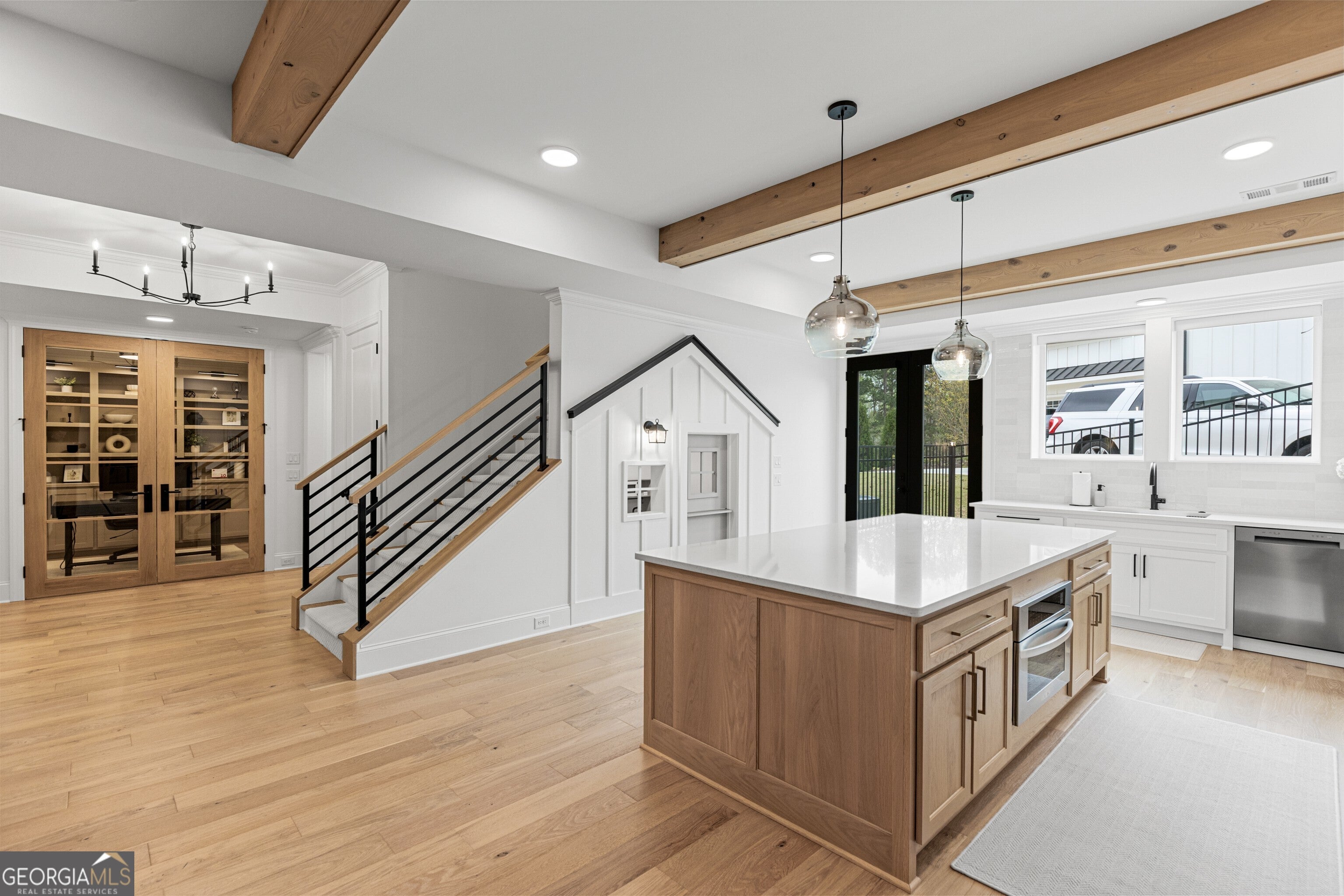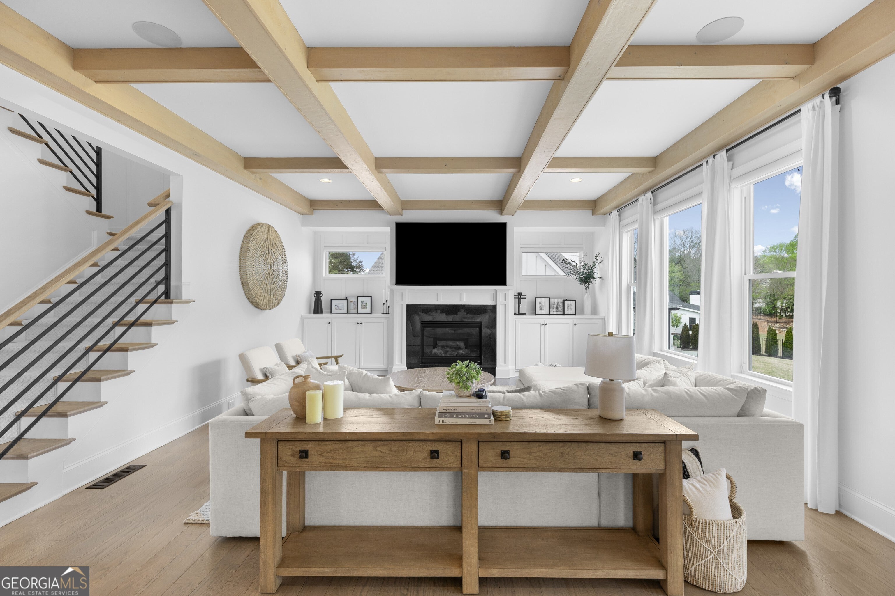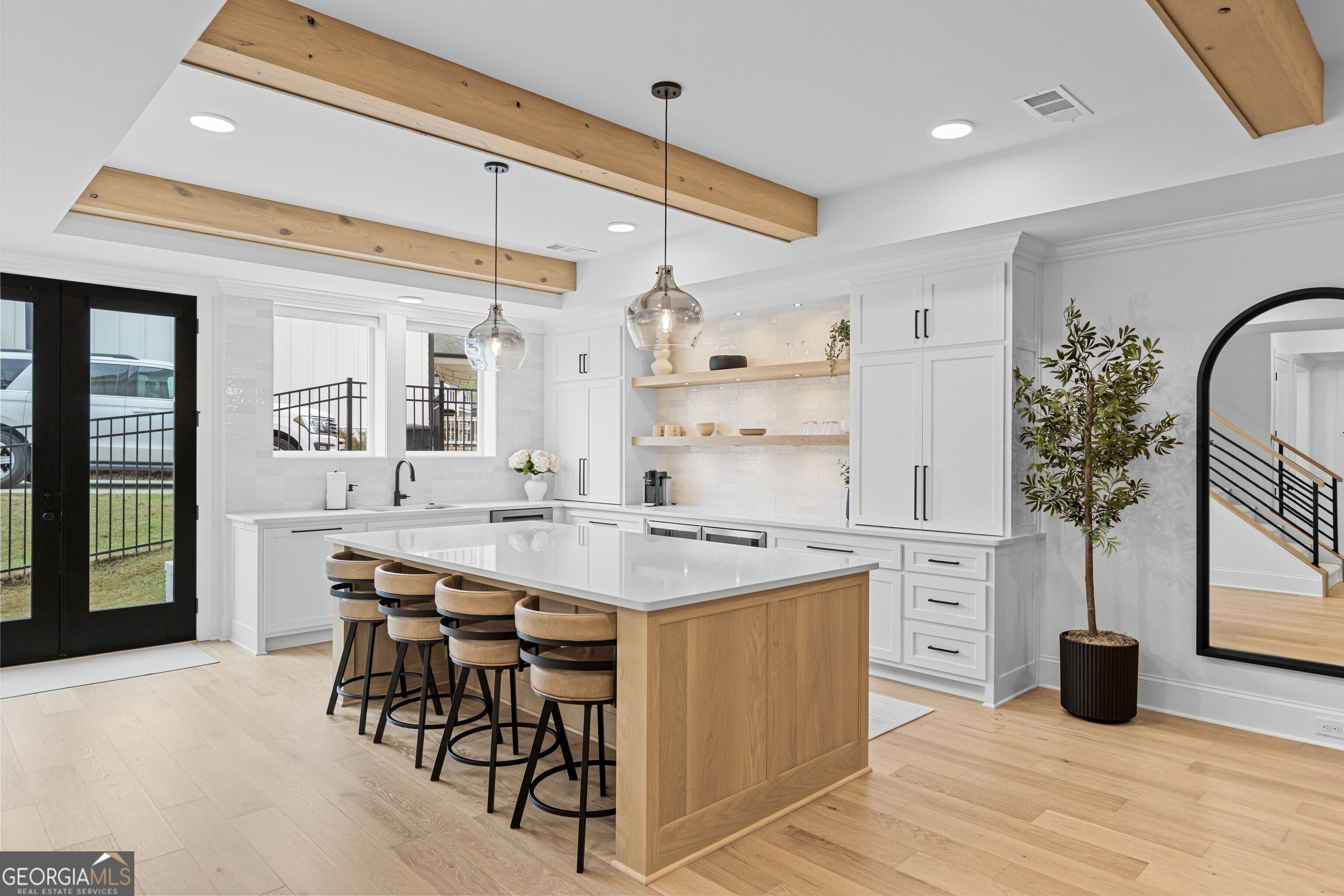 Refined and striking, this Jones Valley residence pairs architectural presence with effortless livability, set on a secluded cul de sac. The kitchen is a study in form and function, featuring waterfall Quartzite counters, Wolf and SubZero appliances, and custom cabinetry, opening to sunlit interiors with hardwood floors throughout the main level.
