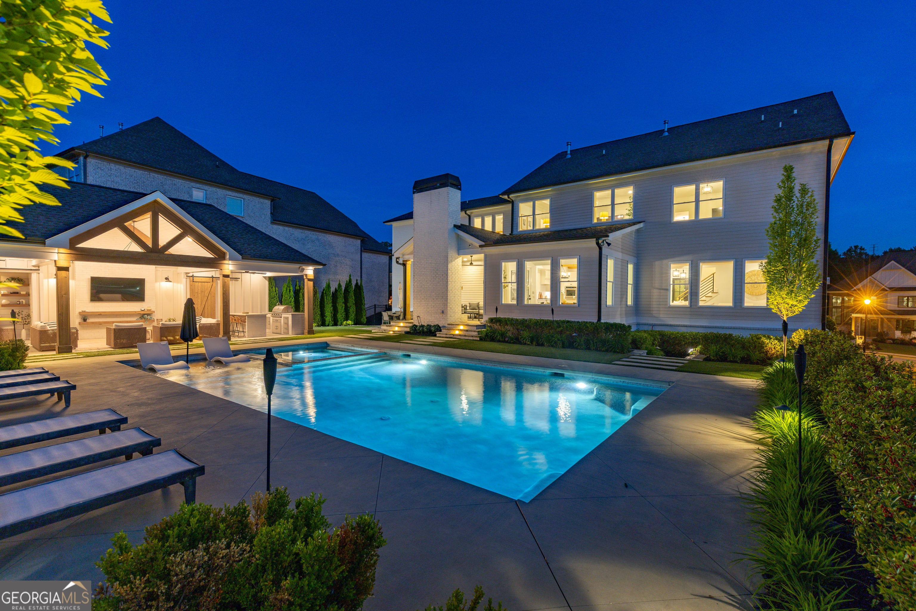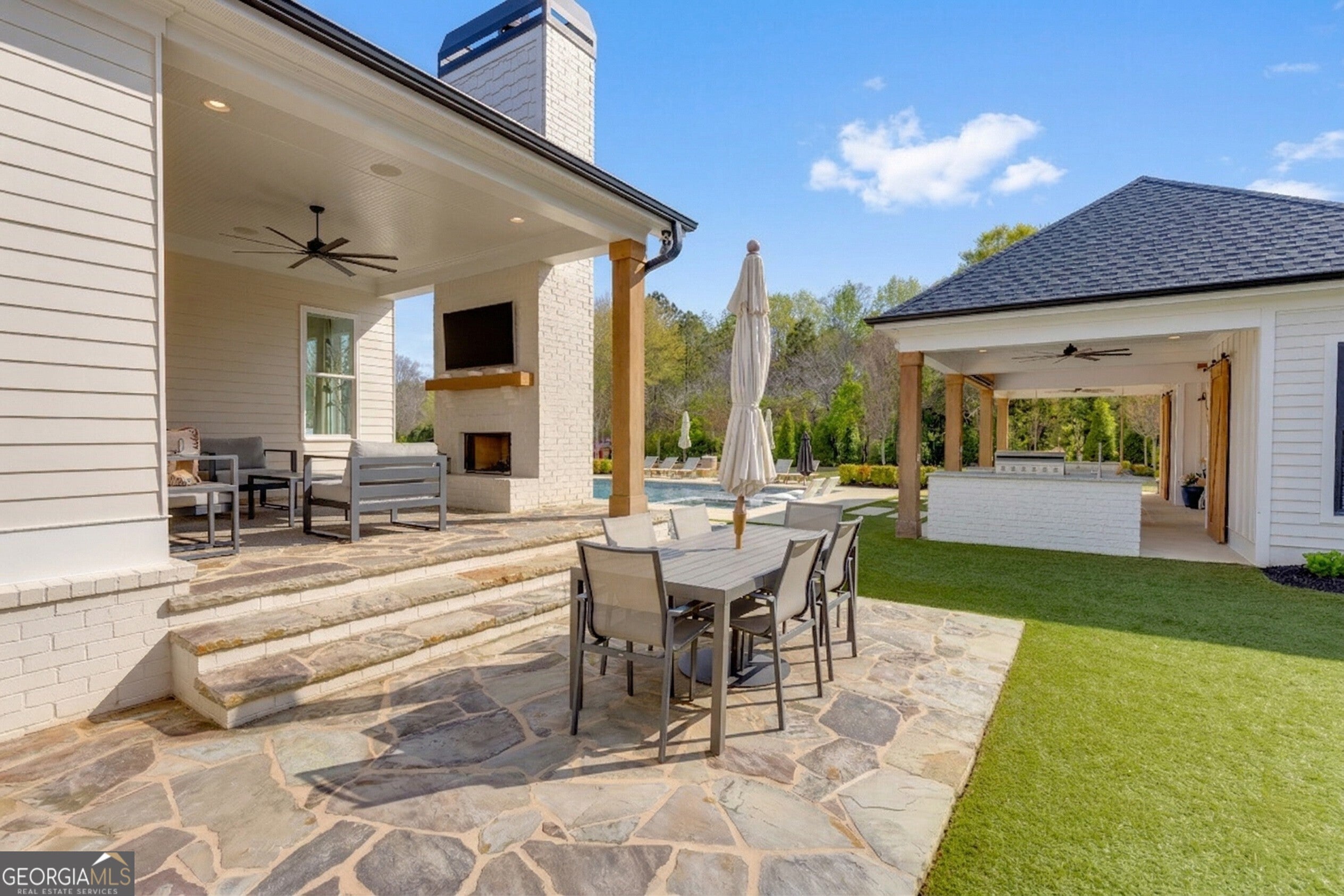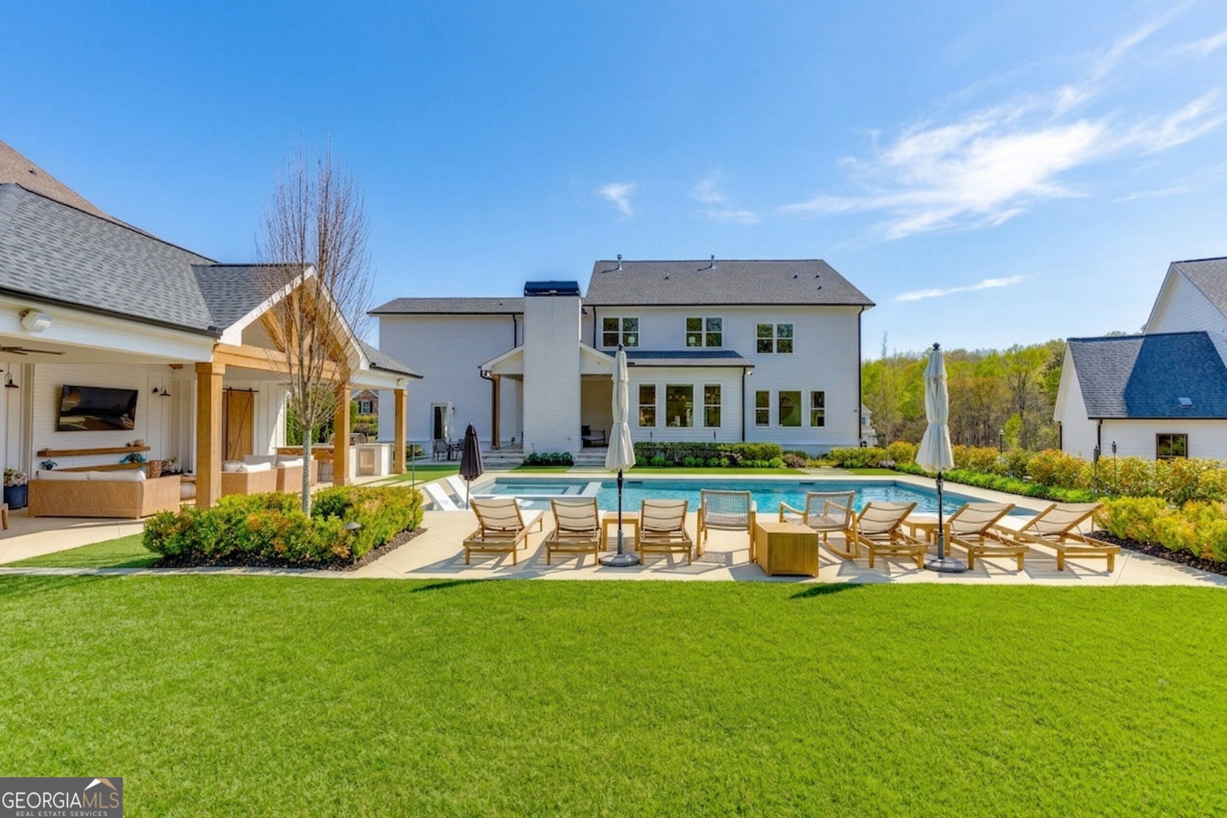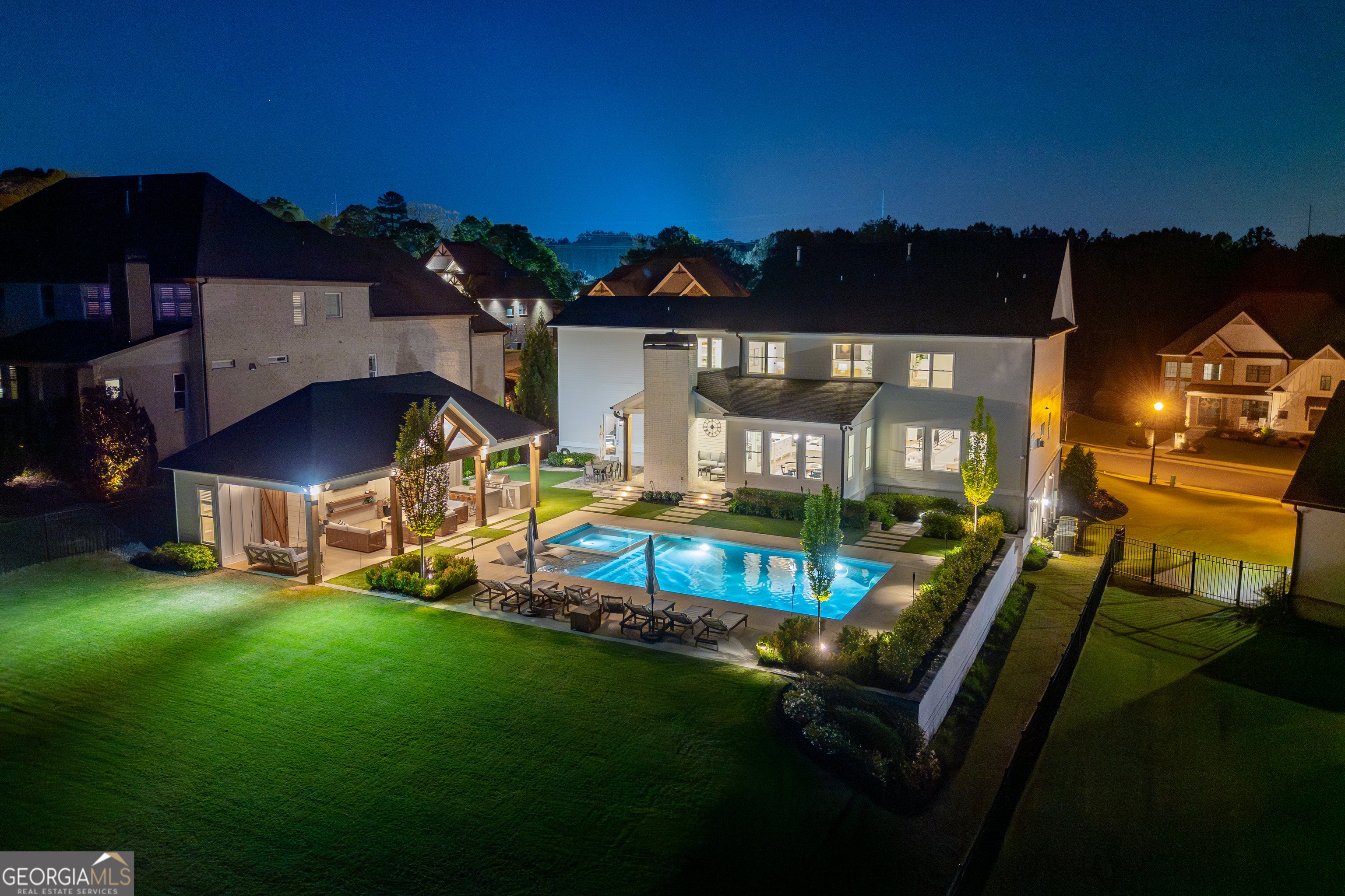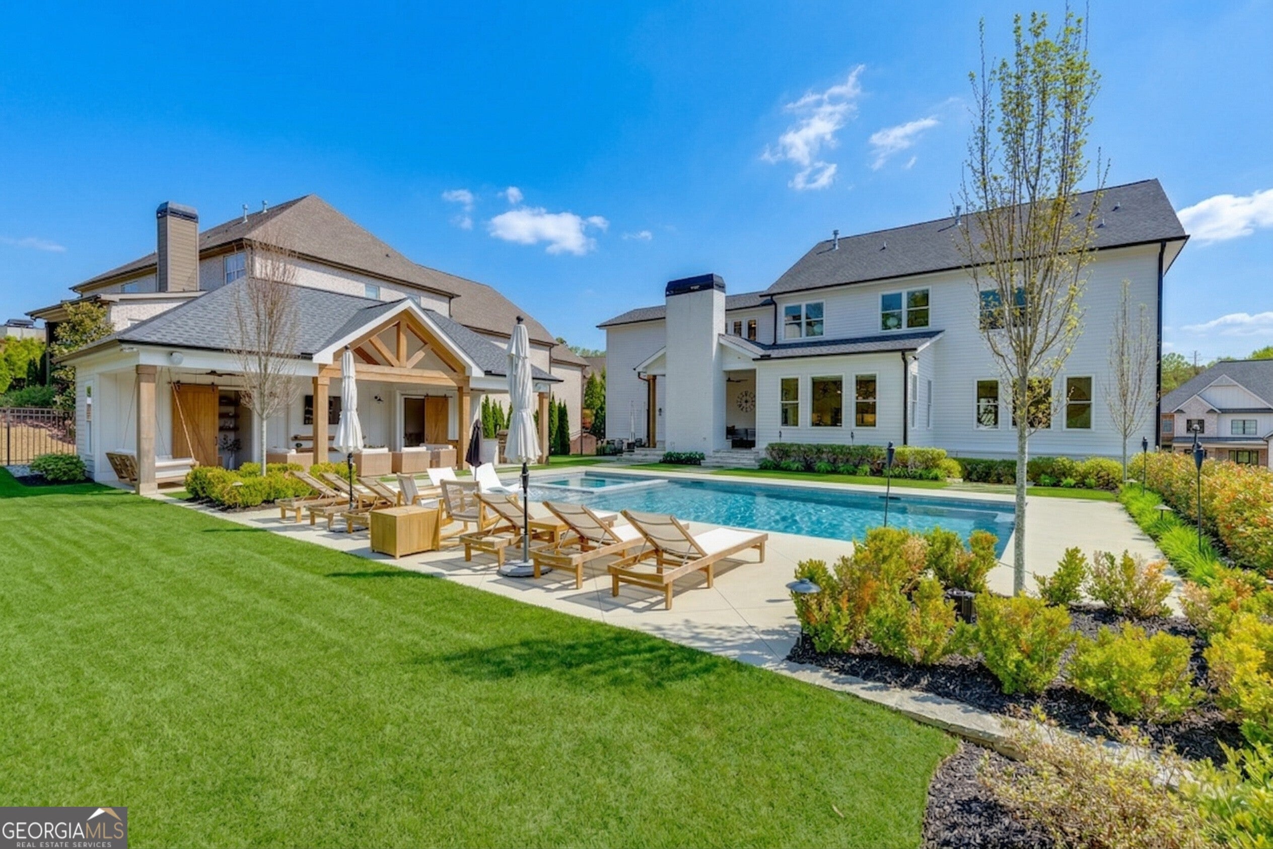 Incredible describes this opportunity on a nearly new custom-built home with a finished basement, gunite pool, hot tub, huge pool pavilion with bathroom and grilling station on one of the best private level lots in the City of Buford, tucked away in a beautiful, gated community! This open concept floor plan offers a large kitchen with loads of custom-built cabinetry, oversized island, quartz countertops, double ovens, gas cook-top, drawer-level microwave, and a huge walk-in pantry with wood shelving. Stained coffered ceiling beams extend from the kitchen to the family room. The large breakfast room is loaded with windows for maximum daylight. Family room with granite surround fireplace and built-in cabinet bases with transom windows above. Spacious office off the foyer with plenty of natural daylight, shiplap accent wall, and corner barn doors. Guest suite on the main floor with a walk-in closet and a private bath with a walk-in shower. Powder room tucked off the rear hallway for guest privacy. Drop zone area with bench seating and cubbies, along with a separate friends entry door off the rear hallway. Hardwood floors throughout the main level, except the main level guest suite. Split stairway with horizontal metal pickets leads upstairs where the landing features a loft/flex space with hardwoods. Oversized master suite with tray ceiling. Luxurious master bath features a large walk-in shower with dual showerheads, separate soaking tub, his and hers vanities, and an enormous walk-in closet with built-in hanging and adjustable shelving plus dressing island. Three additional spacious secondary bedrooms, all with walk-ins & private baths. The upstairs laundry room has a sink basin and wall cabinets. Professionally finished terrace level with a complete in-law suite featuring a kitchen with custom cabinets, floating shelves with accent lighting, a large island and quartz c-tops. Family/media room with surround sound and pre-wired for a projector. Stained ceiling beams extend from the kitchen to the family room. Custom gym with built-ins and wall mirrors. Separate office with French doors and built-ins. Guest bedroom with full bath featuring a stand-up shower. An additional powder room that has a cabinet paneled washer/dryer niche to keep out of sight. Hardwood floors throughout. There is also a playroom area under the stairs. The outdoor entertainment area is an incredible space that includes a rear covered porch with a fireplace and flagstone floor covering, an additional open flagstone patio area for larger gatherings, heated saltwater pool with hot tub and tanning ledge surrounded by an artificial turf perimeter. The large pool pavilion has a vaulted media area, a built-in grilling station with stainless steel accessories and sink, a powder room bath, and a large storage room for pool items. Additionally, you have a huge level rear yard that is so hard to find, plus extensive landscaping. Numerous additional details featuring 10 ceilings on the main level with 8 doors, four-sided brick, 3-car garage with oversized driveway, fully automated blinds, leak-detection and camera systems, tankless water heater, water-filtration system, built-in speakers, irrigation, landscape lighting, and so much more. This home has been incredibly maintained with no expense spared so dont miss it!
