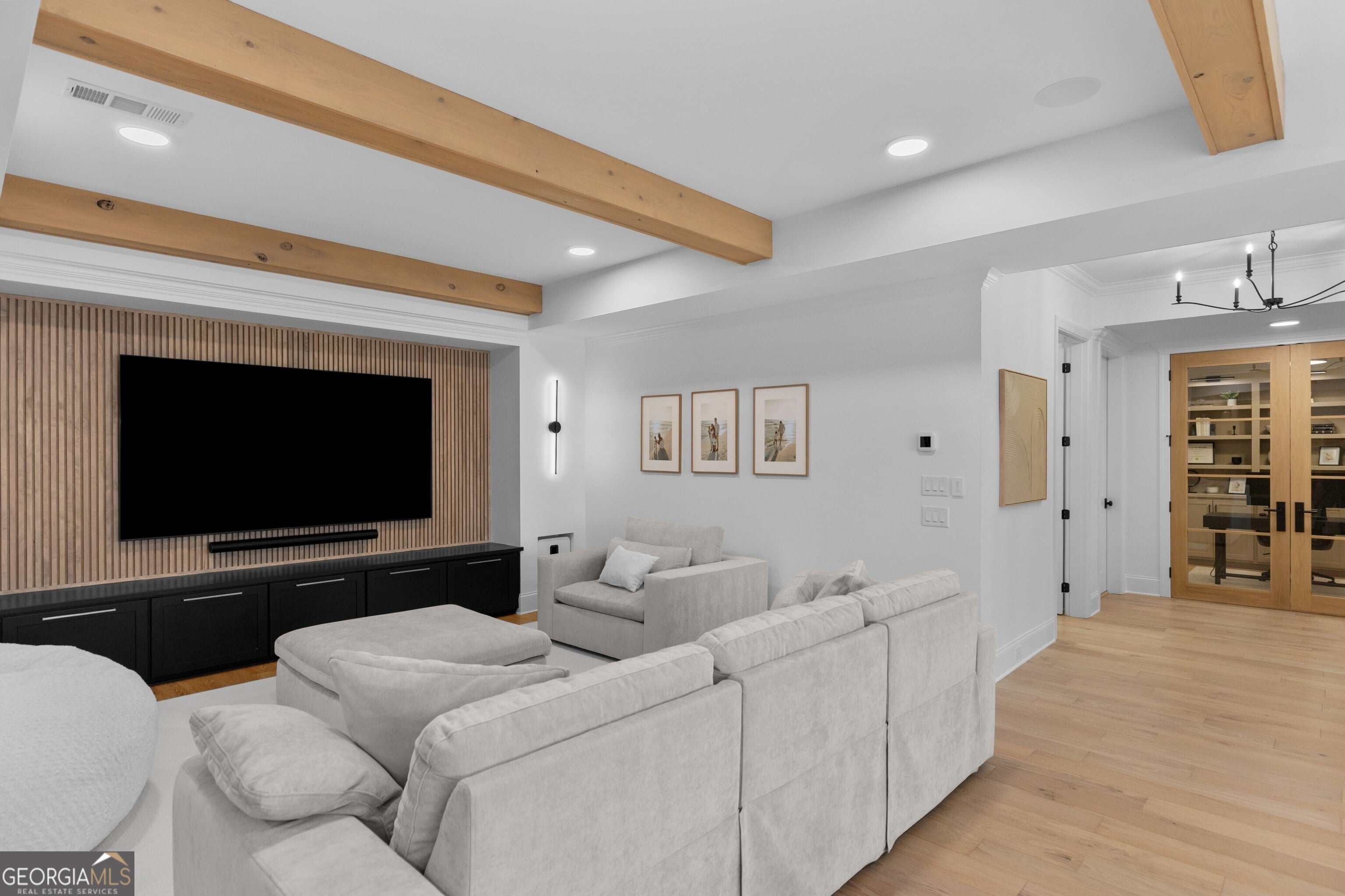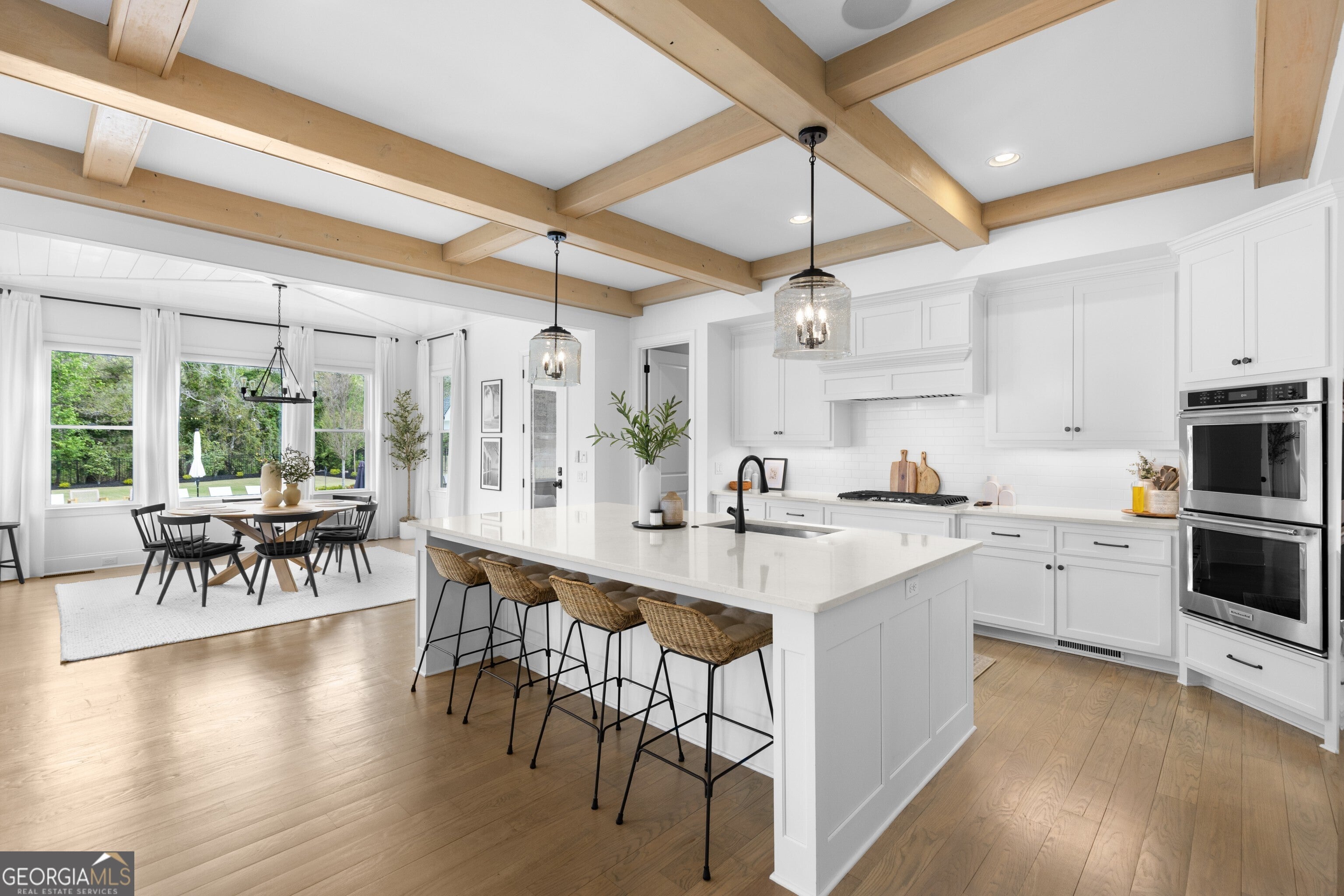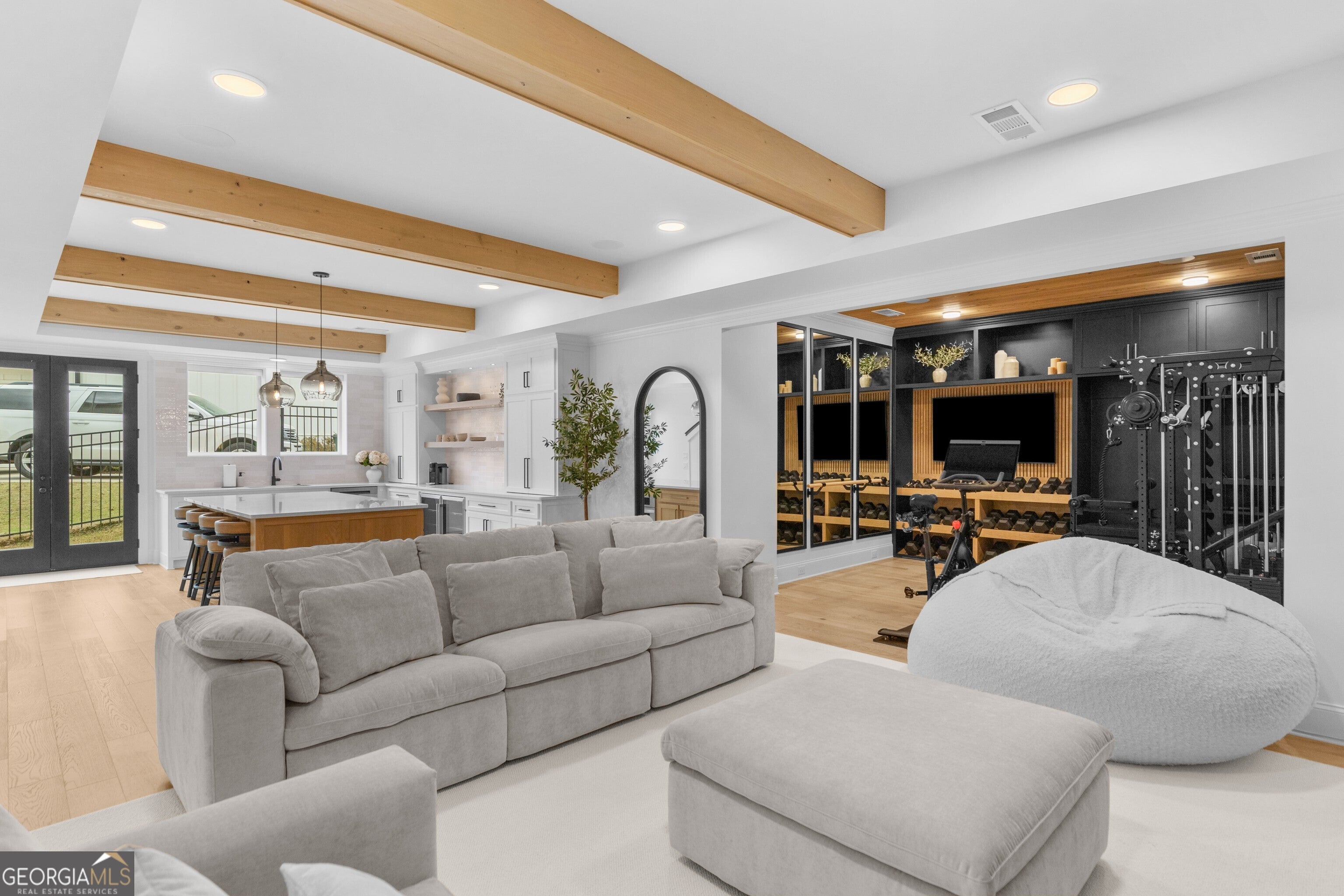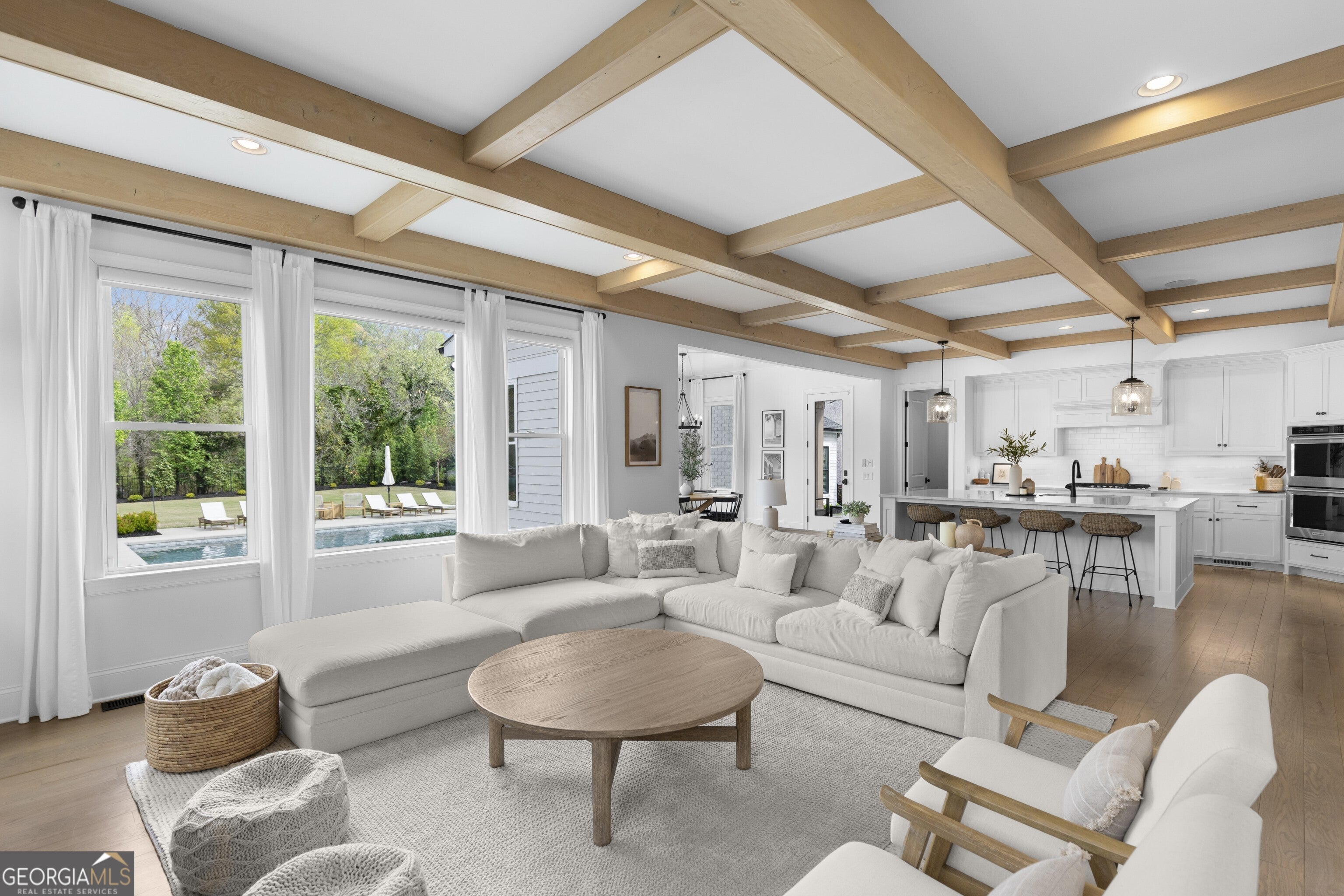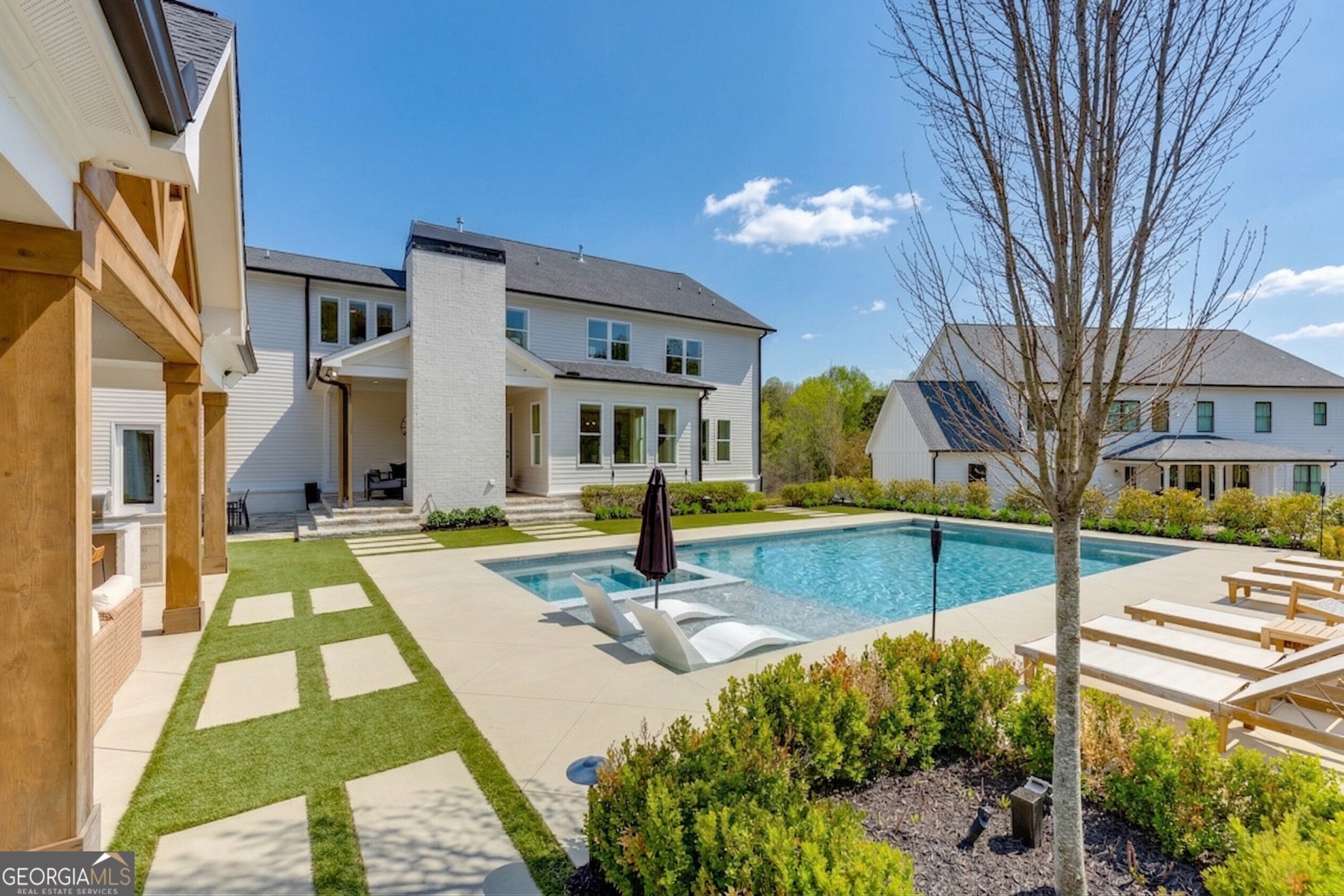Incredible describes this opportunity on a nearly new custom-built home with a finished basement, gunite pool, hot tub, huge pool pavilion with bathroom and grilling station on one of the best private level lots in the City of Buford, tucked away in a beautiful, gated community! This open concept floor plan offers a large kitchen with loads of custom-built cabinetry, oversized island, quartz countertops, double ovens, gas cook-top, drawer-level microwave, and a huge walk-in pantry with wood shelving. Stained coffered ceiling beams extend from the kitchen to the family room. The large breakfast room is loaded with windows for maximum daylight. Family room with granite surround fireplace and built-in cabinet bases with transom windows above. Spacious office off the foyer with plenty of natural daylight, shiplap accent wall, and corner barn doors. Guest suite on the main floor with a walk-in closet and a private bath with a walk-in shower. Powder room tucked off the rear hallway for guest privacy. Drop zone area with bench seating and cubbies, along with a separate friends entry door off the rear hallway. Hardwood floors throughout the main level, except the main level guest suite. Split stairway with horizontal metal pickets leads upstairs where the landing features a loft/flex space with hardwoods. Oversized master suite with tray ceiling. Luxurious master bath features a large walk-in shower with dual showerheads, separate soaking tub, his and hers vanities, and an enormous walk-in closet with built-in hanging and adjustable shelving plus dressing island. Three additional spacious secondary bedrooms, all with walk-ins & private baths. The upstairs laundry room has a sink basin and wall cabinets. Professionally finished terrace level with a complete in-law suite featuring a kitchen with custom cabinets, floating shelves with accent lighting, a large island and quartz c-tops. Family/media room with surround sound and pre-wired for a projector. Stained ceiling beams extend from the kitchen to the family room. Custom gym with built-ins and wall mirrors. Separate office with French doors and built-ins. Guest bedroom with full bath featuring a stand-up shower. An additional powder room that has a cabinet paneled washer/dryer niche to keep out of sight. Hardwood floors throughout. There is also a playroom area under the stairs. The outdoor entertainment area is an incredible space that includes a rear covered porch with a fireplace and flagstone floor covering, an additional open flagstone patio area for larger gatherings, heated saltwater pool with hot tub and tanning ledge surrounded by an artificial turf perimeter. The large pool pavilion has a vaulted media area, a built-in grilling station with stainless steel accessories and sink, a powder room bath, and a large storage room for pool items. Additionally, you have a huge level rear yard that is so hard to find, plus extensive landscaping. Numerous additional details featuring 10 ceilings on the main level with 8 doors, four-sided brick, 3-car garage with oversized driveway, fully automated blinds, leak-detection and camera systems, tankless water heater, water-filtration system, built-in speakers, irrigation, landscape lighting, and so much more. This home has been incredibly maintained with no expense spared so dont miss it!
