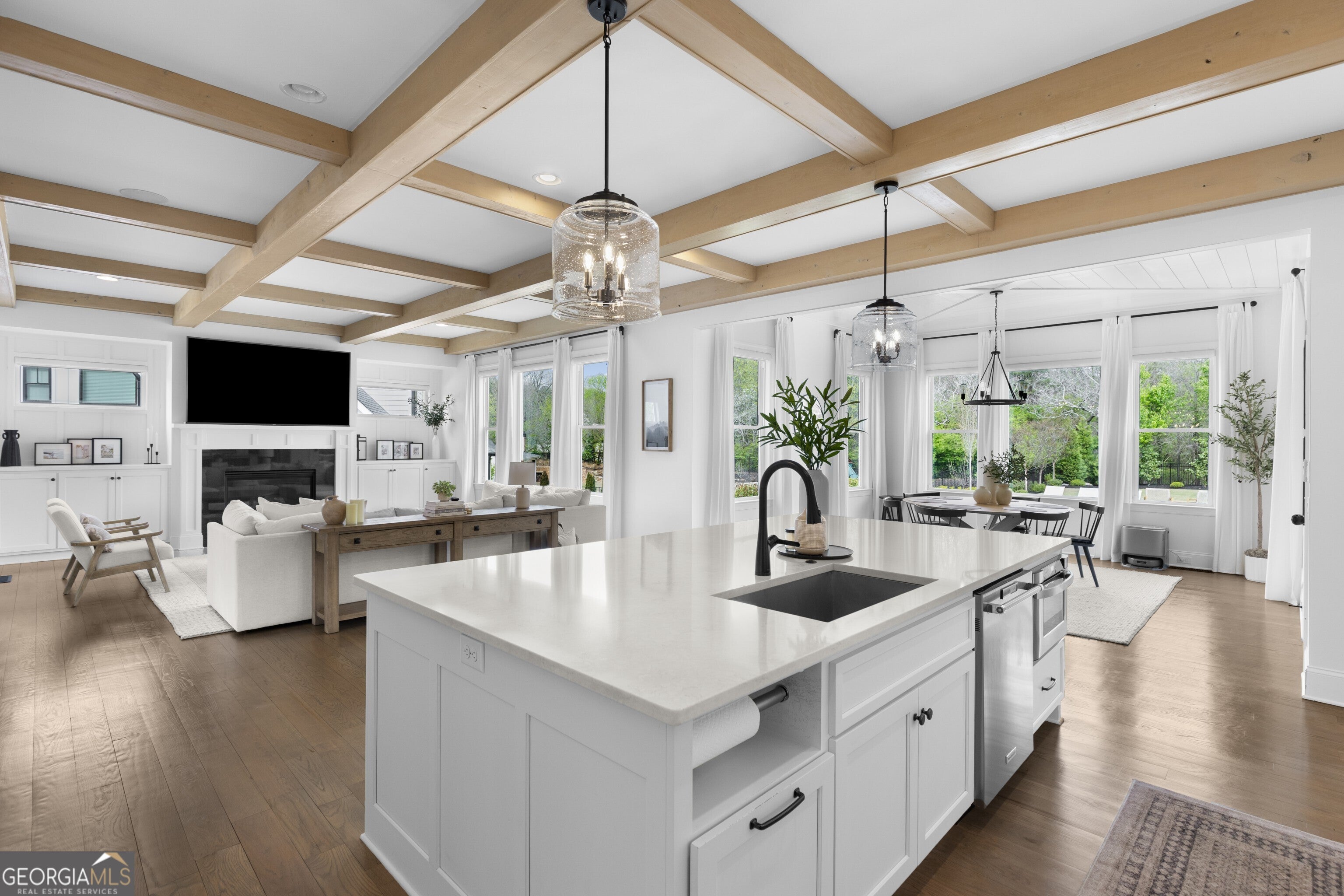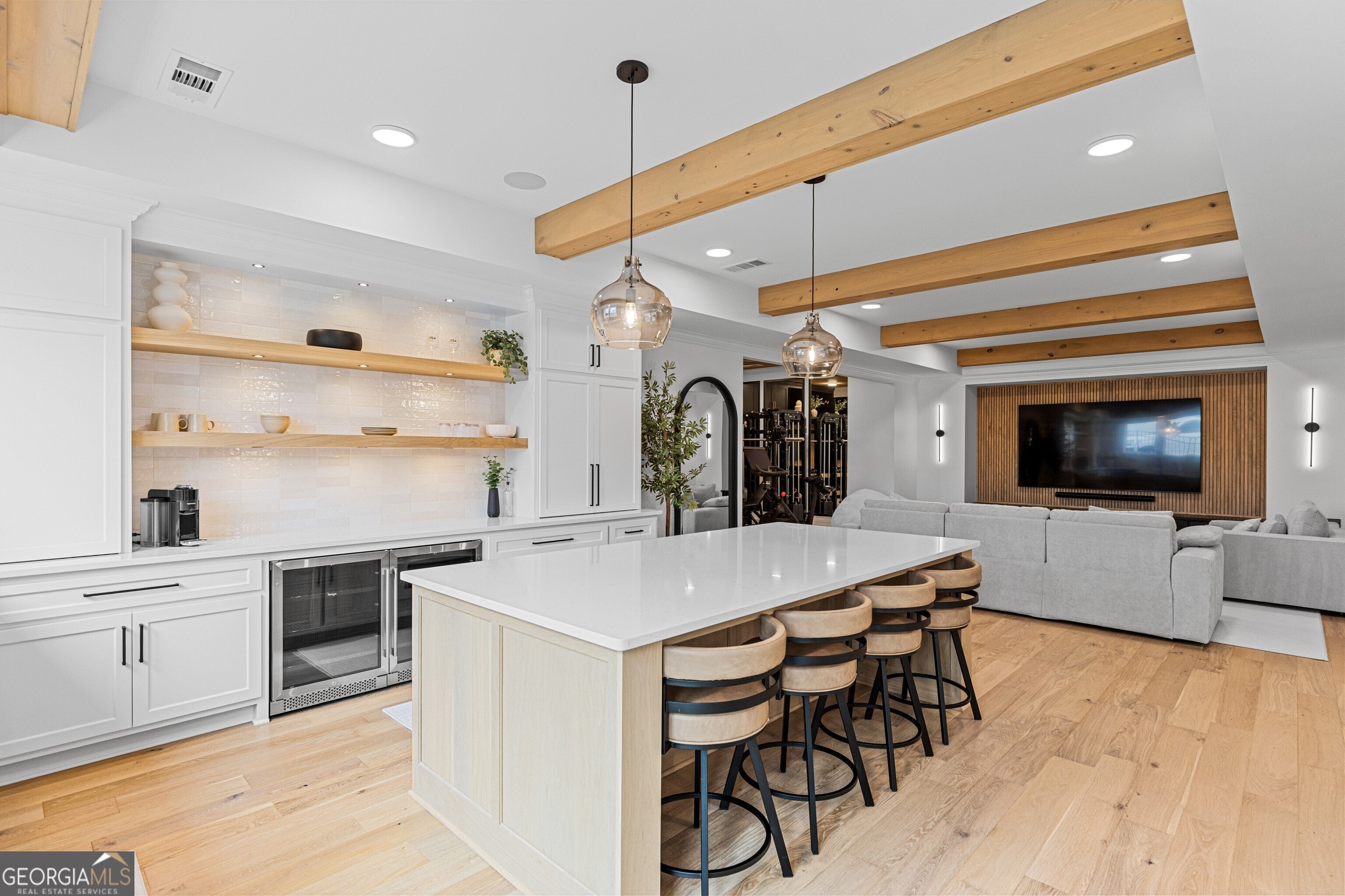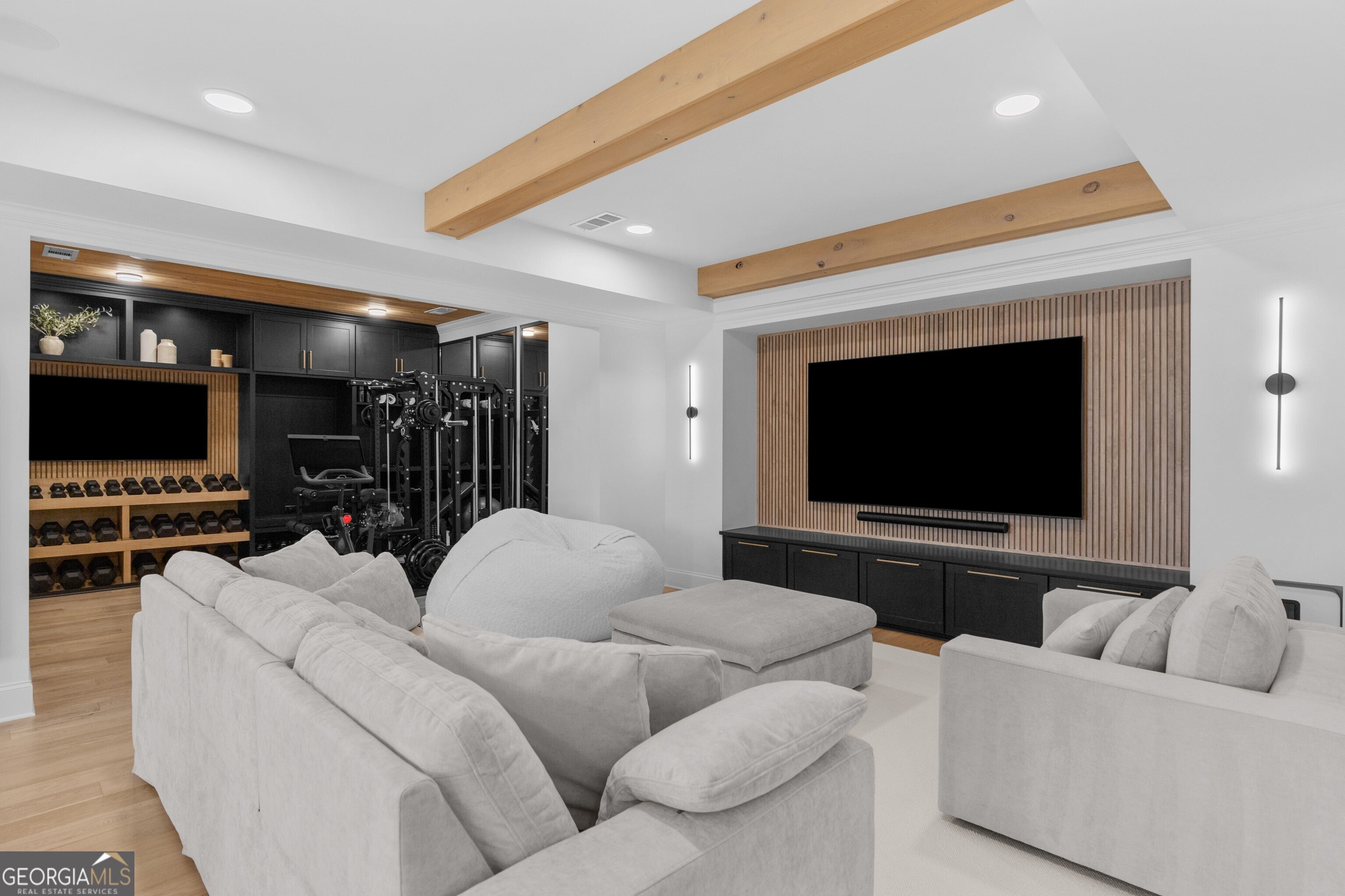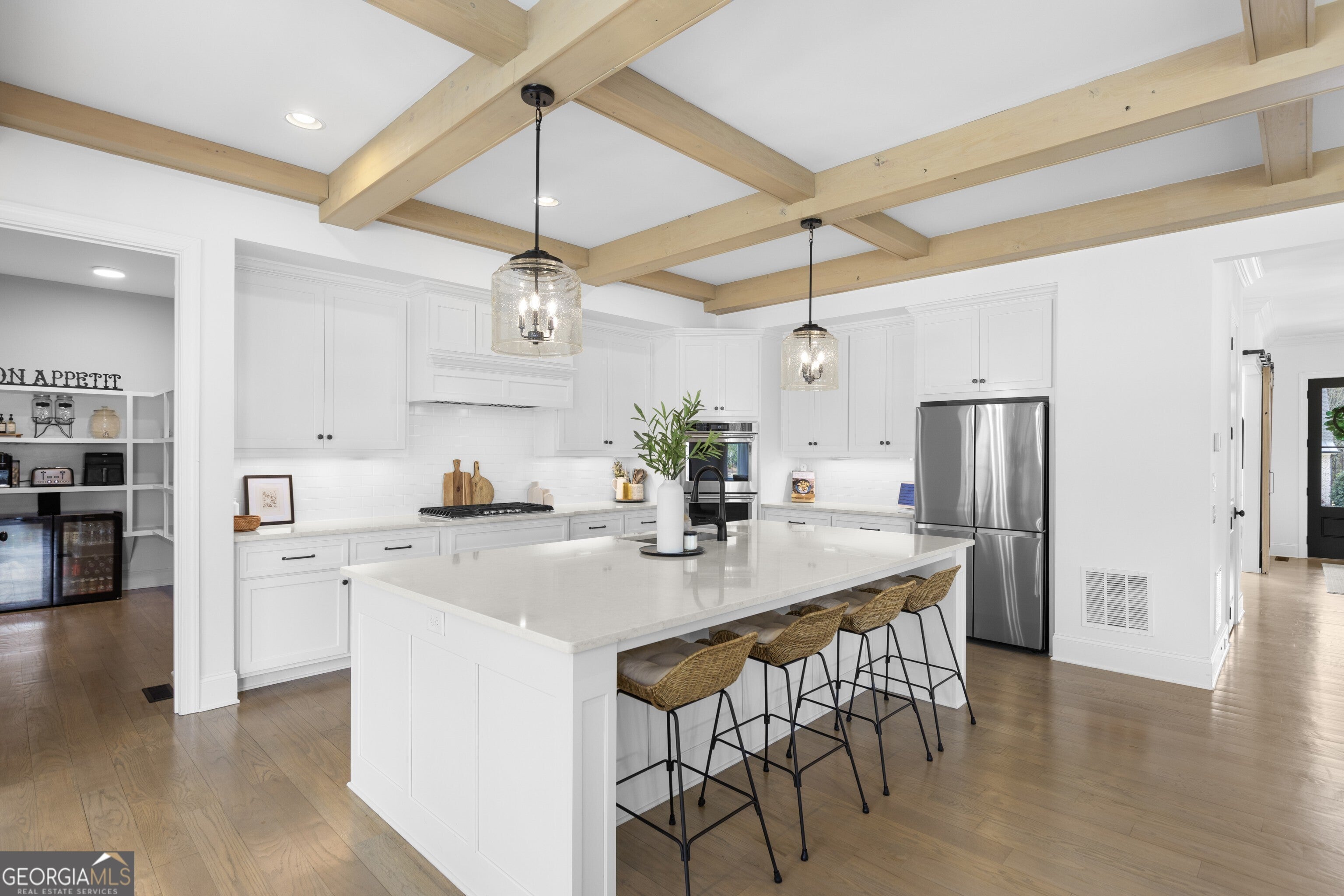 Incredible describes this opportunity on a nearly new custom-built home with a finished basement, gunite pool, hot tub, huge pool pavilion with bathroom and grilling station on one of the best private level lots in the City of Buford, tucked away in a beautiful, gated community! This open concept floor plan offers a large kitchen with loads of custom-built cabinetry, oversized island, quartz countertops, double ovens, gas cook-top, drawer-level microwave, and a huge walk-in pantry with wood shelving. Stained coffered ceiling beams extend from the kitchen to the family room. The large breakfast room is loaded with windows for maximum daylight. Family room with granite surround fireplace and built-in cabinet bases with transom windows above. Spacious office off the foyer with plenty of natural daylight, shiplap accent wall, and corner barn doors. Guest suite on the main floor with a walk-in closet and a private bath with a walk-in shower. Powder room tucked off the rear hallway for guest privacy. Drop zone area with bench seating and cubbies, along with a separate friends entry door off the rear hallway. Hardwood floors throughout the main level, except the main level guest suite. Split stairway with horizontal metal pickets leads upstairs where the landing features a loft/flex space with hardwoods. Oversized master suite with tray ceiling. Luxurious master bath features a large walk-in shower with dual showerheads, separate soaking tub, his and hers vanities, and an enormous walk-in closet with built-in hanging and adjustable shelving plus dressing island. Three additional spacious secondary bedrooms, all with walk-ins & private baths. The upstairs laundry room has a sink basin and wall cabinets. Professionally finished terrace level with a complete in-law suite featuring a kitchen with custom cabinets, floating shelves with accent lighting, a large island and quartz c-tops. Family/media room with surround sound and pre-wired for a projector. Stained ceiling beams extend from the kitchen to the family room. Custom gym with built-ins and wall mirrors. Separate office with French doors and built-ins. Guest bedroom with full bath featuring a stand-up shower. An additional powder room that has a cabinet paneled washer/dryer niche to keep out of sight. Hardwood floors throughout. There is also a playroom area under the stairs. The outdoor entertainment area is an incredible space that includes a rear covered porch with a fireplace and flagstone floor covering, an additional open flagstone patio area for larger gatherings, heated saltwater pool with hot tub and tanning ledge surrounded by an artificial turf perimeter. The large pool pavilion has a vaulted media area, a built-in grilling station with stainless steel accessories and sink, a powder room bath, and a large storage room for pool items. Additionally, you have a huge level rear yard that is so hard to find, plus extensive landscaping. Numerous additional details featuring 10 ceilings on the main level with 8 doors, four-sided brick, 3-car garage with oversized driveway, fully automated blinds, leak-detection and camera systems, tankless water heater, water-filtration system, built-in speakers, irrigation, landscape lighting, and so much more. This home has been incredibly maintained with no expense spared so dont miss it!