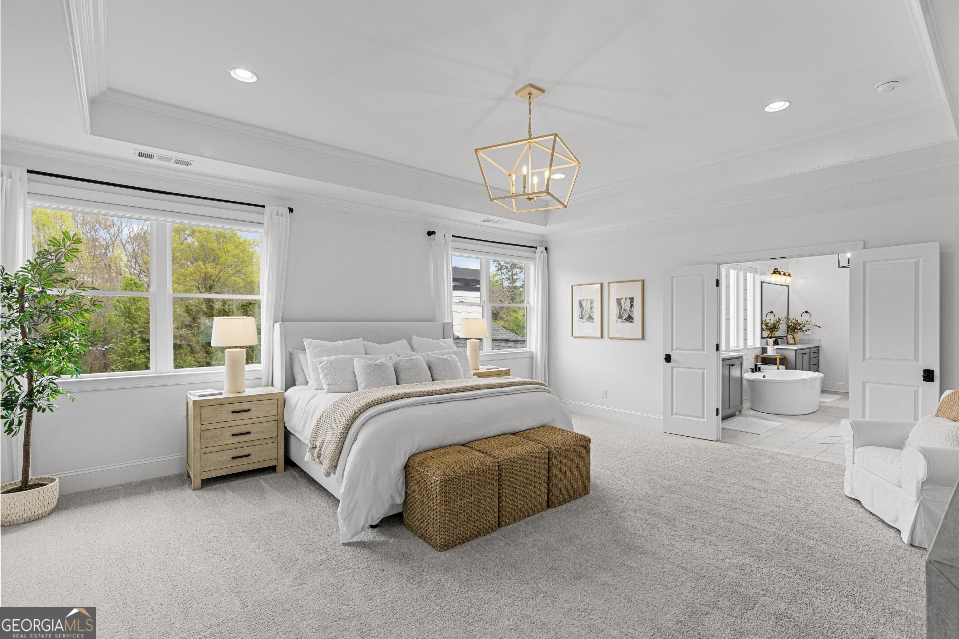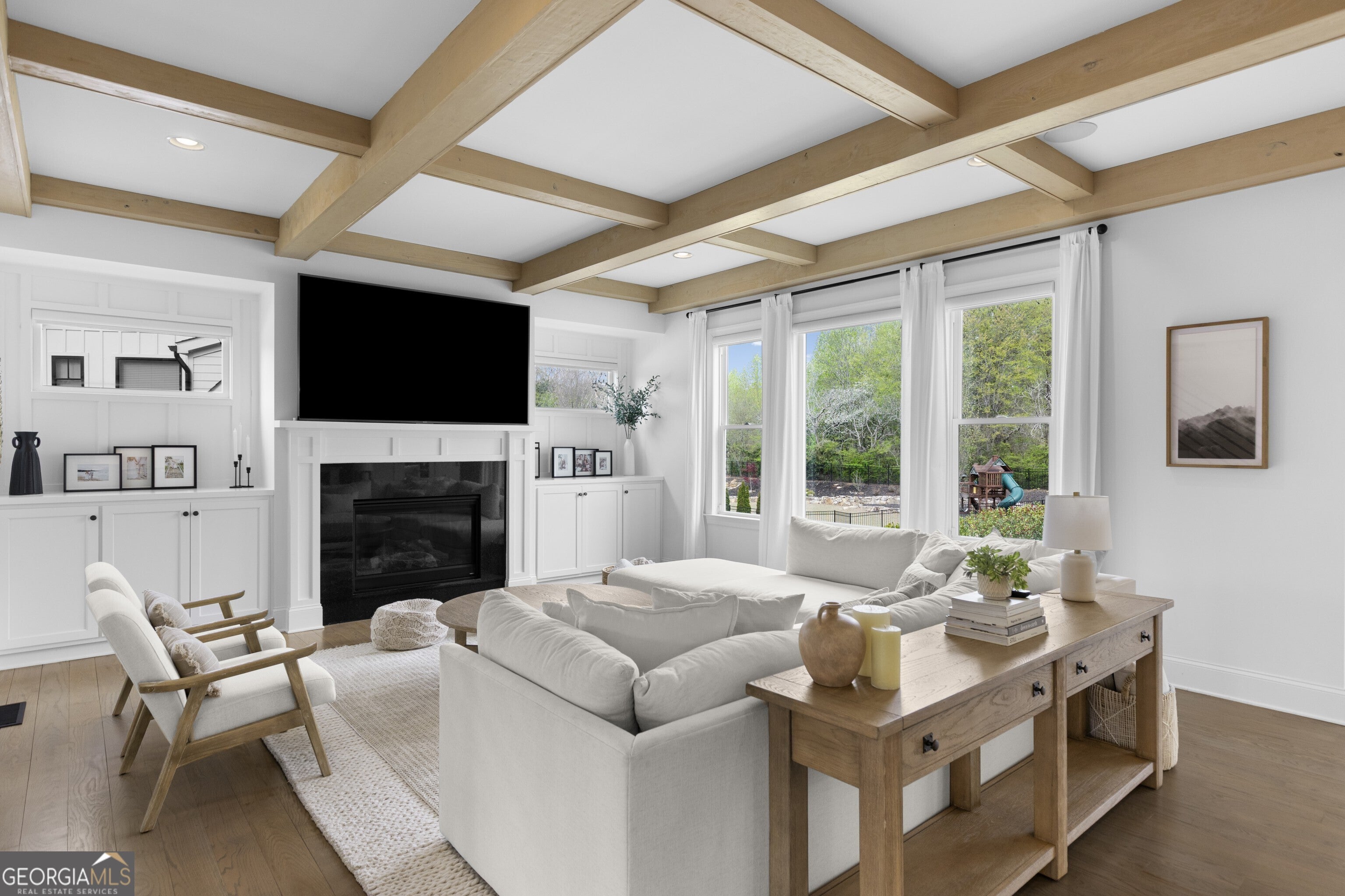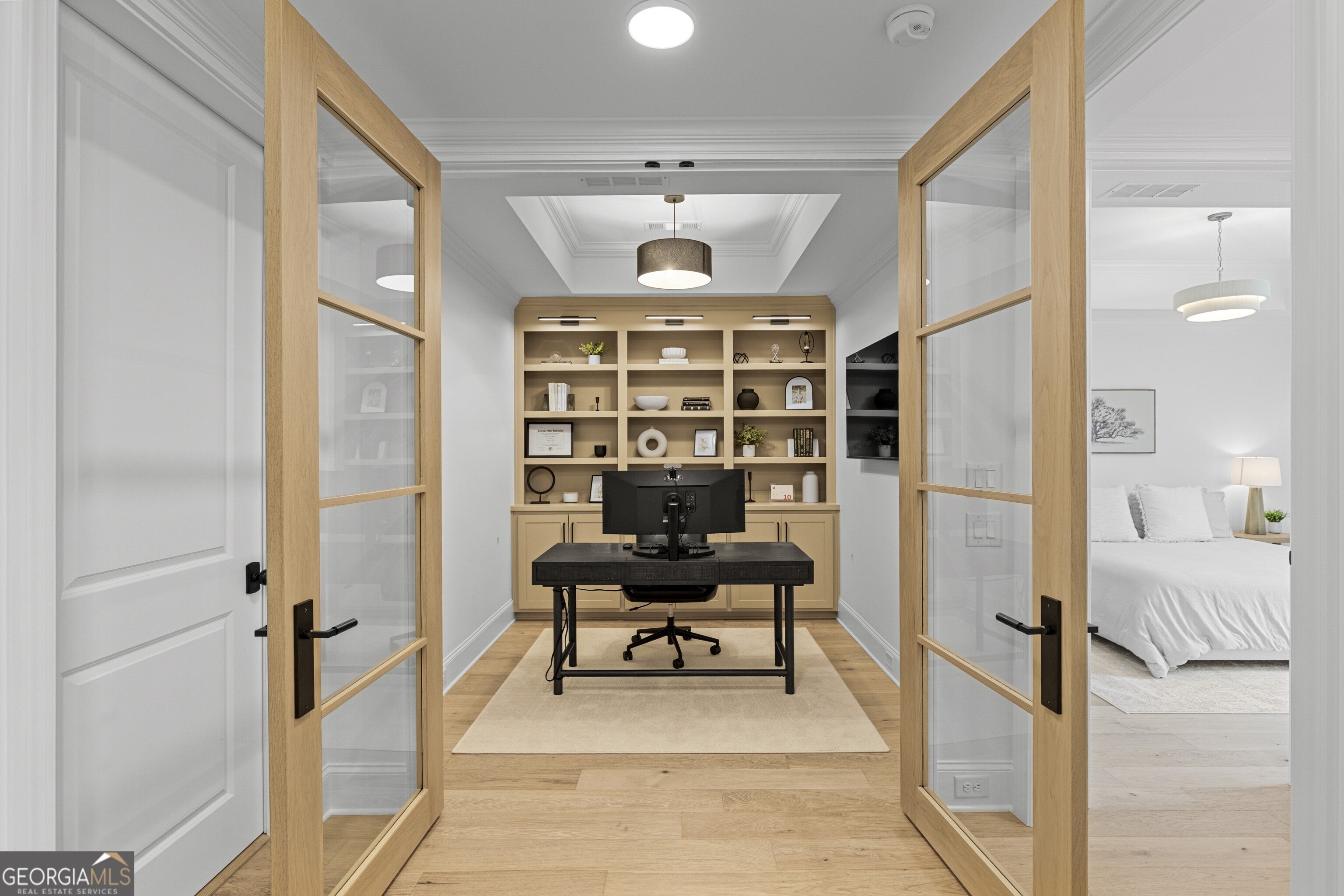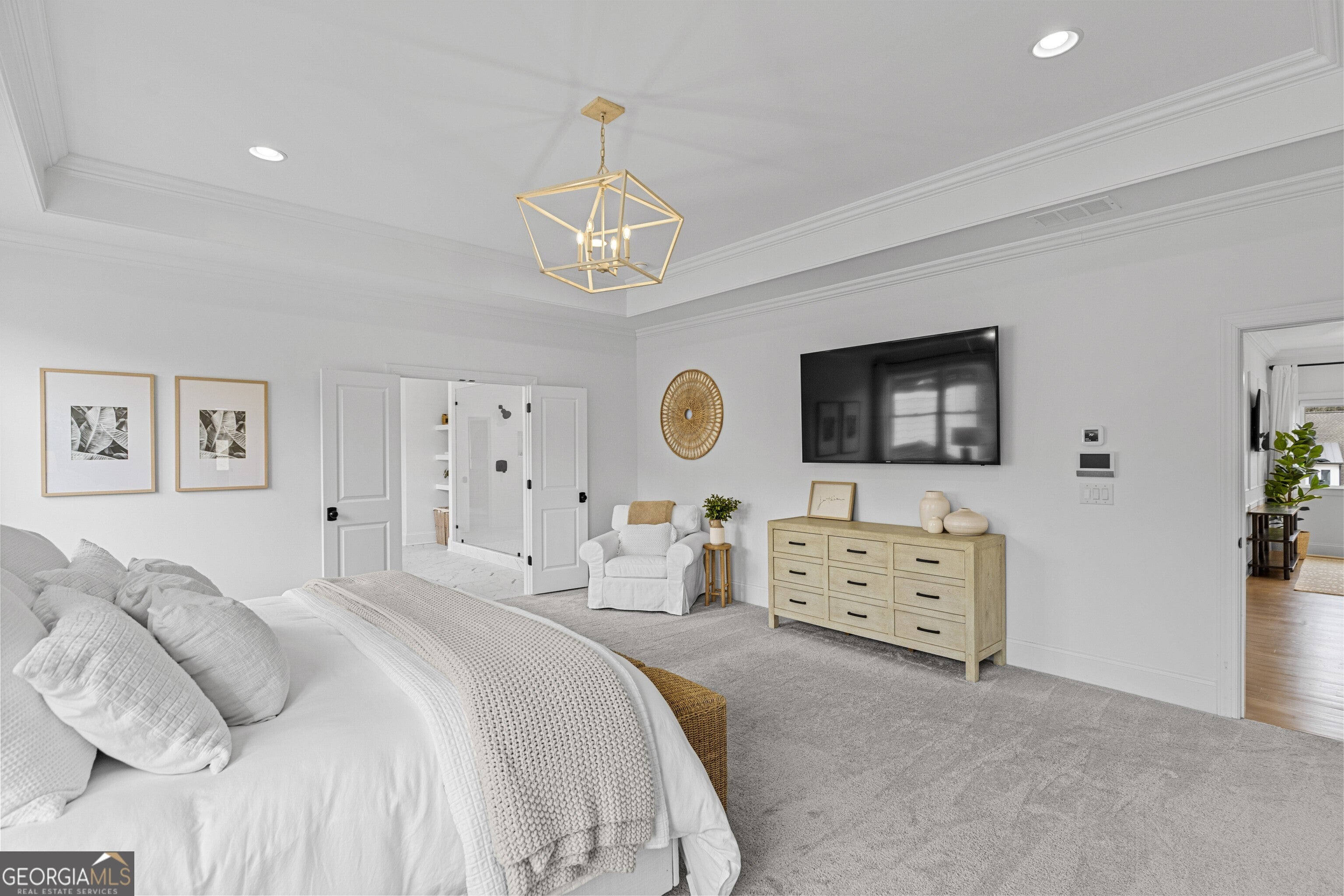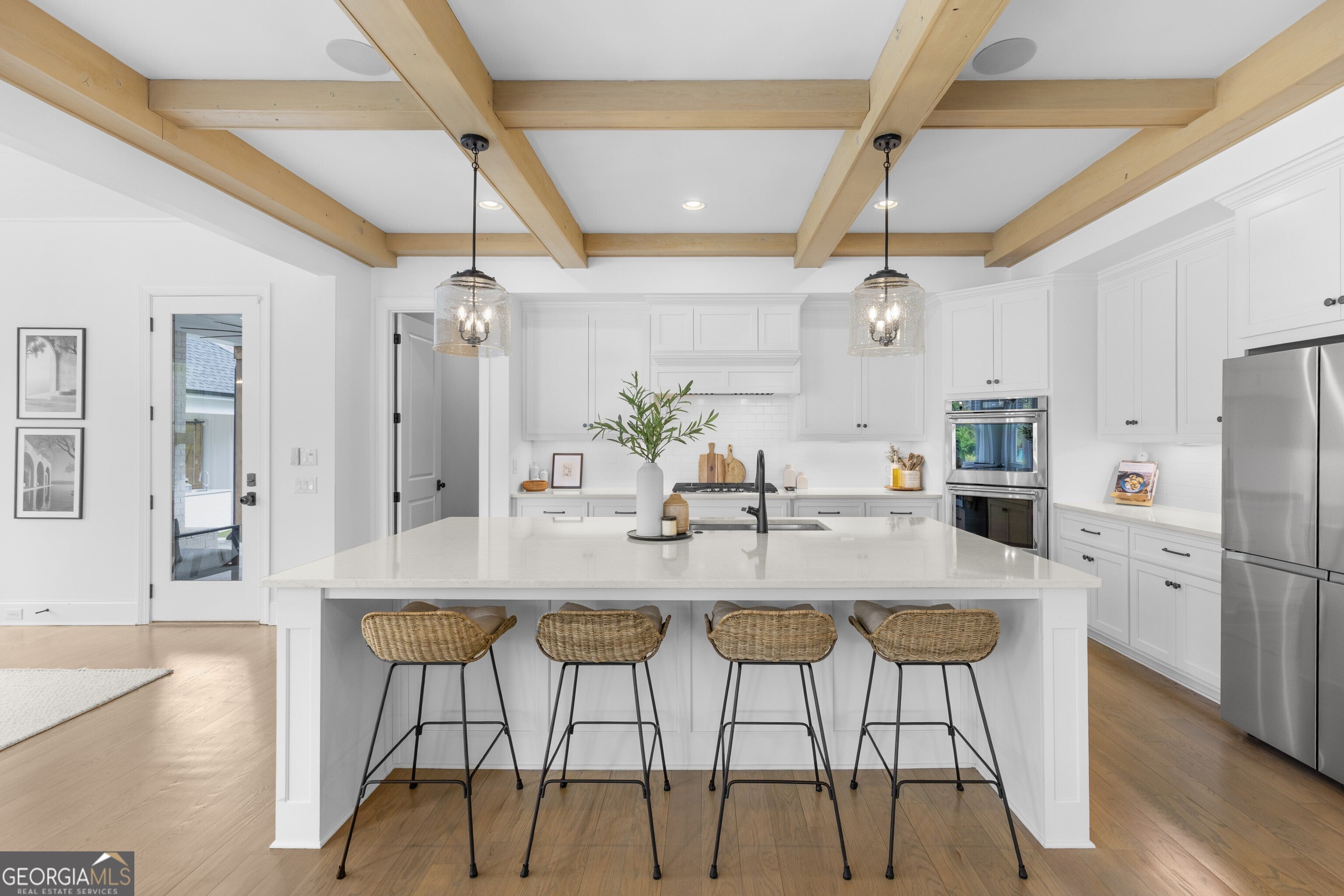 Incredible describes this opportunity on a nearly new custom-built home with a finished basement, gunite pool, hot tub, huge pool pavilion with bathroom and grilling station on one of the best private level lots in the City of Buford, tucked away in a beautiful, gated community! This open concept floor plan offers a large kitchen with loads of custom-built cabinetry, oversized island, quartz countertops, double ovens, gas cook-top, drawer-level microwave, and a huge walk-in pantry with wood shelving. Stained coffered ceiling beams extend from the kitchen to the family room. The large breakfast room is loaded with windows for maximum daylight. Family room with granite surround fireplace and built-in cabinet bases with transom windows above. Spacious office off the foyer with plenty of natural daylight, shiplap accent wall, and corner barn doors. Guest suite on the main floor with a walk-in closet and a private bath with a walk-in shower. Powder room tucked off the rear hallway for guest privacy. Drop zone area with bench seating and cubbies, along with a separate friends entry door off the rear hallway. Hardwood floors throughout the main level, except the main level guest suite. Split stairway with horizontal metal pickets leads upstairs where the landing features a loft/flex space with hardwoods. Oversized master suite with tray ceiling. Luxurious master bath features a large walk-in shower with dual showerheads, separate soaking tub, his and hers vanities, and an enormous walk-in closet with built-in hanging and adjustable shelving plus dressing island. Three additional spacious secondary bedrooms, all with walk-ins & private baths. The upstairs laundry room has a sink basin and wall cabinets. Professionally finished terrace level with a complete in-law suite featuring a kitchen with custom cabinets, floating shelves with accent lighting, a large island and quartz c-tops. Family/media room with surround sound and pre-wired for a projector. Stained ceiling beams extend from the kitchen to the family room. Custom gym with built-ins and wall mirrors. Separate office with French doors and built-ins. Guest bedroom with full bath featuring a stand-up shower. An additional powder room that has a cabinet paneled washer/dryer niche to keep out of sight. Hardwood floors throughout. There is also a playroom area under the stairs. The outdoor entertainment area is an incredible space that includes a rear covered porch with a fireplace and flagstone floor covering, an additional open flagstone patio area for larger gatherings, heated saltwater pool with hot tub and tanning ledge surrounded by an artificial turf perimeter. The large pool pavilion has a vaulted media area, a built-in grilling station with stainless steel accessories and sink, a powder room bath, and a large storage room for pool items. Additionally, you have a huge level rear yard that is so hard to find, plus extensive landscaping. Numerous additional details featuring 10 ceilings on the main level with 8 doors, four-sided brick, 3-car garage with oversized driveway, fully automated blinds, leak-detection and camera systems, tankless water heater, water-filtration system, built-in speakers, irrigation, landscape lighting, and so much more. This home has been incredibly maintained with no expense spared so dont miss it!