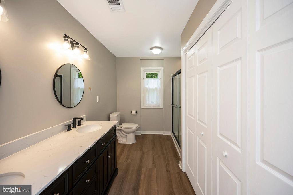 An exceptional show of craftsmanship and refinement, this remarkable residence by Estridge homes blends thoughtful design with elevated finishes. Featuring 5 spacious bedrooms, including two main-level primary suites, this home is perfectly suited for multi-generational living or added flexibility. Soaring ceilings and a full wall of floor-to-ceiling windows in the living room flood the space with natural light, creating an open and inviting atmosphere. Beautiful LVP flooring runs throughout the main living areas, complementing the home's modern yet timeless style. The chef's kitchen is complete with a walk-in pantry and flows seamlessly into the main living space, ideal for both everyday living and entertaining. The primary bedroom includes a custom floor-to-ceiling California Closet system, providing exceptional organization and storage. Upstairs you'll find bedrooms 3 &4 that both offer an exceptional amount of storage space. The basement is fully finished and includes a mounted projector for the perfect movie night. The 5th bedroom is located in the basement along with a full bathroom, the perfect spot for out of town guests or sleepovers! Step outside to the private courtyard, a quiet setting for hosting guests or enjoying a quiet evening. Every detail of this home has been carefully curated to deliver comfort, elegance, and effortless living.