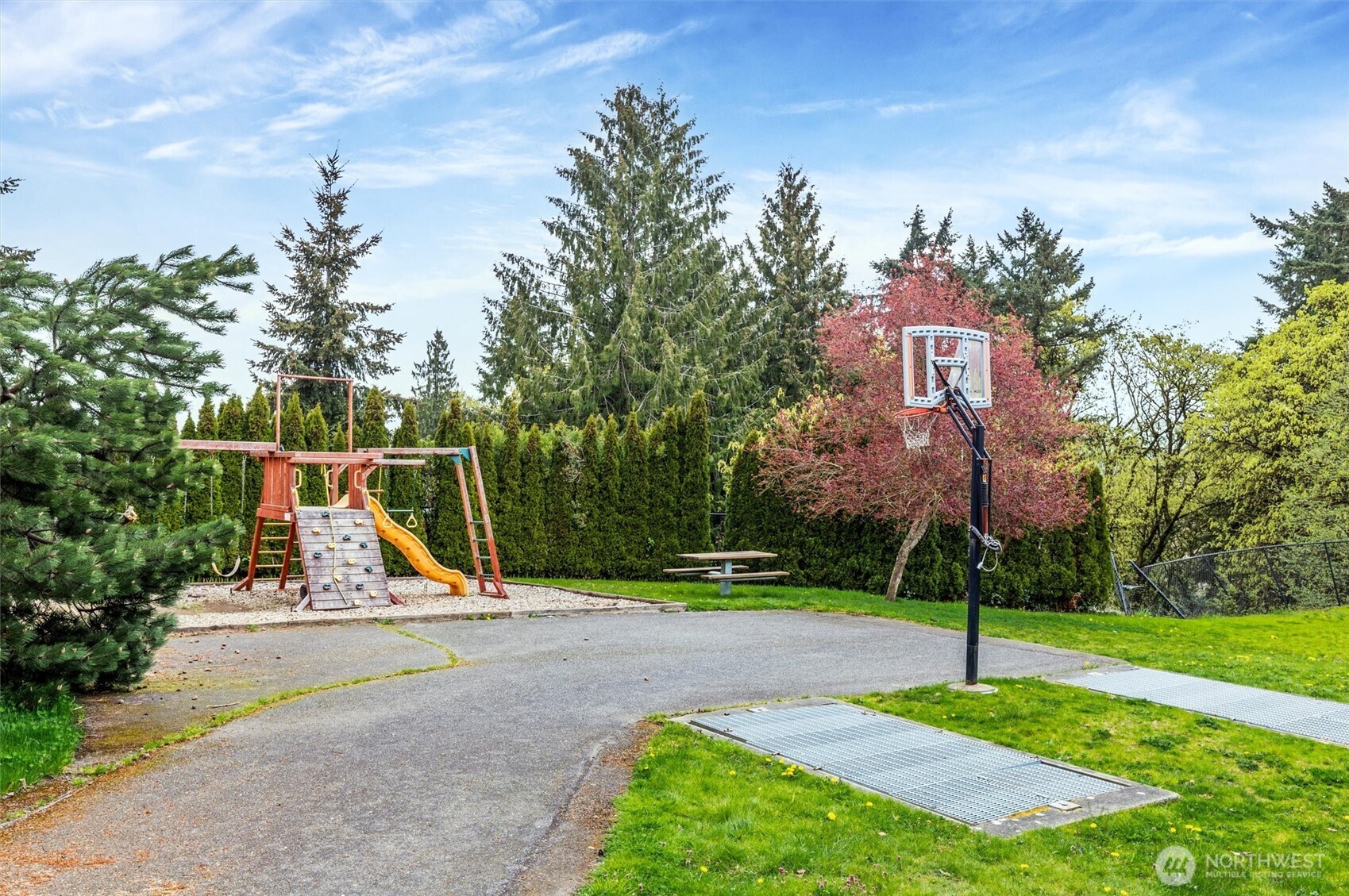 Tucked away in a peaceful greenbelt setting, this beautiful 5-bedroom home offers the perfect blend of space, comfort, and location. Surrounded by natural greenery and nestled in a quiet neighborhood near all that Auburn has to offer, this property delivers both privacy and convenience. Step inside to a soaring entryway and big window light-filled interiors. The thoughtfully designed floor plan creates an easy flow, highlighted by elegant archways, warm wood accents, a cozy fireplace, and inviting living spaces ideal for everyday living and entertaining. The cheerful tile island kitchen is the heart of the home, complete with abundant cabinetry, a pantry, casual dining area, and included appliances. Upstairs, you'll find four spacious bedrooms, including a relaxing king sized primary suite, two full baths, and a versatile loft area. The fully finished lower level offers exceptional flexibility with a second living room, fifth bedroom, full bath, and additional space perfect for a media room, home office, or guest quarters. A second kitchen setup in the garage further enhances the home's potential for multi-generational living or extended stays. Outdoor living is just as impressive, with a covered elevated deck, an extended paver patio, and a fully fenced yard that backs to tranquil greenery—perfect for relaxing or entertaining year-round. Park to play at end of street and close to both I-5 and 167!