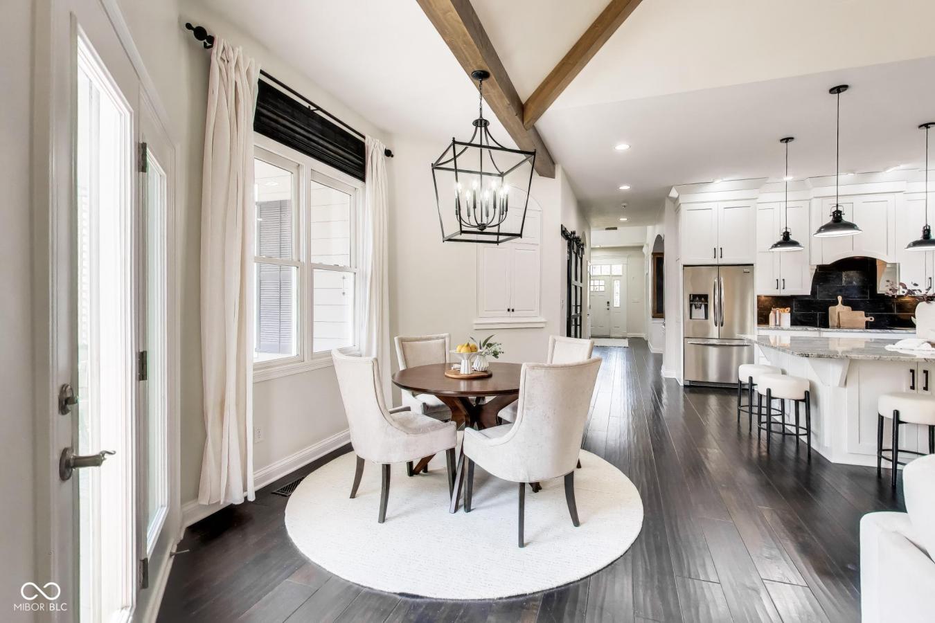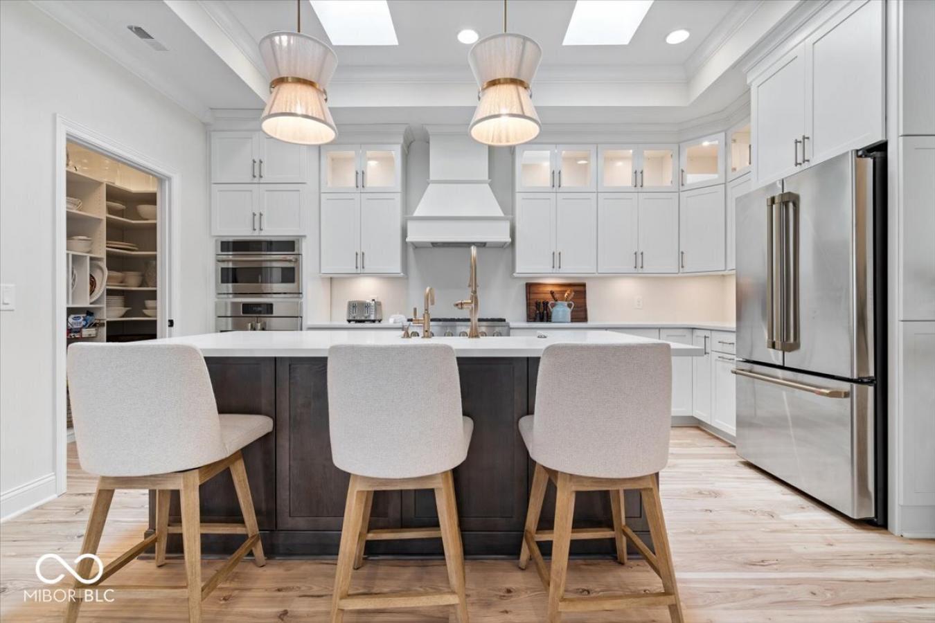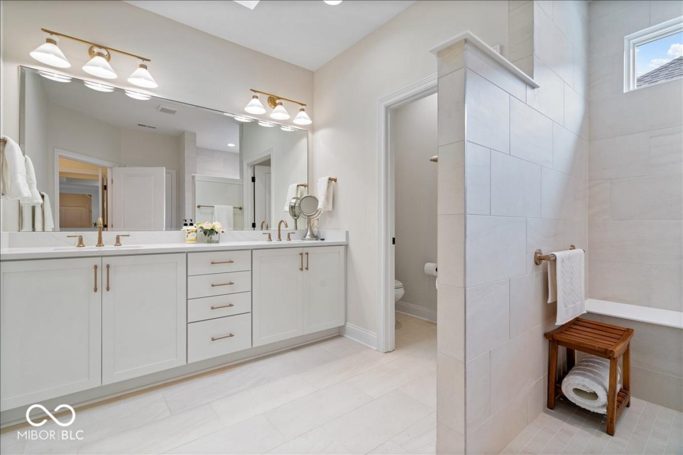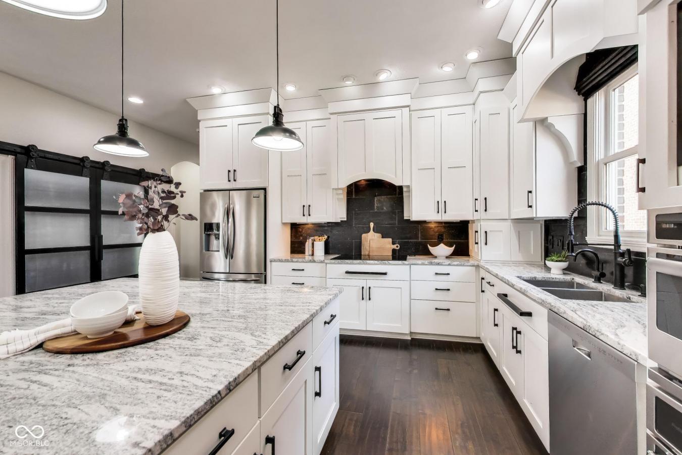 Tucked in the heart of the Village of West Clay, 12621 Treaty Line Street blends charming luxury and thoughtful design with an open, flowing layout ideal for everyday living and entertaining. A grand staircase makes a striking first impression, while the beautifully updated office with custom cabinetry sits just off the entry, offering a refined and functional workspace. The kitchen serves as the heart of the home, featuring an oversized center island perfect for gathering, handcrafted cabinetry, granite countertops, custom backsplash, and a spacious walk-in pantry tucked behind sleek sliding doors. The great room impresses with soaring ceilings, wood accent beams, and a gas fireplace, creating a warm, inviting space. Step outside to a private stone patio designed for entertaining, complete with a wood-burning fireplace, tranquil water feature, and stylish cabinet designed to protect your outdoor TV. The main-level primary suite offers a peaceful retreat with updated flooring, a tray ceiling, and custom built-in shelves, along with a spa-inspired bathroom featuring a soaking tub, separate shower, and large walk-in closet. Upstairs, two spacious bedrooms share an updated Jack-and-Jill bath featuring separate vanities, while at the back of the house, a private and versatile upstairs fourth bedroom/loft with its own full bathroom provides respite for guests or an in-law suite and a second office. The finished lower level expands your living space with a large recreation area, a bar for entertaining, an additional flex room ideal for a guest bedroom or a gym, and a renovated full bathroom with an added shower and updated finishes. The oversized garage holds 3 cars, features epoxy floors, built-in shelving, and a service/access door. Located just steps from Herman Wells Park, Nimitz Park, and the Provost Pool, as well as an array of shops, salons, dining, and community amenities, this Village of WestClay home offers the perfect blend of lifestyle, location, and livability.