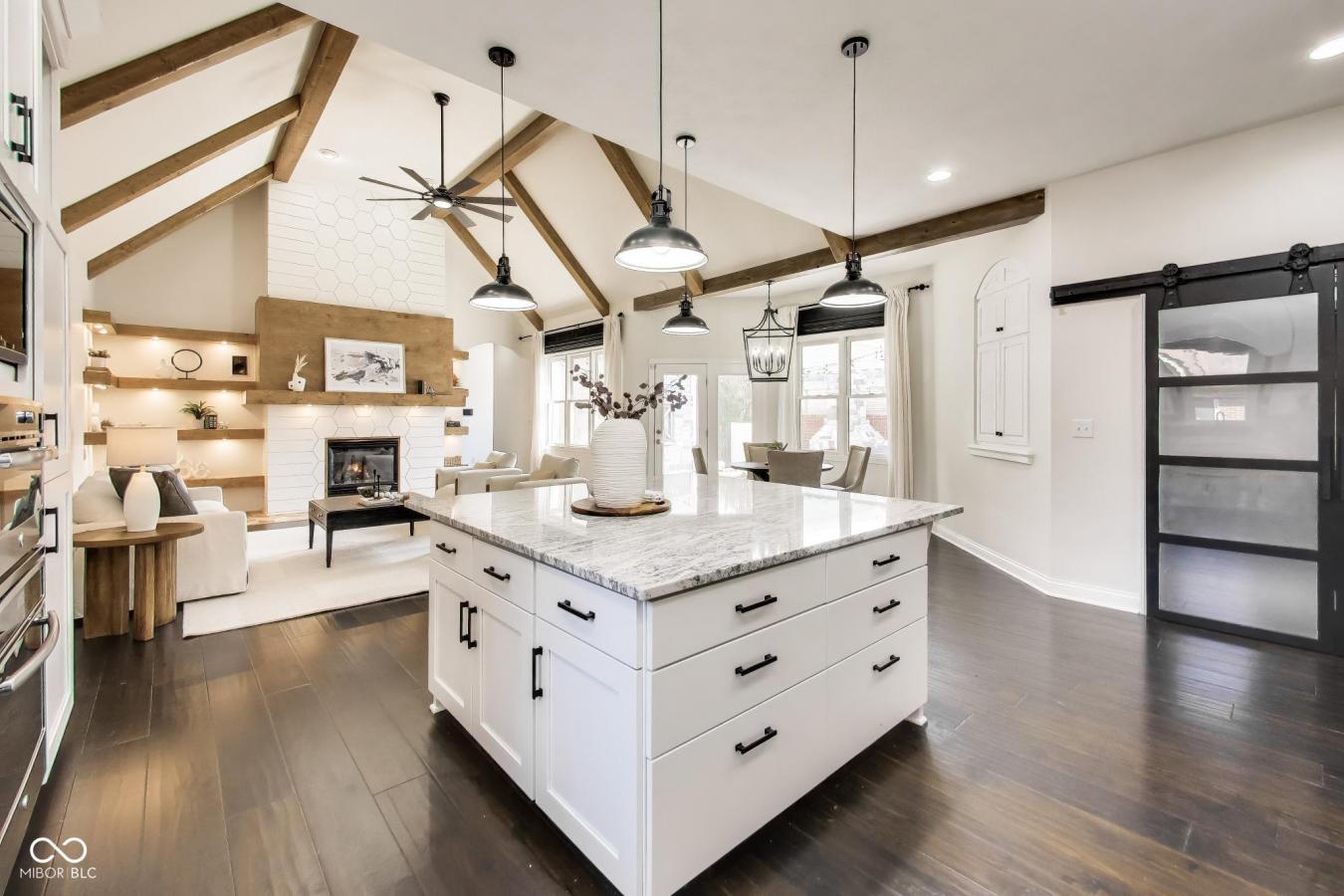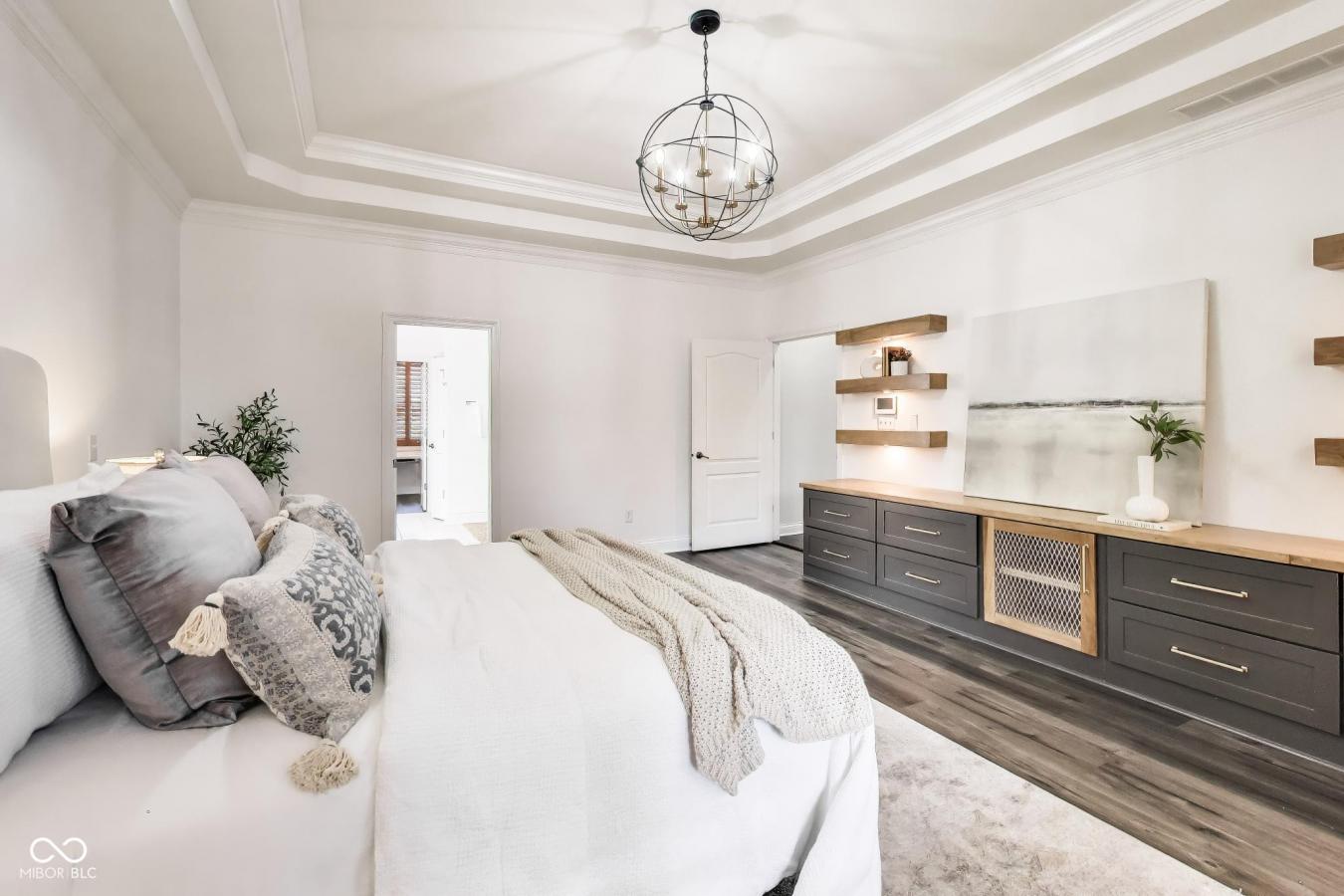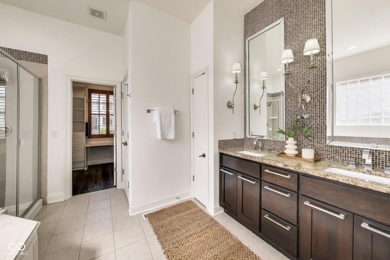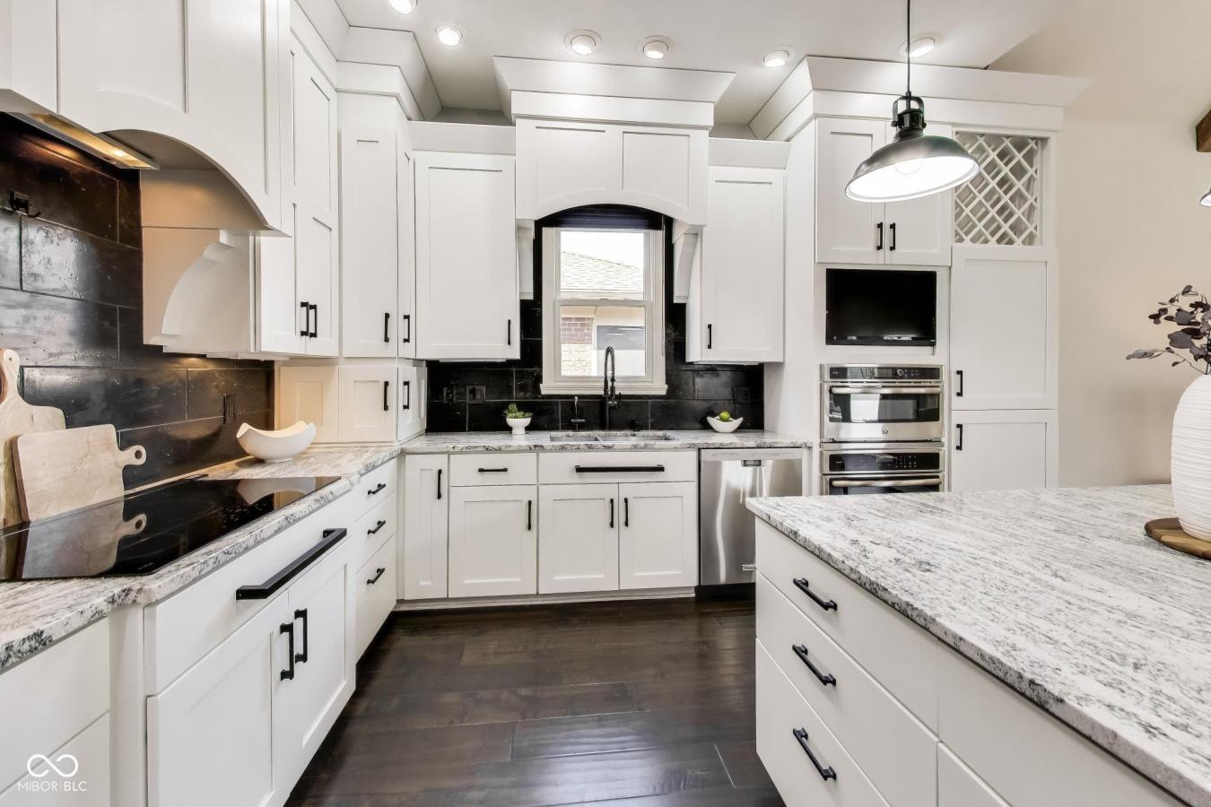 Tucked in the heart of the Village of West Clay, 12621 Treaty Line Street blends charming luxury and thoughtful design with an open, flowing layout ideal for everyday living and entertaining. A grand staircase makes a striking first impression, while the beautifully updated office with custom cabinetry sits just off the entry, offering a refined and functional workspace. The kitchen serves as the heart of the home, featuring an oversized center island perfect for gathering, handcrafted cabinetry, granite countertops, custom backsplash, and a spacious walk-in pantry tucked behind sleek sliding doors. The great room impresses with soaring ceilings, wood accent beams, and a gas fireplace, creating a warm, inviting space. Step outside to a private stone patio designed for entertaining, complete with a wood-burning fireplace, tranquil water feature, and stylish cabinet designed to protect your outdoor TV. The main-level primary suite offers a peaceful retreat with updated flooring, a tray ceiling, and custom built-in shelves, along with a spa-inspired bathroom featuring a soaking tub, separate shower, and large walk-in closet. Upstairs, two spacious bedrooms share an updated Jack-and-Jill bath featuring separate vanities, while at the back of the house, a private and versatile upstairs fourth bedroom/loft with its own full bathroom provides respite for guests or an in-law suite and a second office. The finished lower level expands your living space with a large recreation area, a bar for entertaining, an additional flex room ideal for a guest bedroom or a gym, and a renovated full bathroom with an added shower and updated finishes. The oversized garage holds 3 cars, features epoxy floors, built-in shelving, and a service/access door. Located just steps from Herman Wells Park, Nimitz Park, and the Provost Pool, as well as an array of shops, salons, dining, and community amenities, this Village of WestClay home offers the perfect blend of lifestyle, location, and livability.