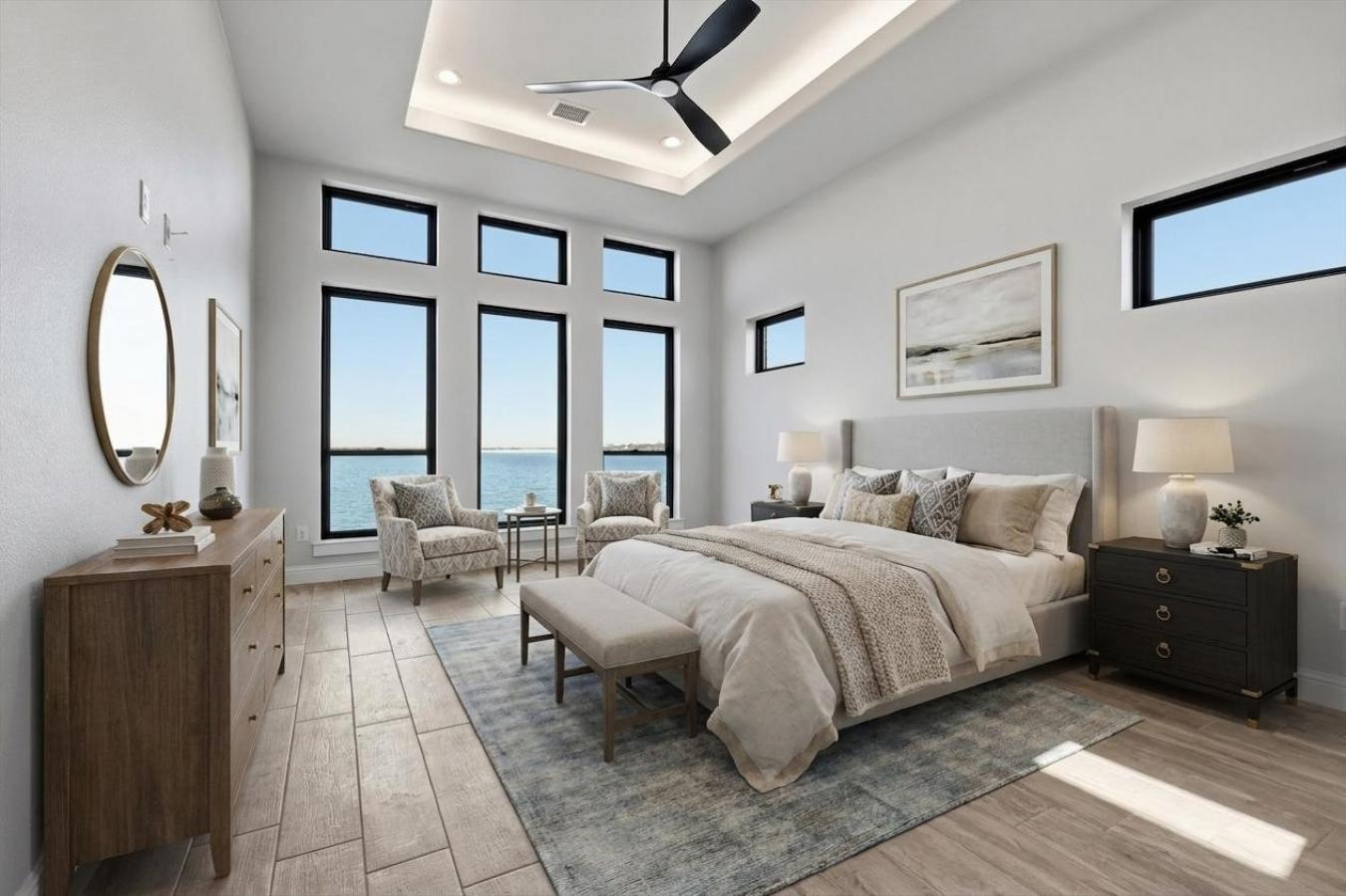 Priced to sell, brand-new custom lakefront home. This residence offers a refined, modern design with 12-foot ceilings, high-end finishes throughout, and a seamless indoor-outdoor flow with floor-to-ceiling sliding glass doors. The home features ZLINE professional appliances, porcelain tile on the main level, and luxury vinyl upstairs. Built for efficiency and comfort, it includes a tankless water heater, 17 SEER HVAC system, advanced climate control, and enhanced soundproofing. Enjoy panoramic lake views and a thoughtfully designed living experience.