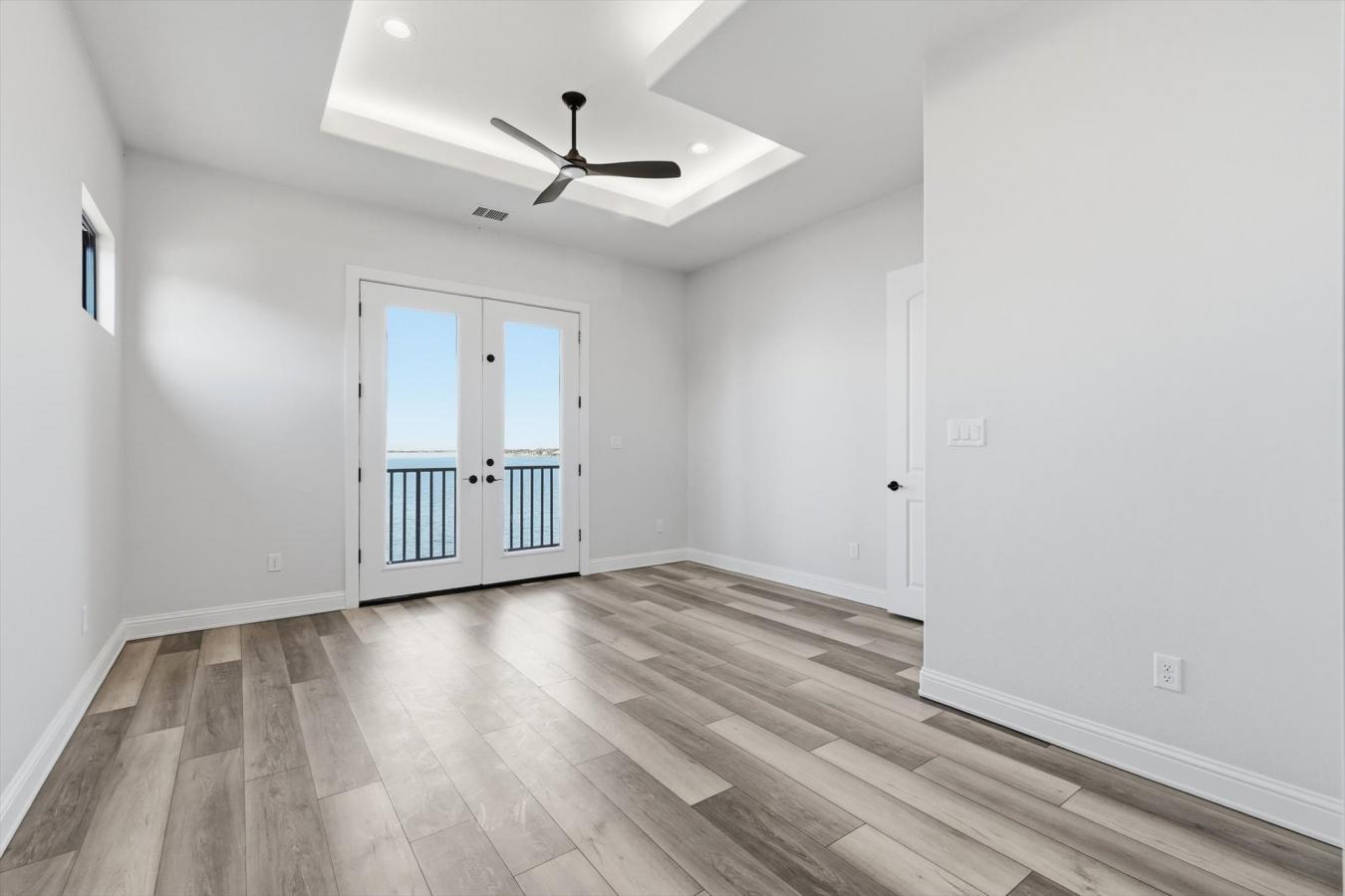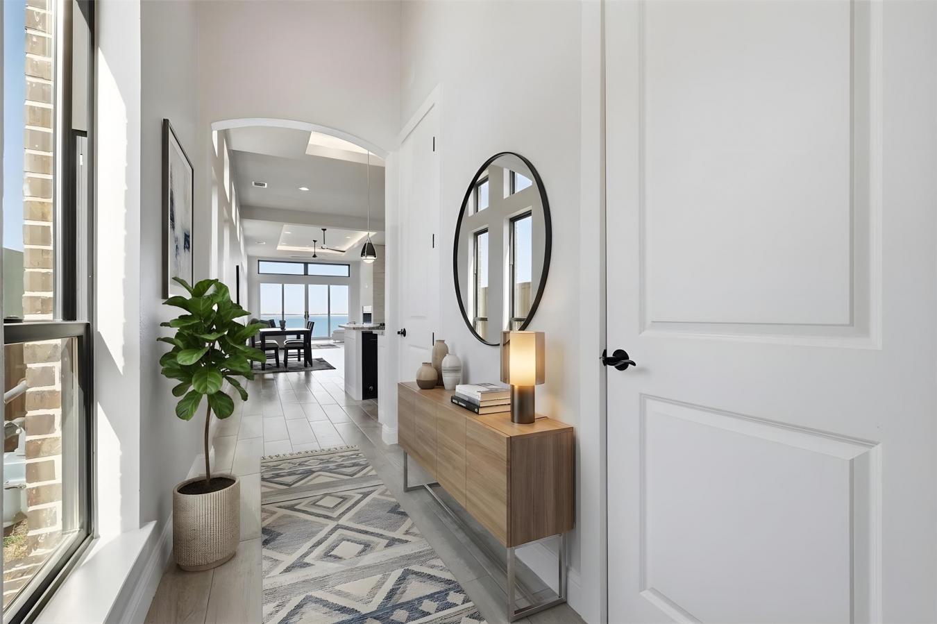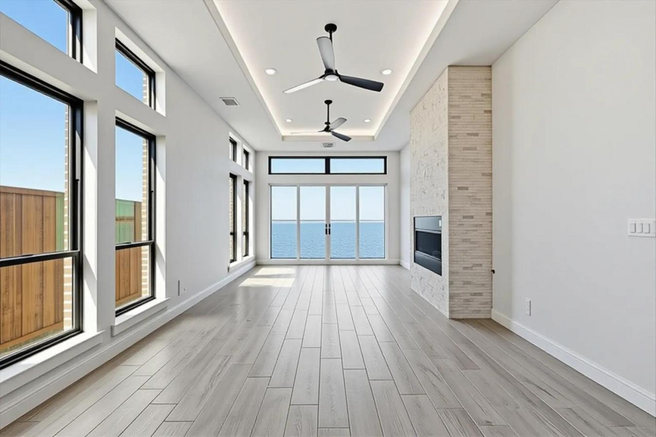 Priced to sell, brand-new custom lakefront home. This residence offers a refined, modern design with 12-foot ceilings, high-end finishes throughout, and a seamless indoor-outdoor flow with floor-to-ceiling sliding glass doors. The home features ZLINE professional appliances, porcelain tile on the main level, and luxury vinyl upstairs.