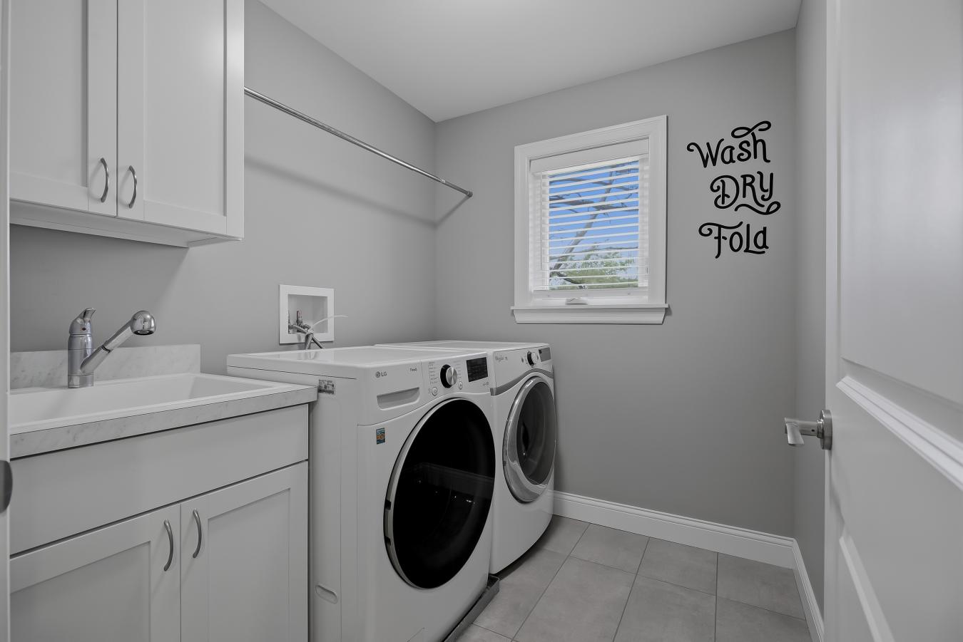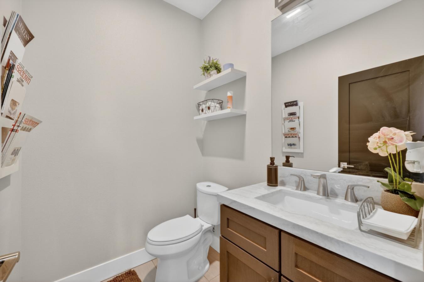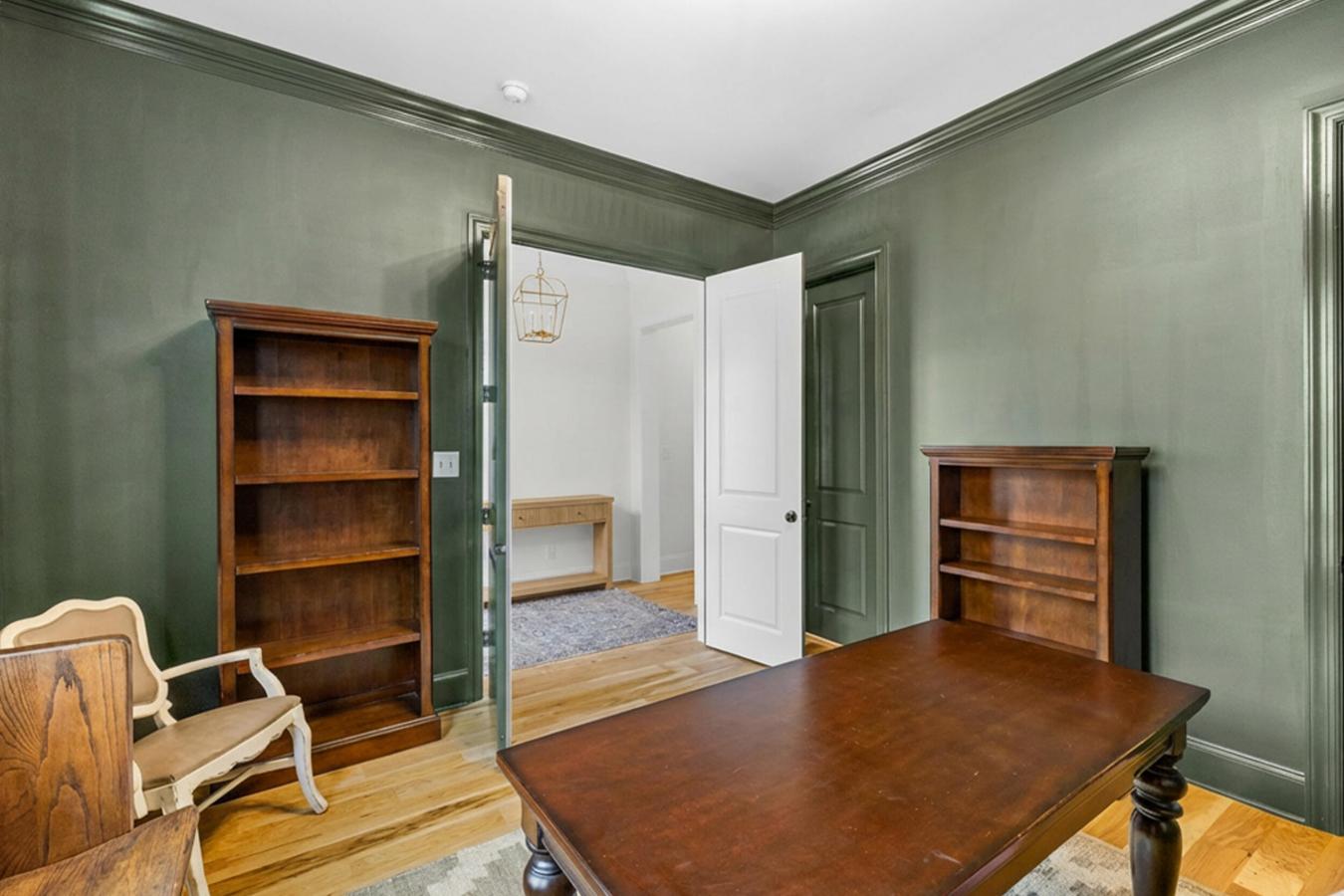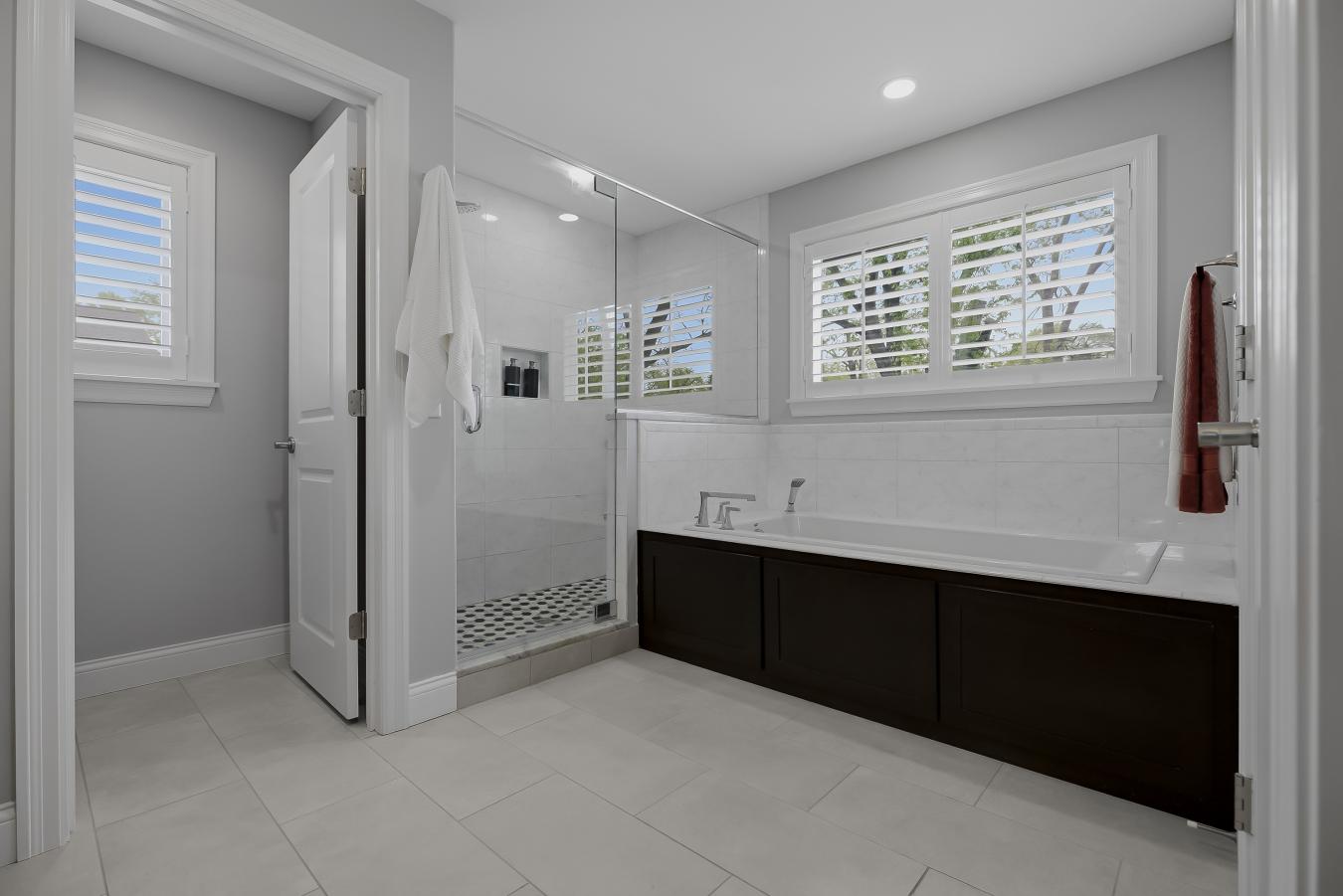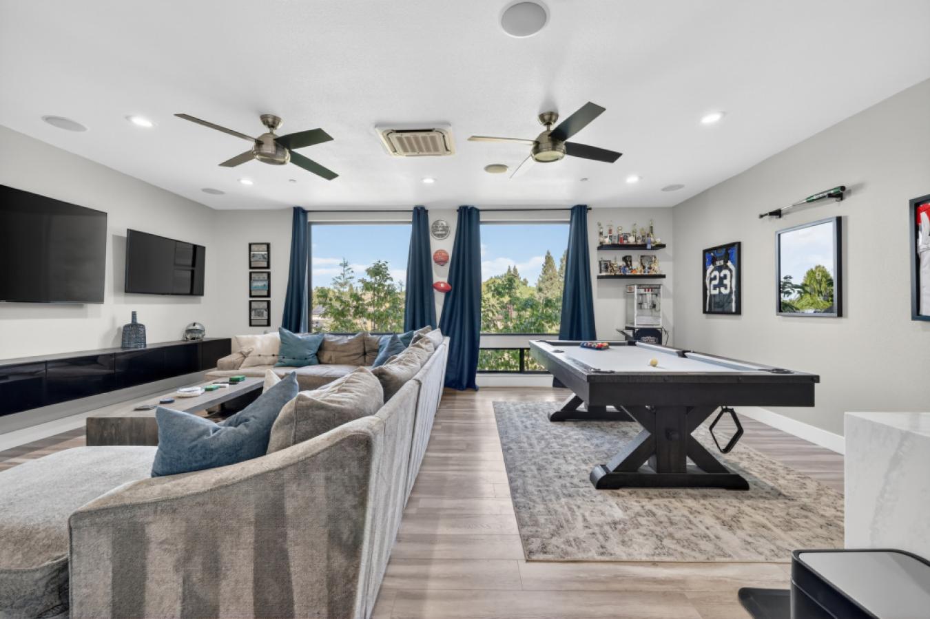 Step through the front door and you immediately feel this is a home where intention meets artistry. Sunlight pours through **Milgard Ultra Series windows**, dancing across carefully curated spaces, while a striking solid metal entry sets the tone for the craftsmanship found within. At the center of it all, the kitchen invites connection.