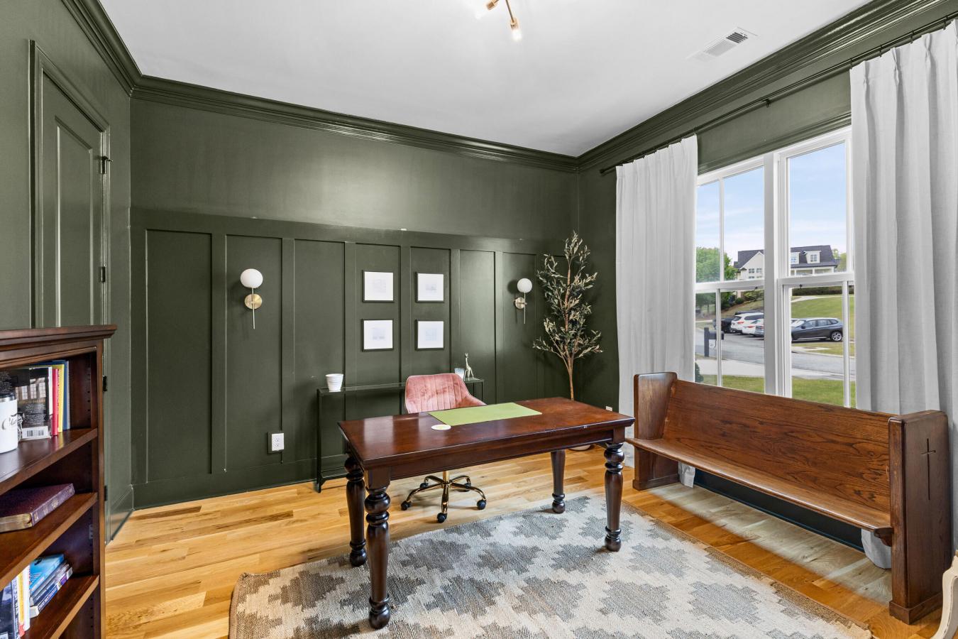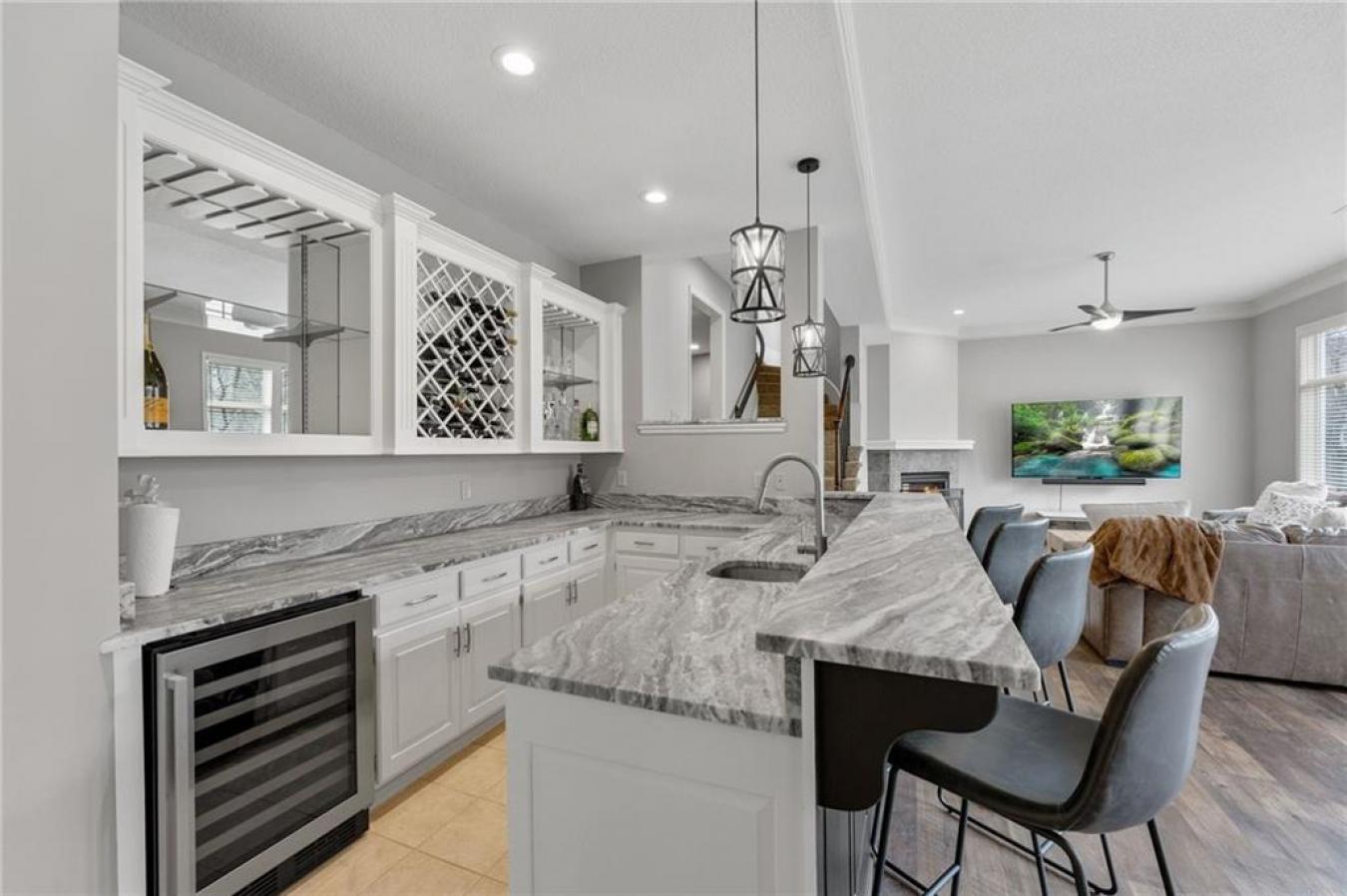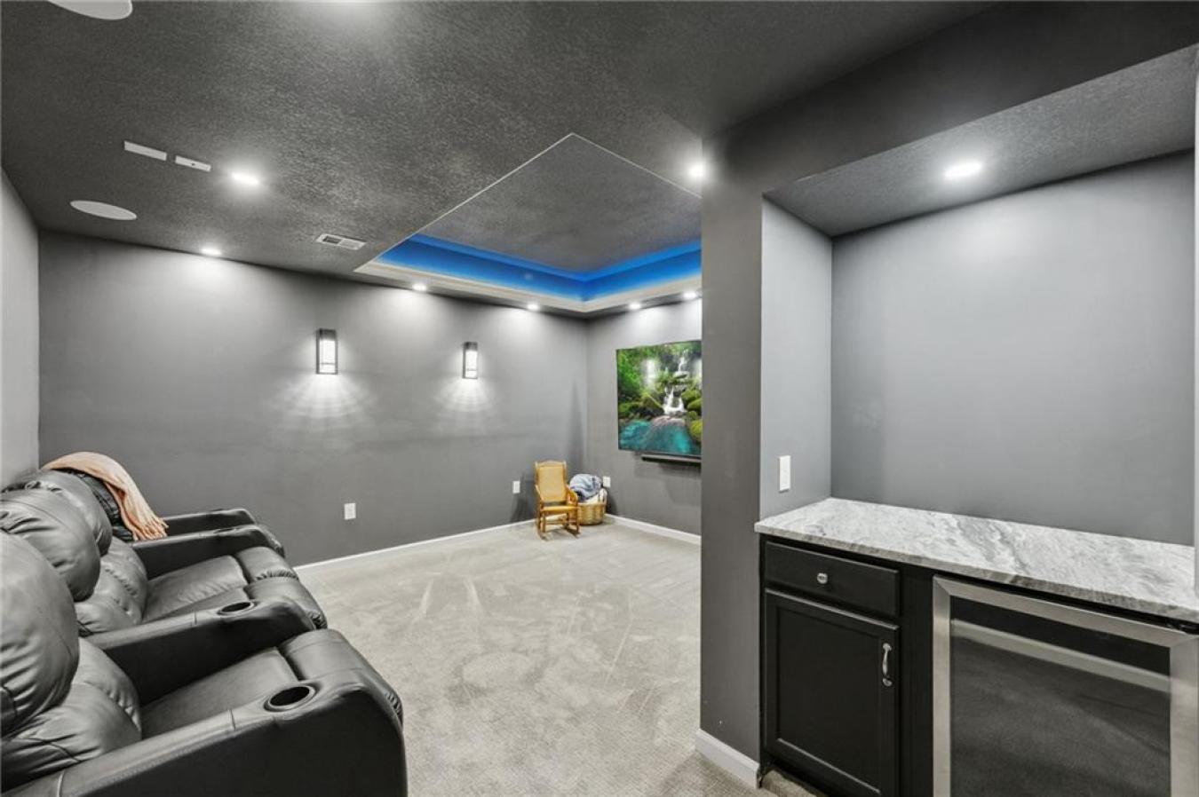 Tucked at the end of a quiet cul-de-sac in the coveted Pavilions neighborhood, this stunning 5-bedroom home delivers the lifestyle buyers dream about. Double doors and a beautiful curved walkway set the tone before you even step inside-and from there, every detail delivers. The soaring kitchen and oversized island are made for gathering, while the custom-designed office, mudroom, and walk-in pantry are an organizers dream. Upstairs, the loft offers flexible space for work or play, and the primary suite is nothing short of a retreat-featuring a spa-worthy soaker tub, a cozy fireplace, and a closet that rivals most bedrooms. Whether sipping your morning coffee and watching the sunrise above the trees or enjoying a cozy fireside conversation, you wont want to leave. The finished lower level goes above and beyond with a custom bar, a full bedroom with an ensuite, a dedicated theater, an exercise room, and a playroom. Step outside and breathe-private, treed views from every rear window and a gorgeous deck make you forget the world exists. Community pool, cul-de-sac privacy, and all the space youve been waiting for. Welcome home!