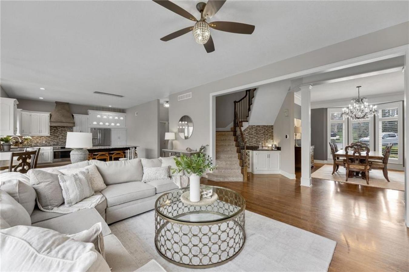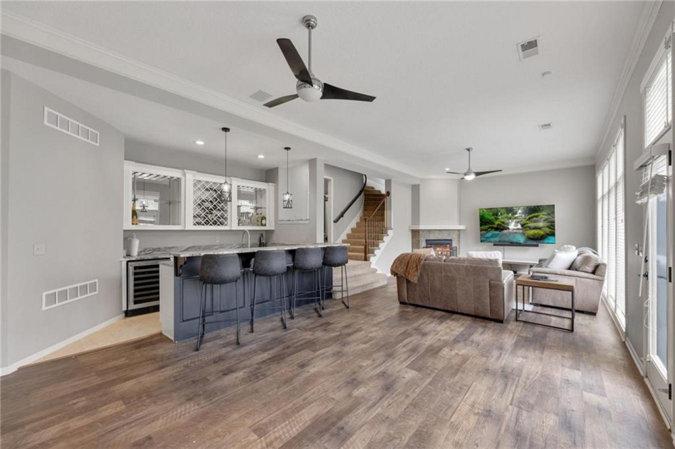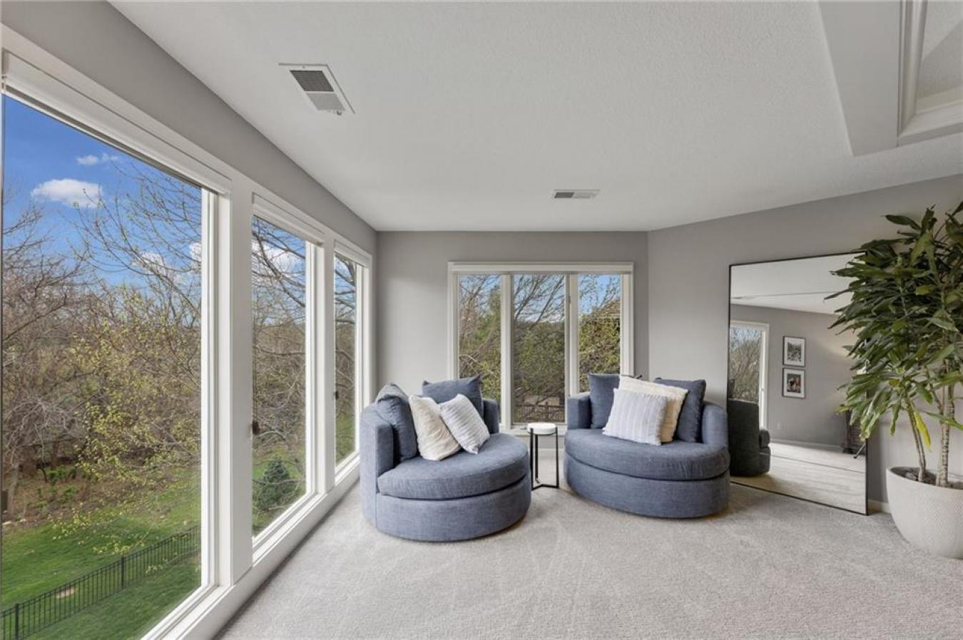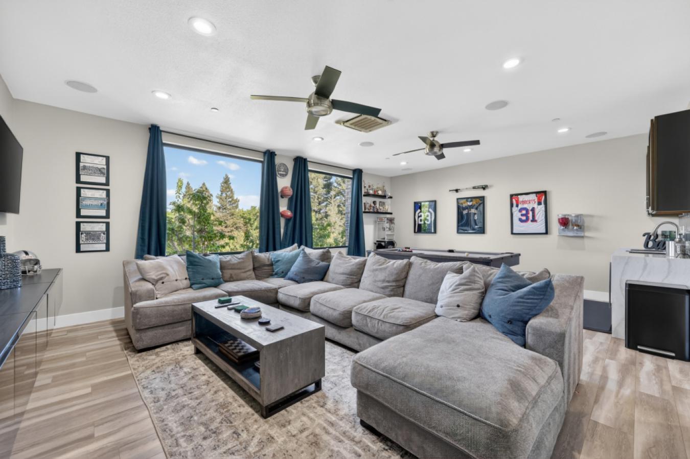 Tucked at the end of a quiet cul-de-sac in the coveted Pavilions neighborhood, this stunning 5-bedroom home delivers the lifestyle buyers dream about. Double doors and a beautiful curved walkway set the tone before you even step inside-and from there, every detail delivers. The soaring kitchen and oversized island are made for gathering, while the custom-designed office, mudroom, and walk-in pantry are an organizers dream. Upstairs, the loft offers flexible space for work or play, and the primary suite is nothing short of a retreat-featuring a spa-worthy soaker tub, a cozy fireplace, and a closet that rivals most bedrooms. Whether sipping your morning coffee and watching the sunrise above the trees or enjoying a cozy fireside conversation, you wont want to leave. The finished lower level goes above and beyond with a custom bar, a full bedroom with an ensuite, a dedicated theater, an exercise room, and a playroom. Step outside and breathe-private, treed views from every rear window and a gorgeous deck make you forget the world exists. Community pool, cul-de-sac privacy, and all the space youve been waiting for. Welcome home!