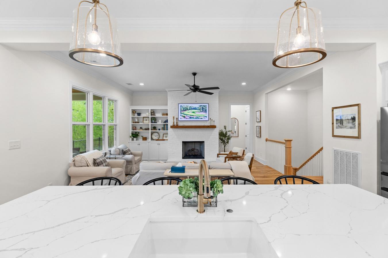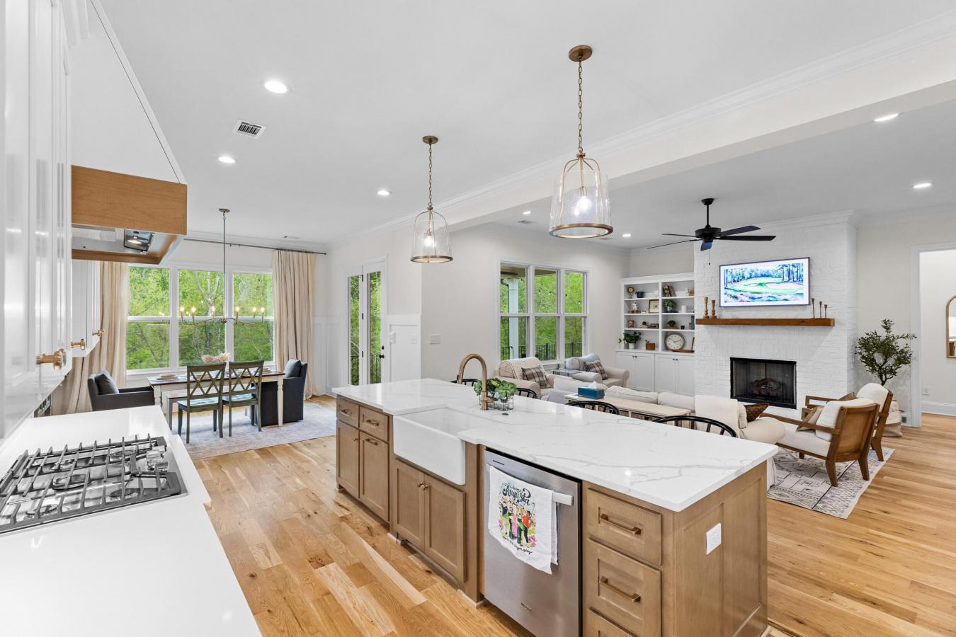 Experience elevated living in the coveted River Island community, where privacy, design, and natural beauty come together seamlessly. Nestled on over a quarter-acre lot overlooking a tranquil wooded setting and creek, this 5-bedroom, 4-bath custom Southeastern family home offers 3,388 square feet of thoughtfully designed living space.