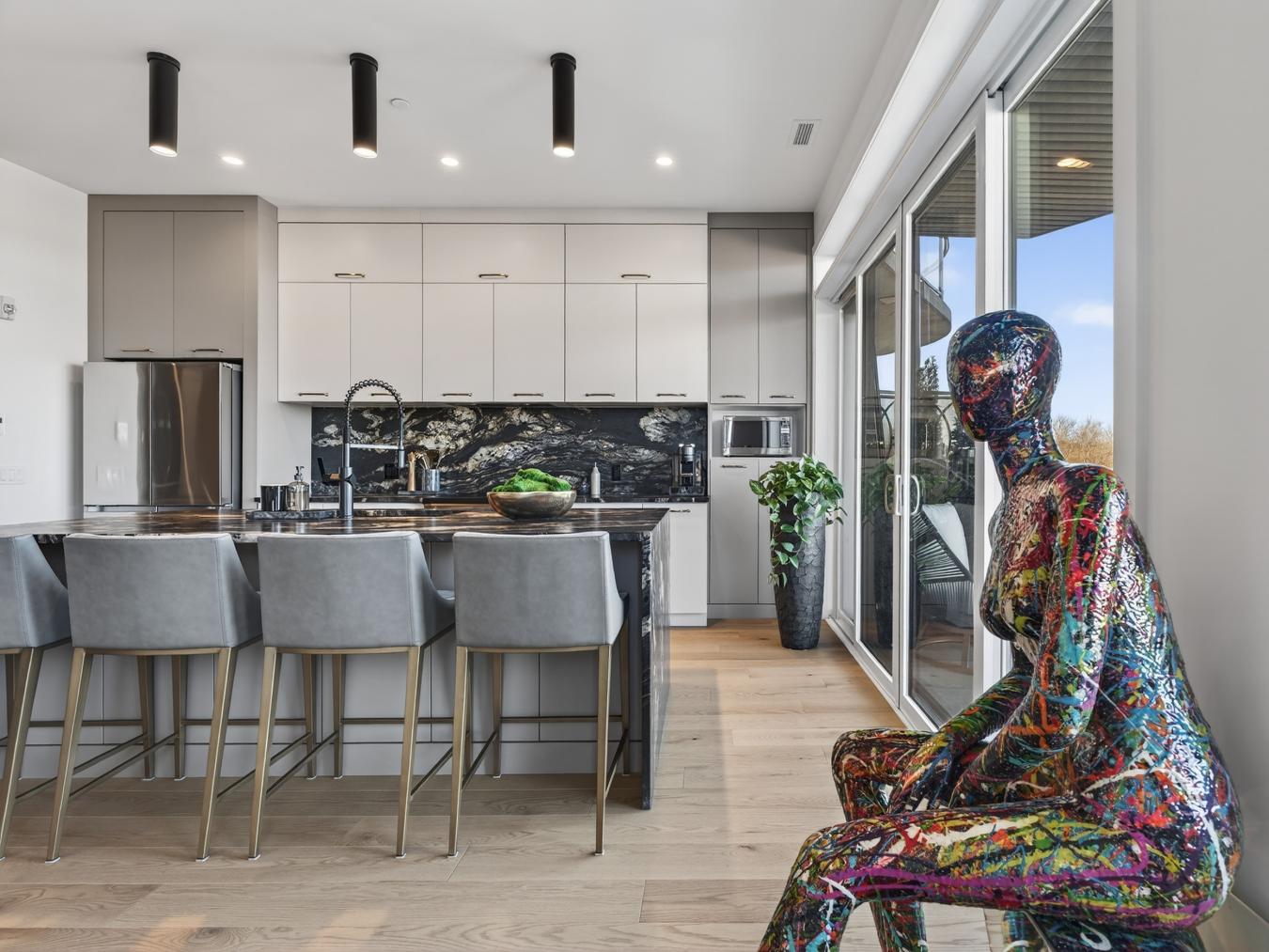 Designed from the ground up, this two-level condo offers an exceptional residential experience. Impressive volumes, premium materials, a spectacular kitchen, and a light-filled living area open onto a vast terrace with panoramic views of Sherbrooke.