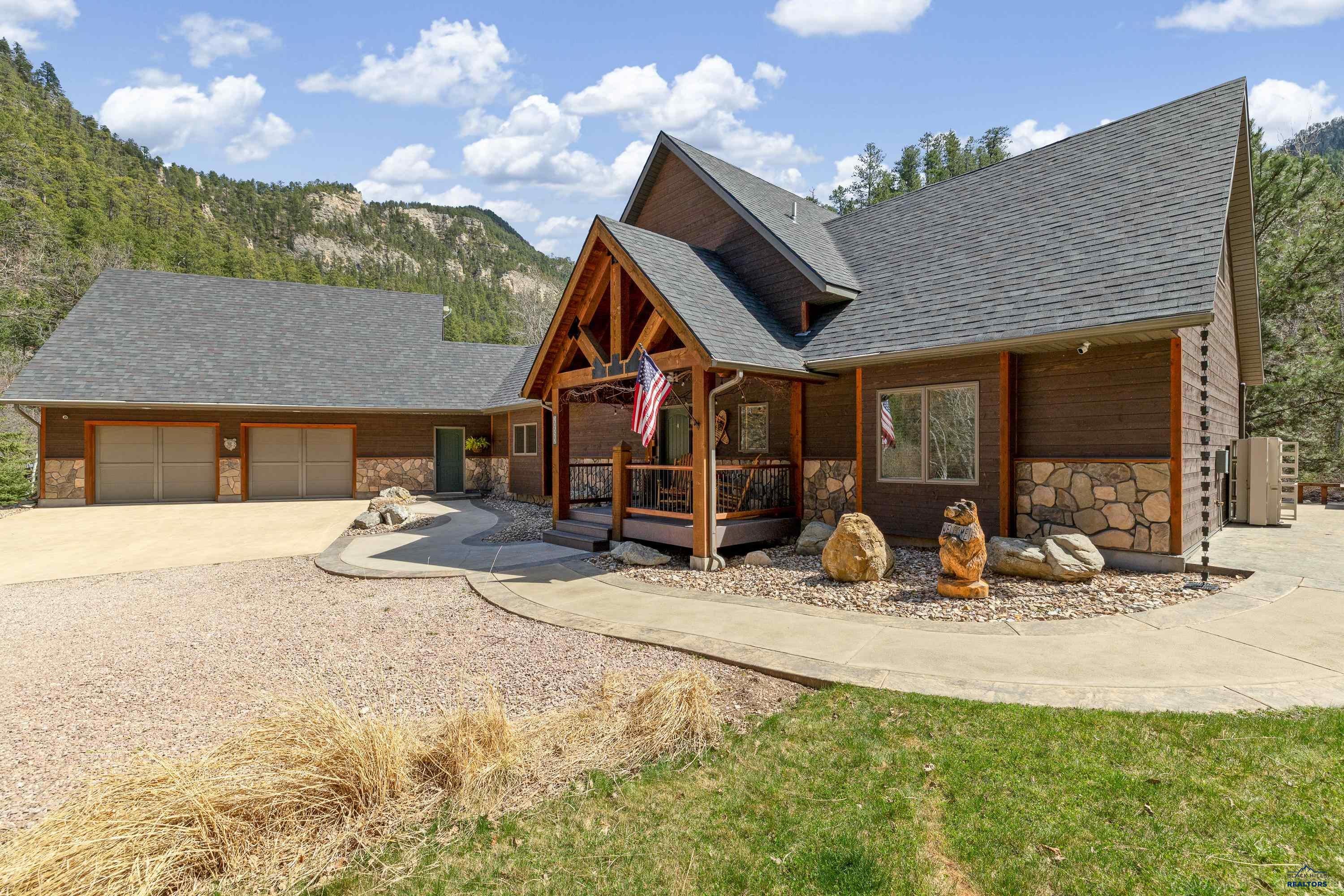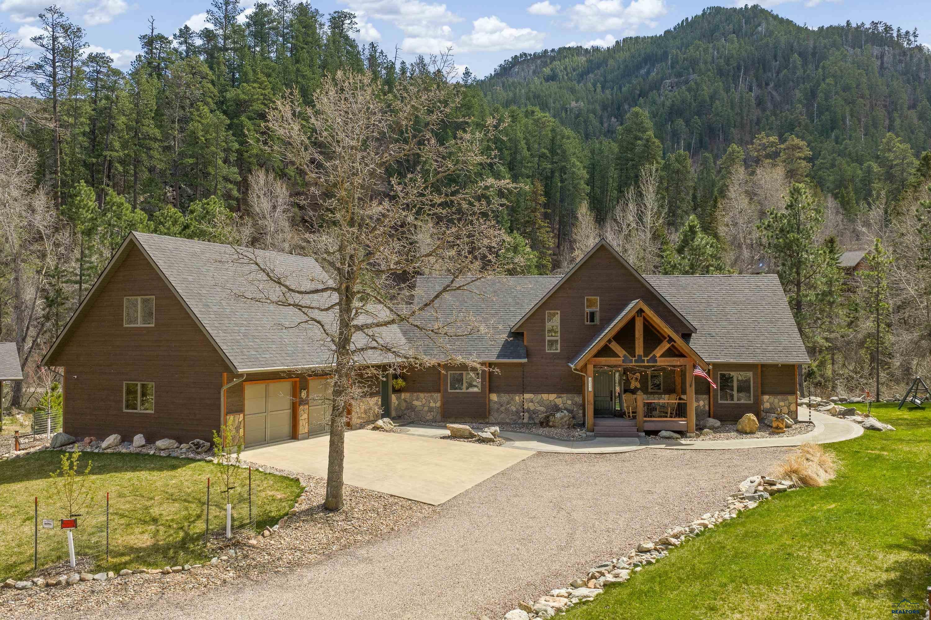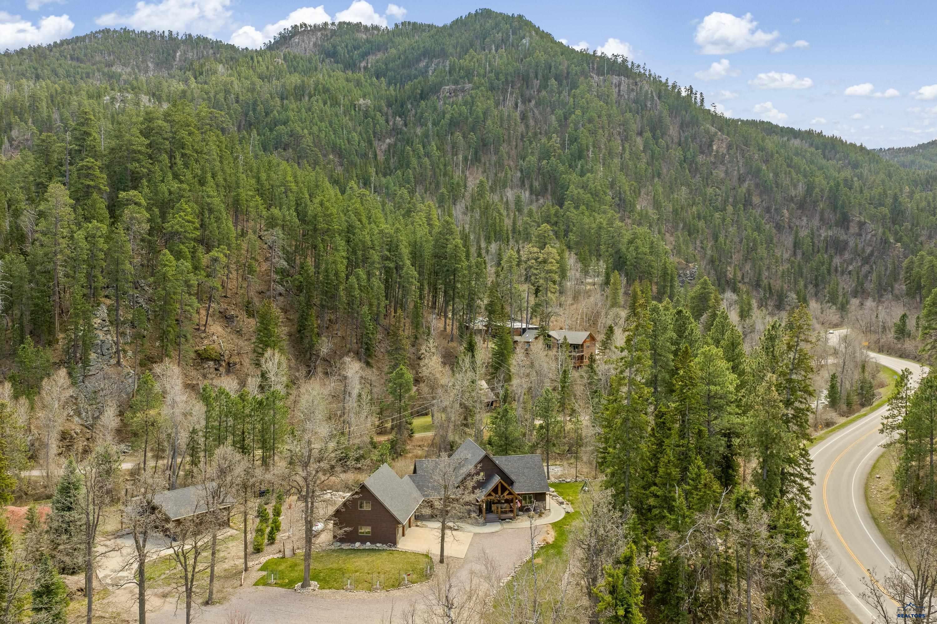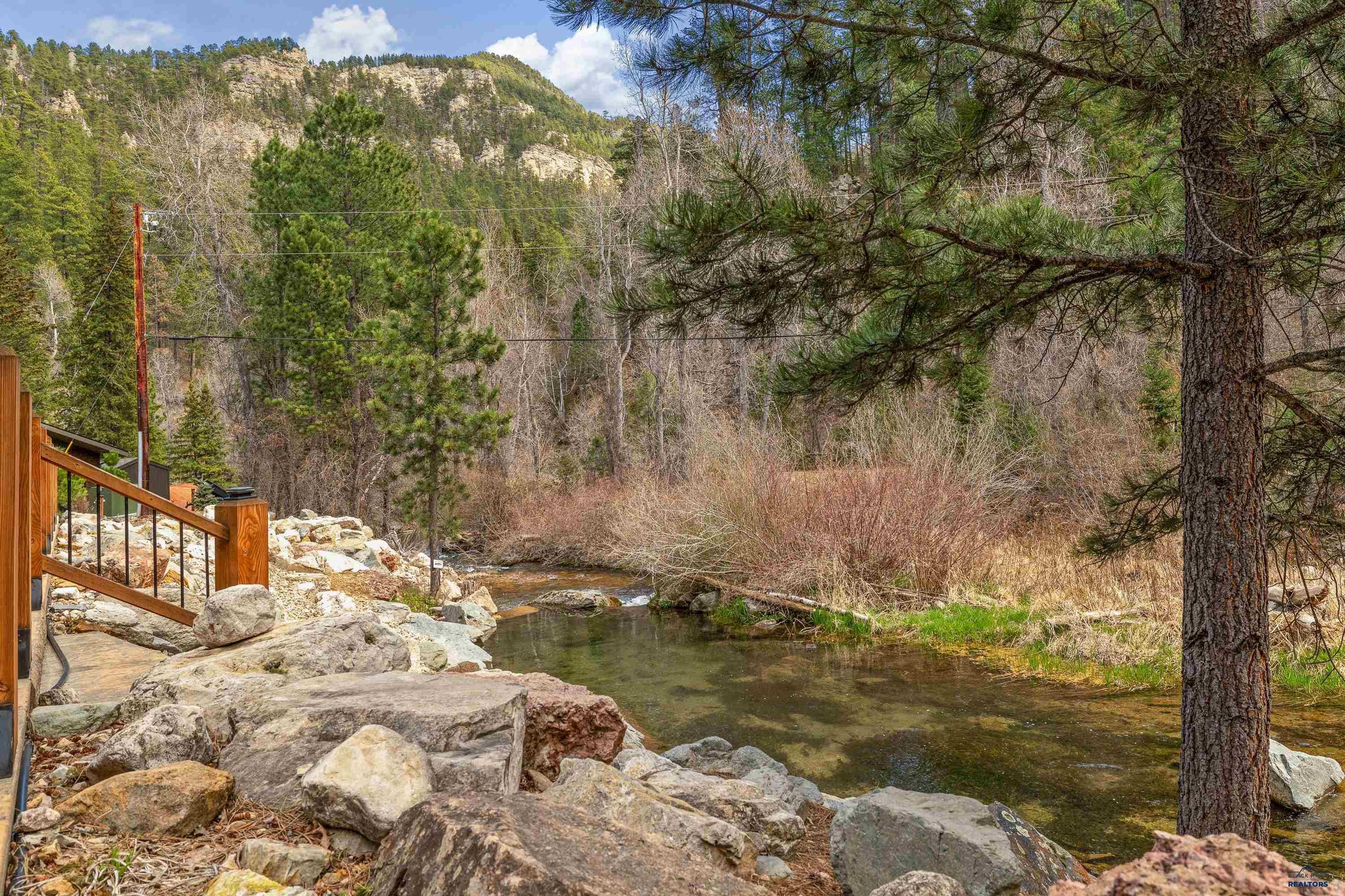 Absolute creekside perfection in Spearfish Canyon! These properties rarely become available and this is a true Black Hills treasure. This stunning and serene home offers peace and tranquility, yet has easy access to Spearfish which is just 5 minutes away. Rustic timber beams welcome you to the front porch.