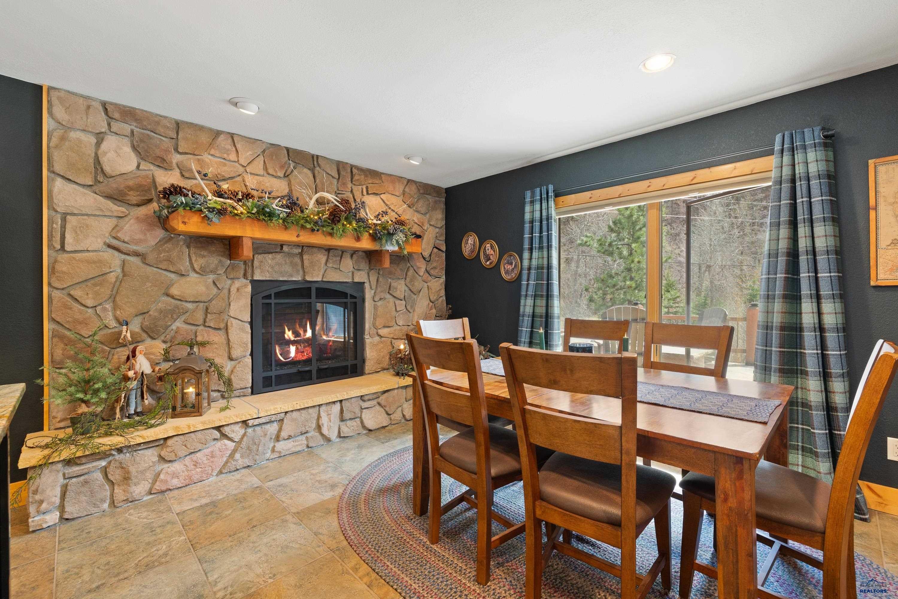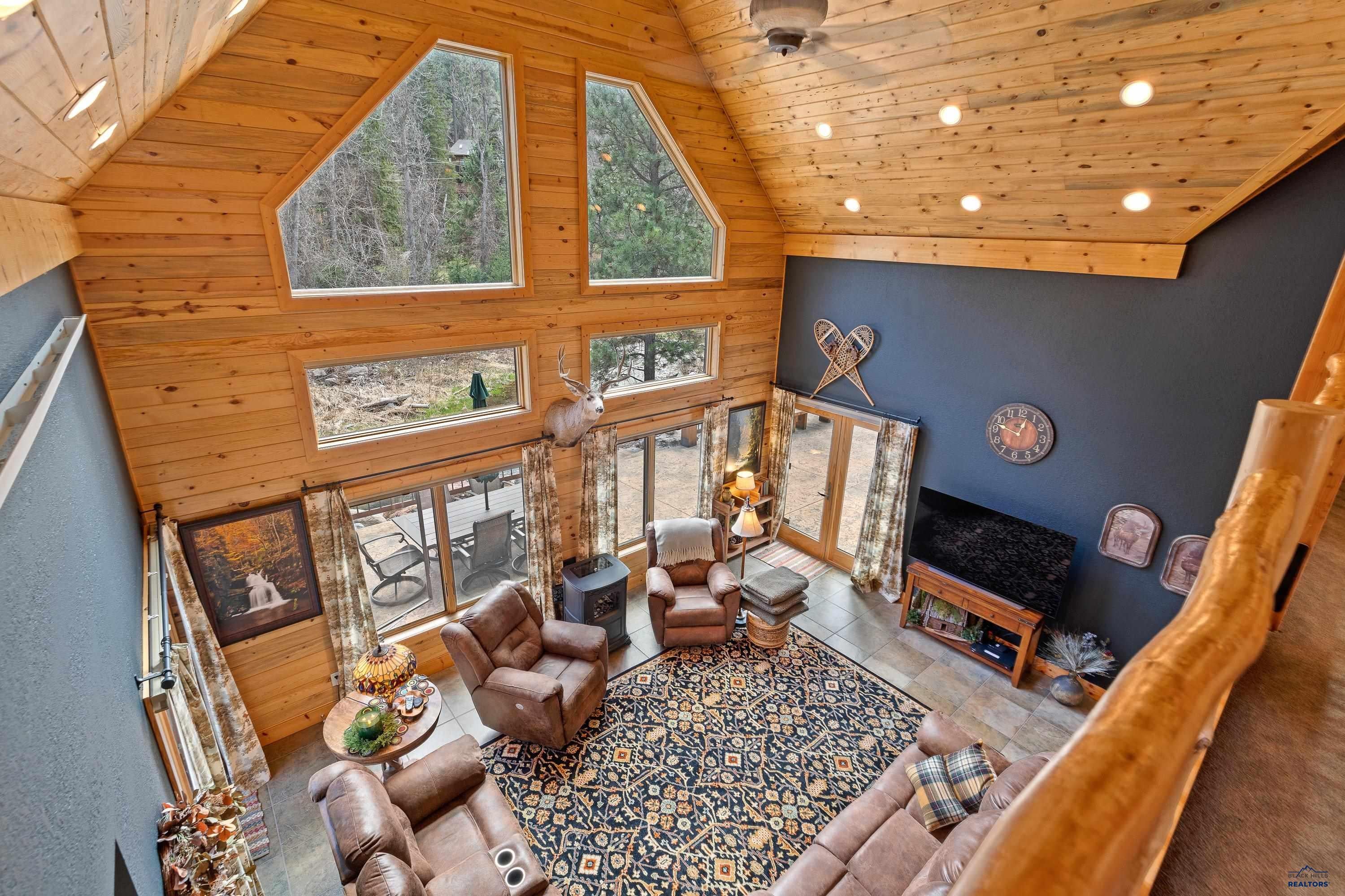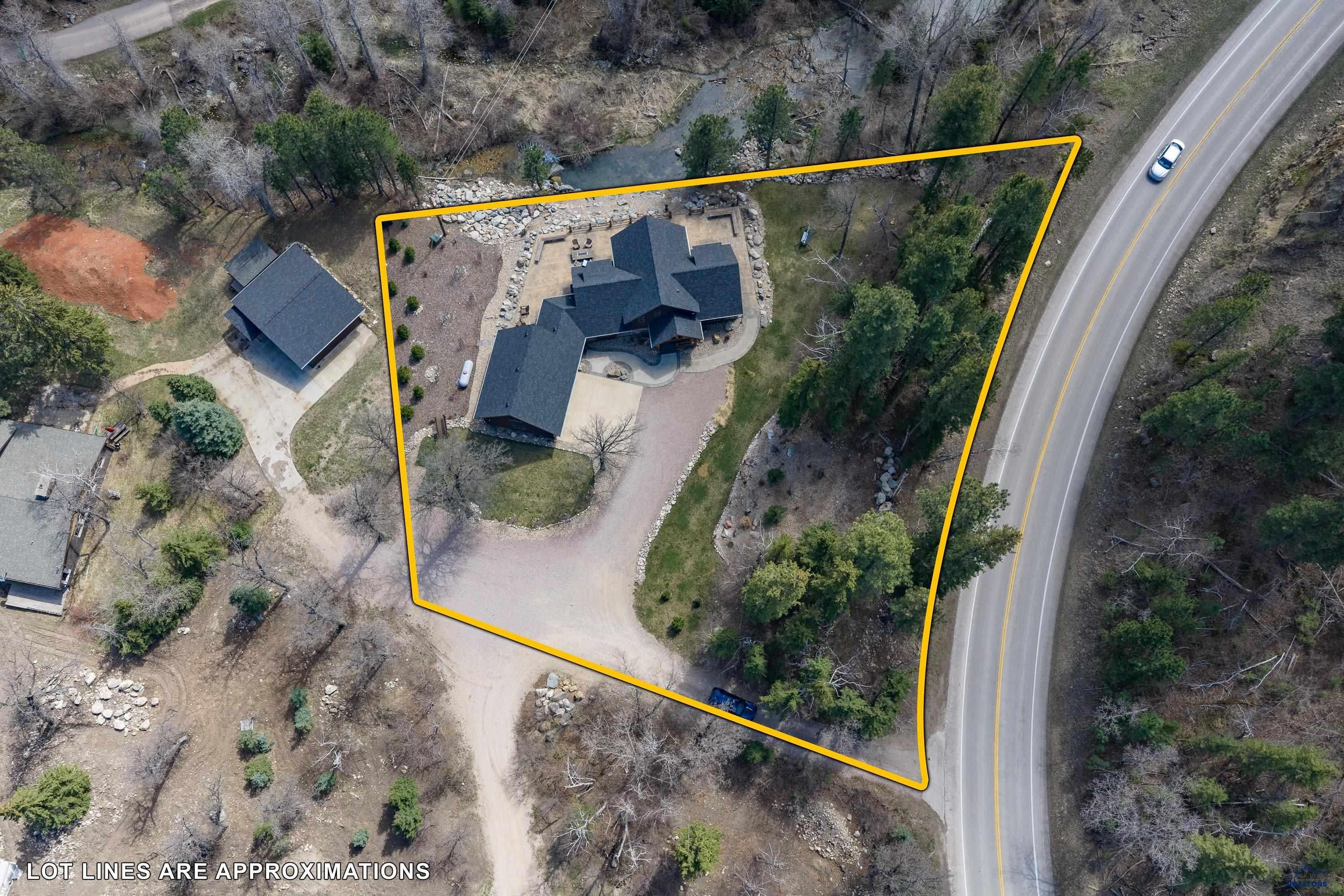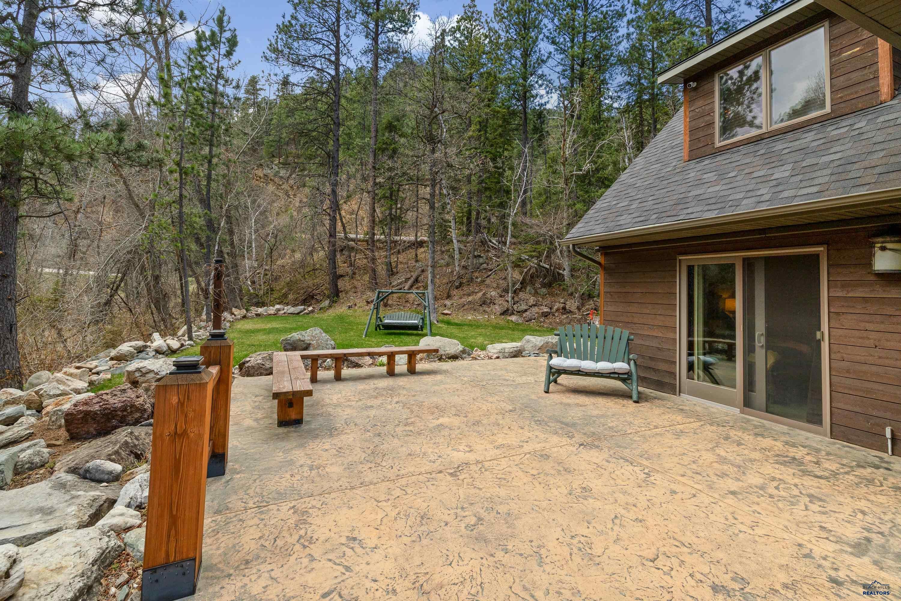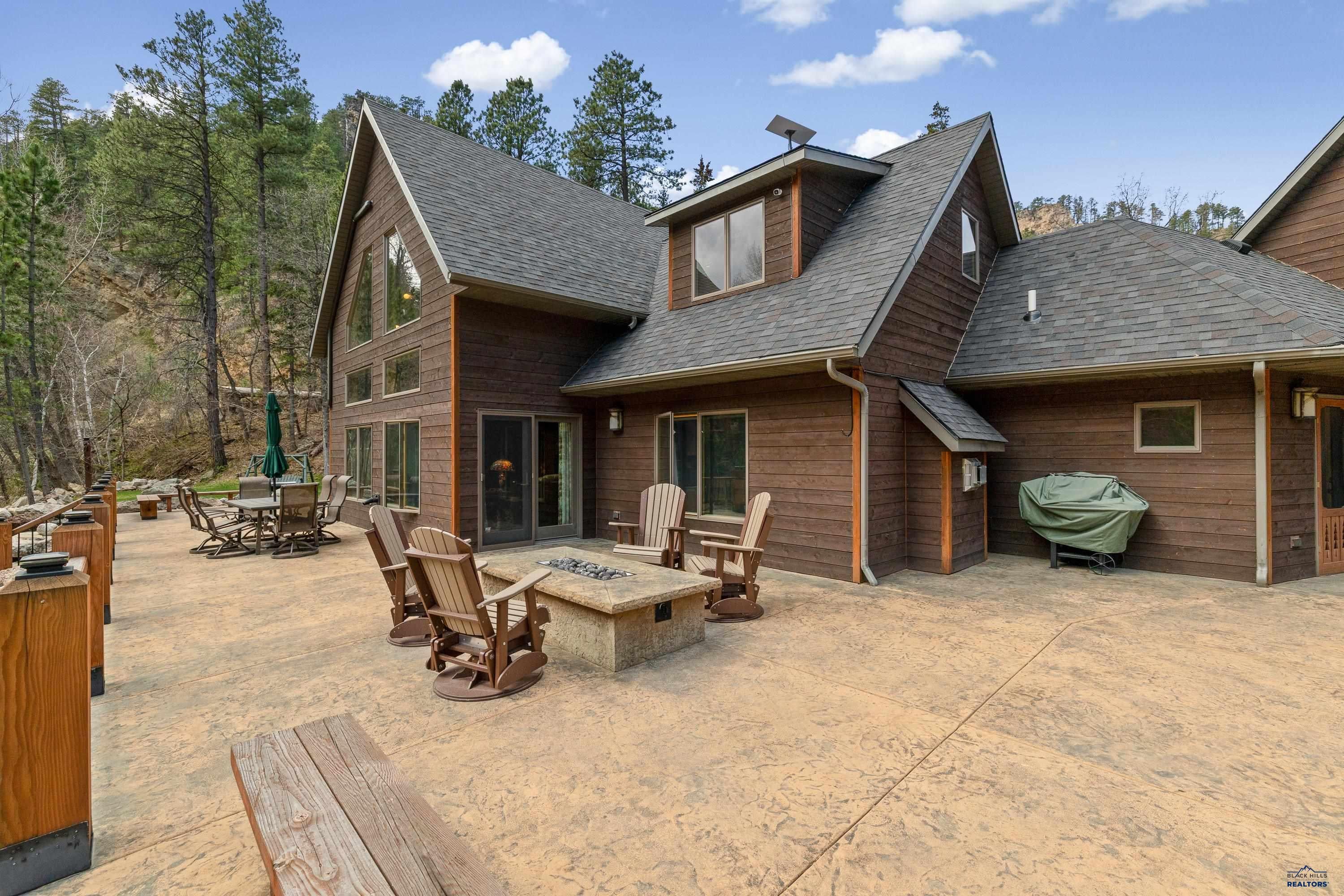 Absolute creekside perfection in Spearfish Canyon! These properties rarely become available and this is a true Black Hills treasure. This stunning and serene home offers peace and tranquility, yet has easy access to Spearfish which is just 5 minutes away. Rustic timber beams welcome you to the front porch. The soaring vaulted tongue and groove ceilings with its wall of windows perfectly frames the view of the canyon and creek. The master suite is located on the main floor and features a pellet stove, walk-in closet, jetted tub, and tile shower. Step onto the impressive patio areas from either the living room or the master bedroom and immerse yourself in the incredible beauty of Spearfish Canyon and Spearfish Creek. Just off the living room is the kitchen and dining area. The heated tile floors, cozy gas fireplace, gorgeous granite and tile backsplash, and built in desk area offers the perfect combination of function and beauty. The thoughtful layout offers two spacious bedrooms in the upper level, a full bathroom with heated tile floors, and plenty of storage closets. Access to the attached heated garage is through the spacious laundry room. There is a charming family room located above the garage. This property has maximized the beauty of the canyon with impressive landscaping and a built in firepit. This home was built with high quality materials and is in impeccable condition.
