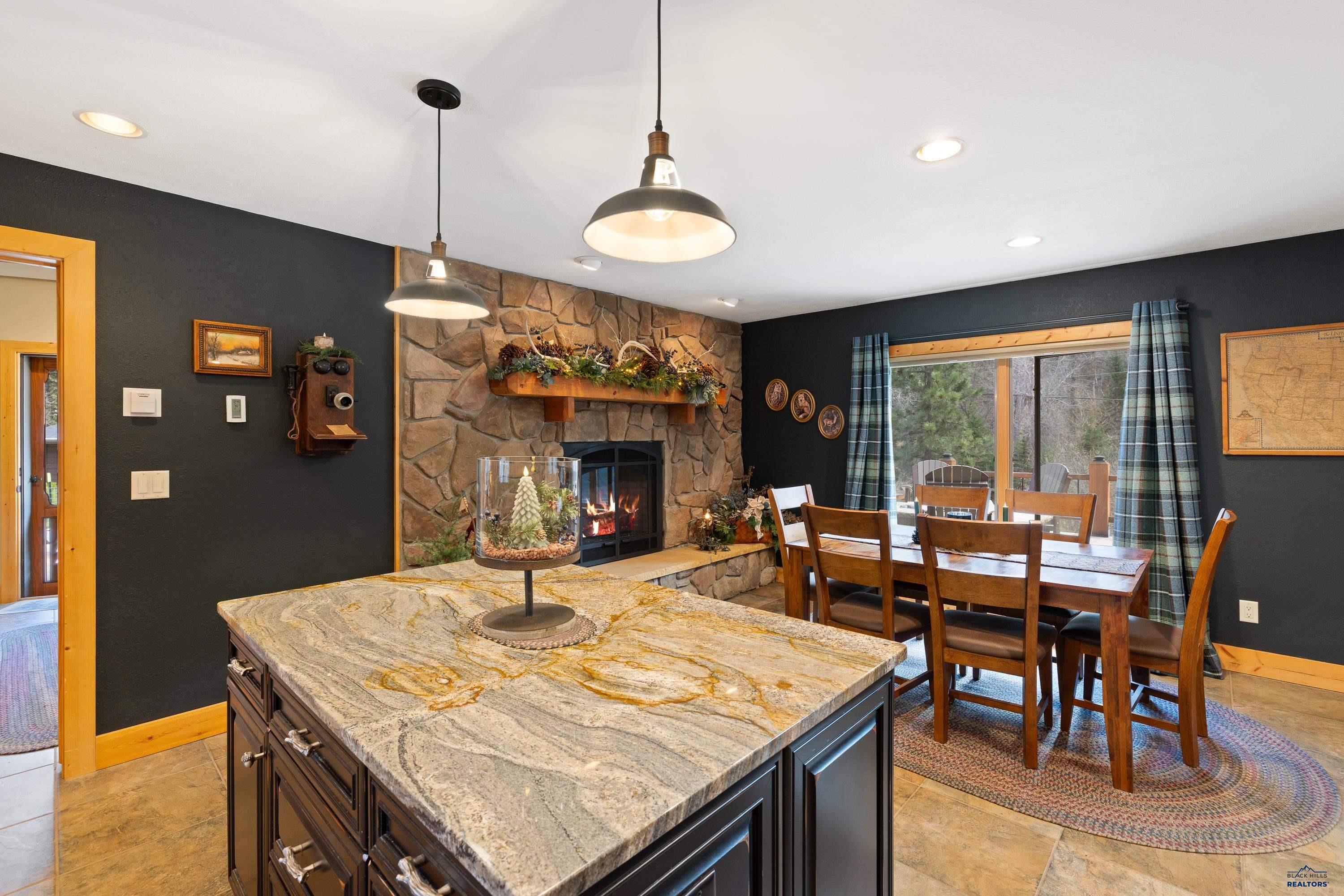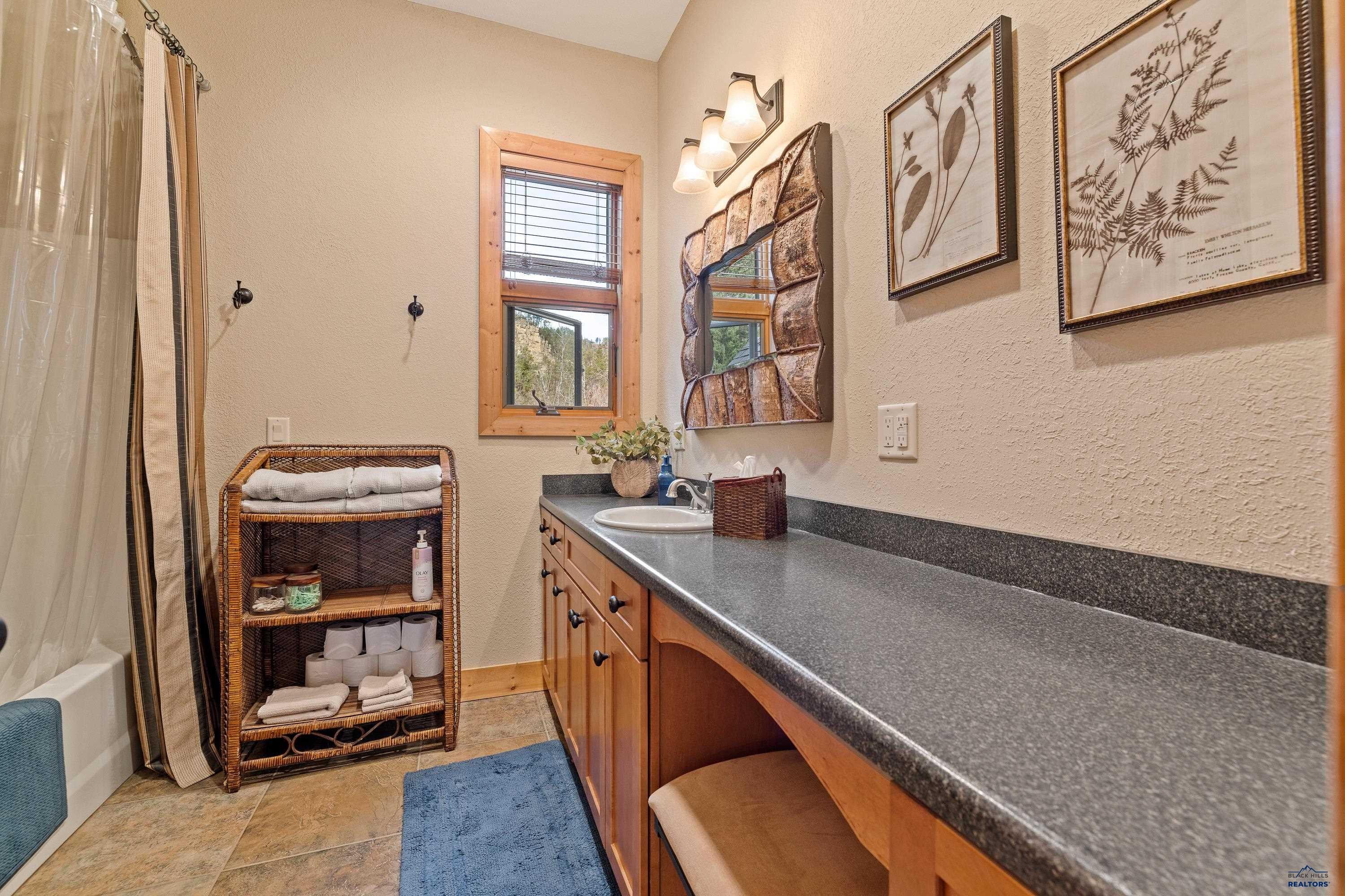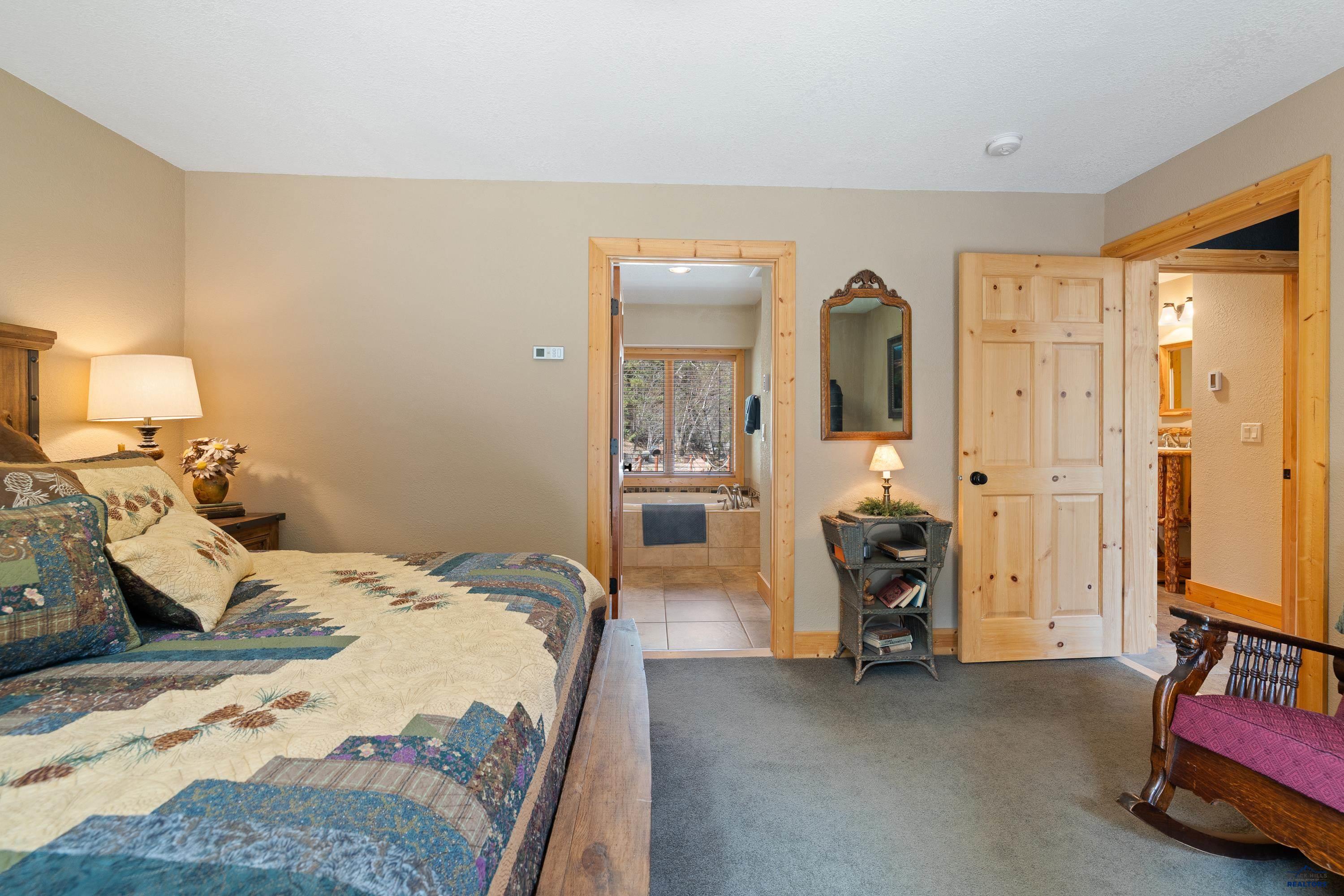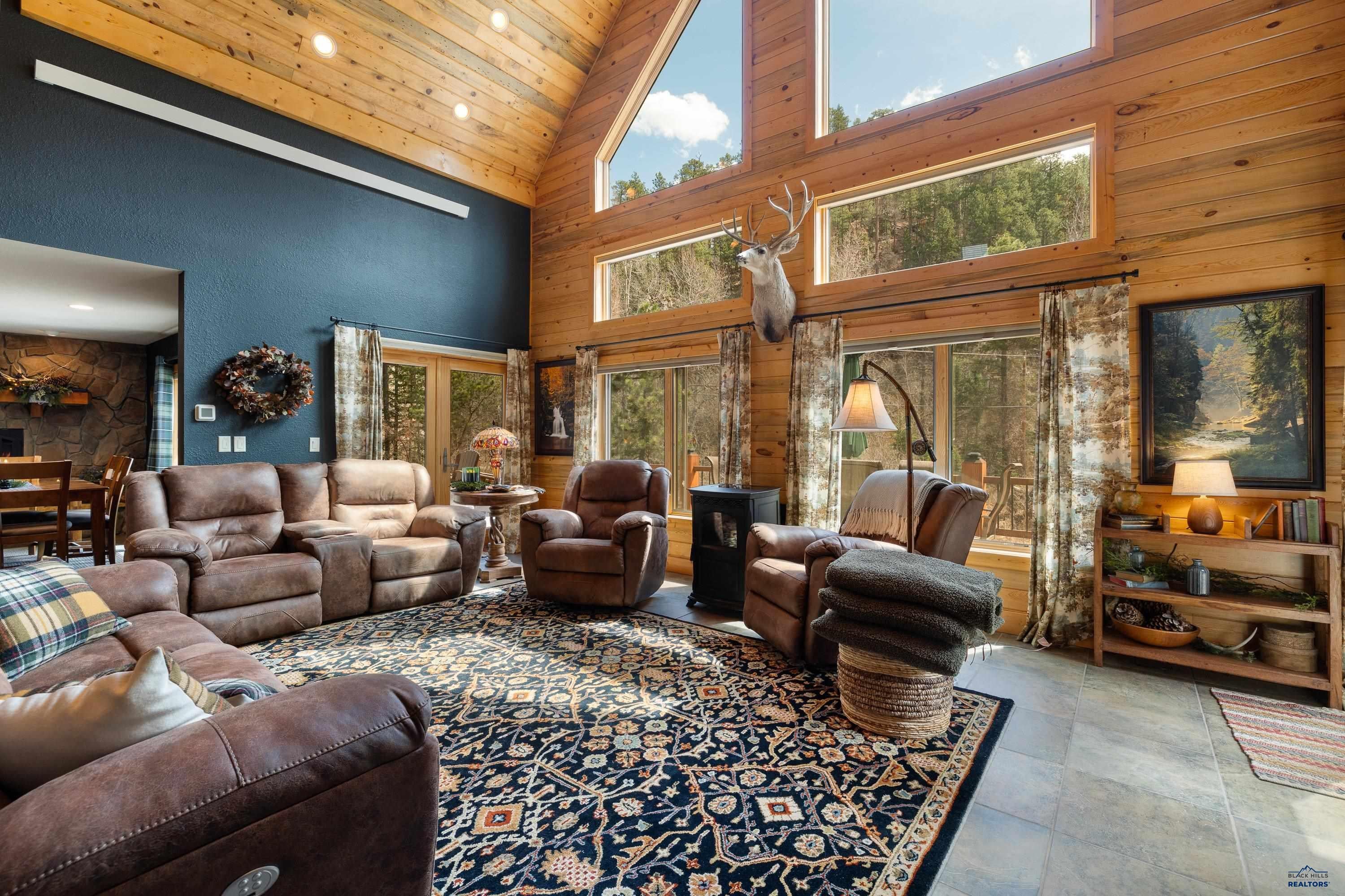 Absolute creekside perfection in Spearfish Canyon! These properties rarely become available and this is a true Black Hills treasure. This stunning and serene home offers peace and tranquility, yet has easy access to Spearfish which is just 5 minutes away. Rustic timber beams welcome you to the front porch. The soaring vaulted tongue and groove ceilings with its wall of windows perfectly frames the view of the canyon and creek. The master suite is located on the main floor and features a pellet stove, walk-in closet, jetted tub, and tile shower. Step onto the impressive patio areas from either the living room or the master bedroom and immerse yourself in the incredible beauty of Spearfish Canyon and Spearfish Creek. Just off the living room is the kitchen and dining area. The heated tile floors, cozy gas fireplace, gorgeous granite and tile backsplash, and built in desk area offers the perfect combination of function and beauty. The thoughtful layout offers two spacious bedrooms in the upper level, a full bathroom with heated tile floors, and plenty of storage closets. Access to the attached heated garage is through the spacious laundry room. There is a charming family room located above the garage. This property has maximized the beauty of the canyon with impressive landscaping and a built in firepit. This home was built with high quality materials and is in impeccable condition.