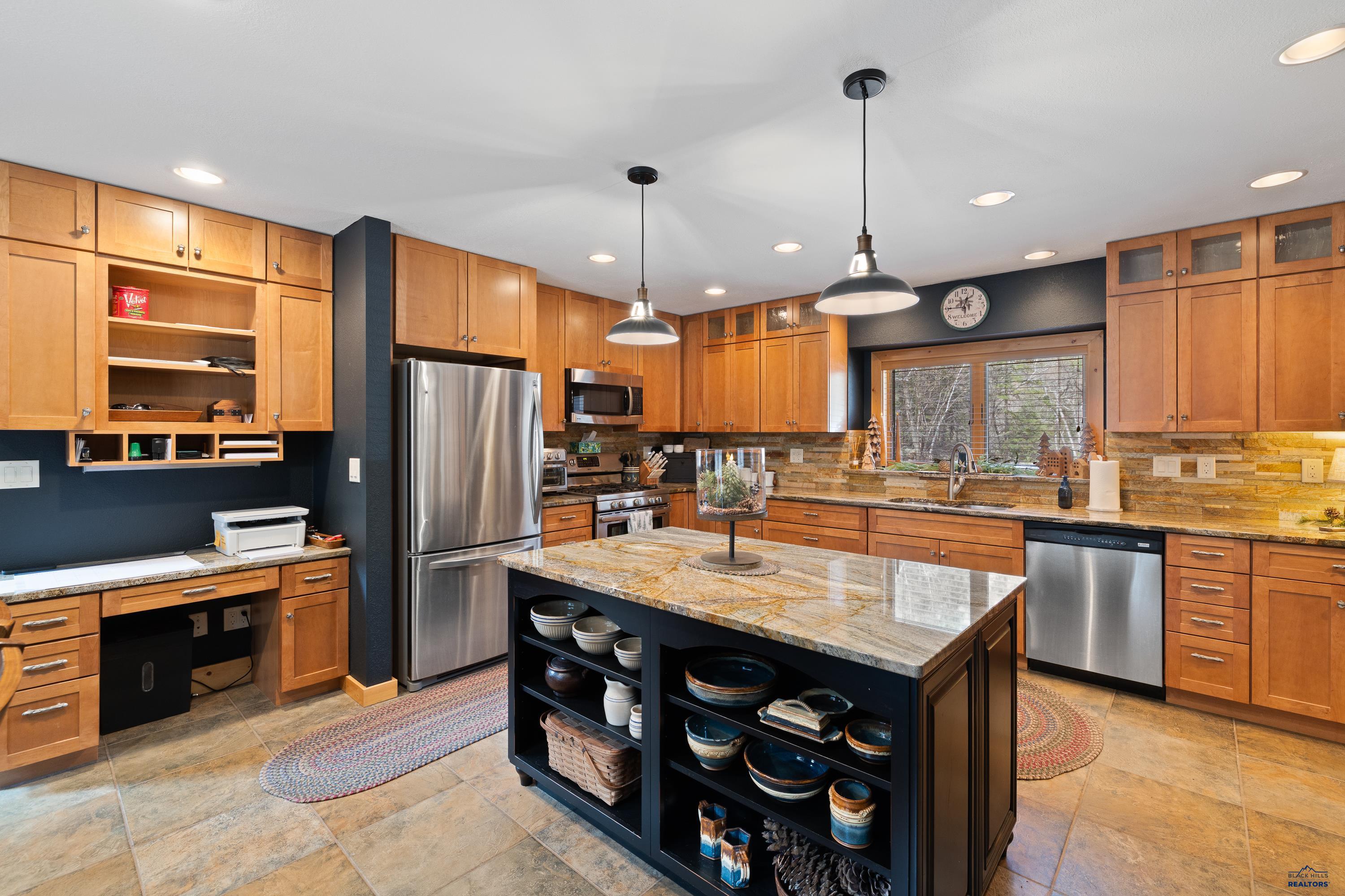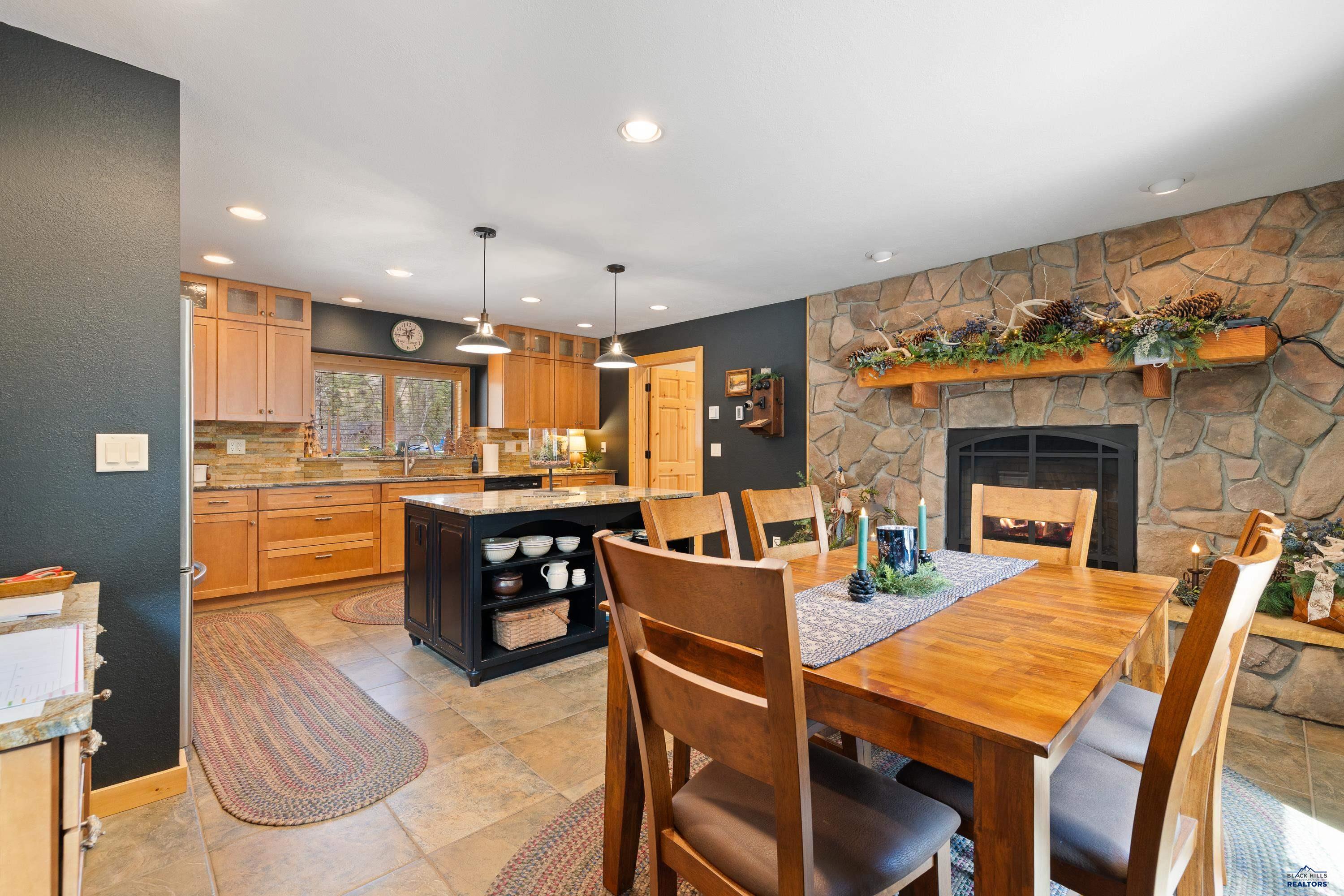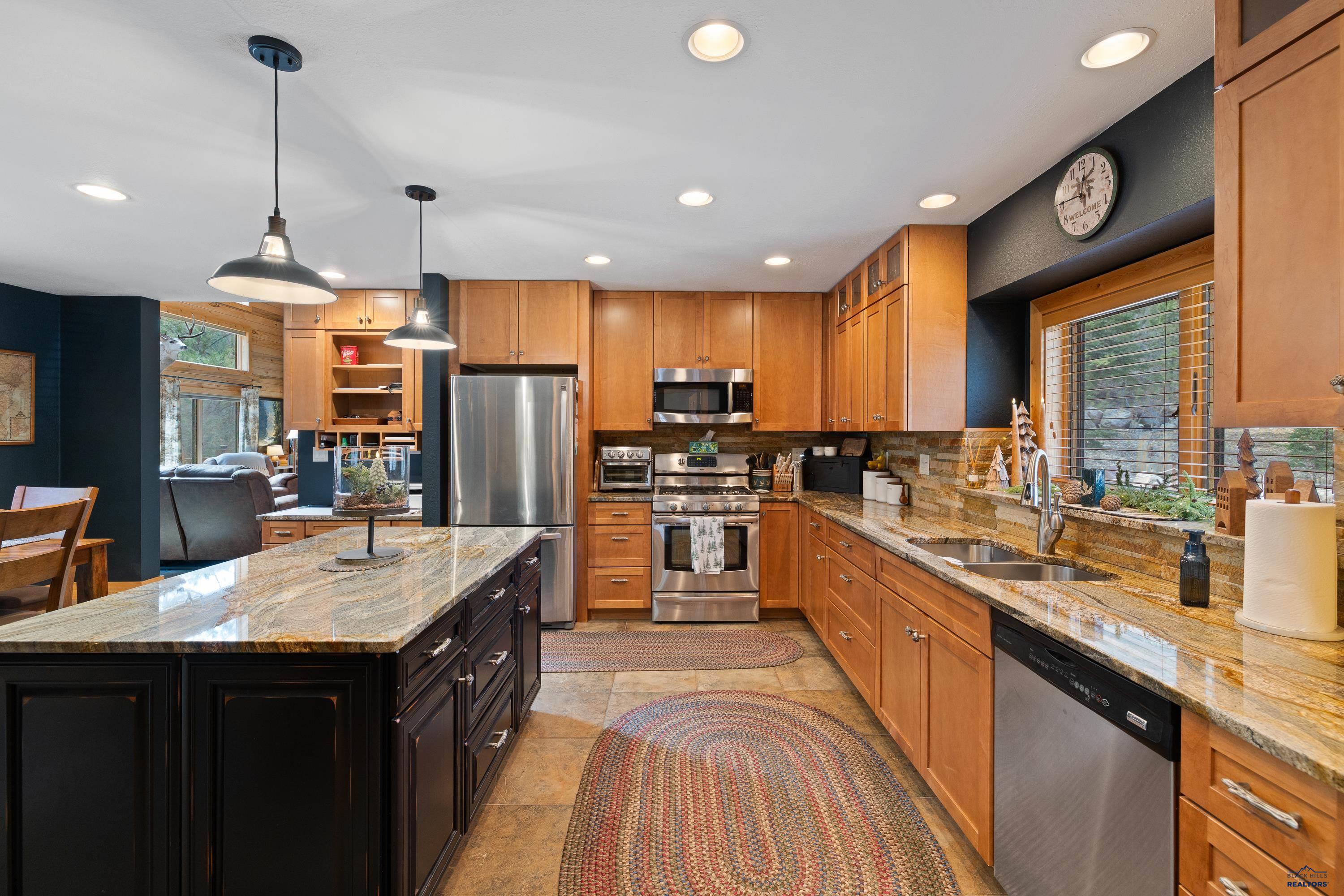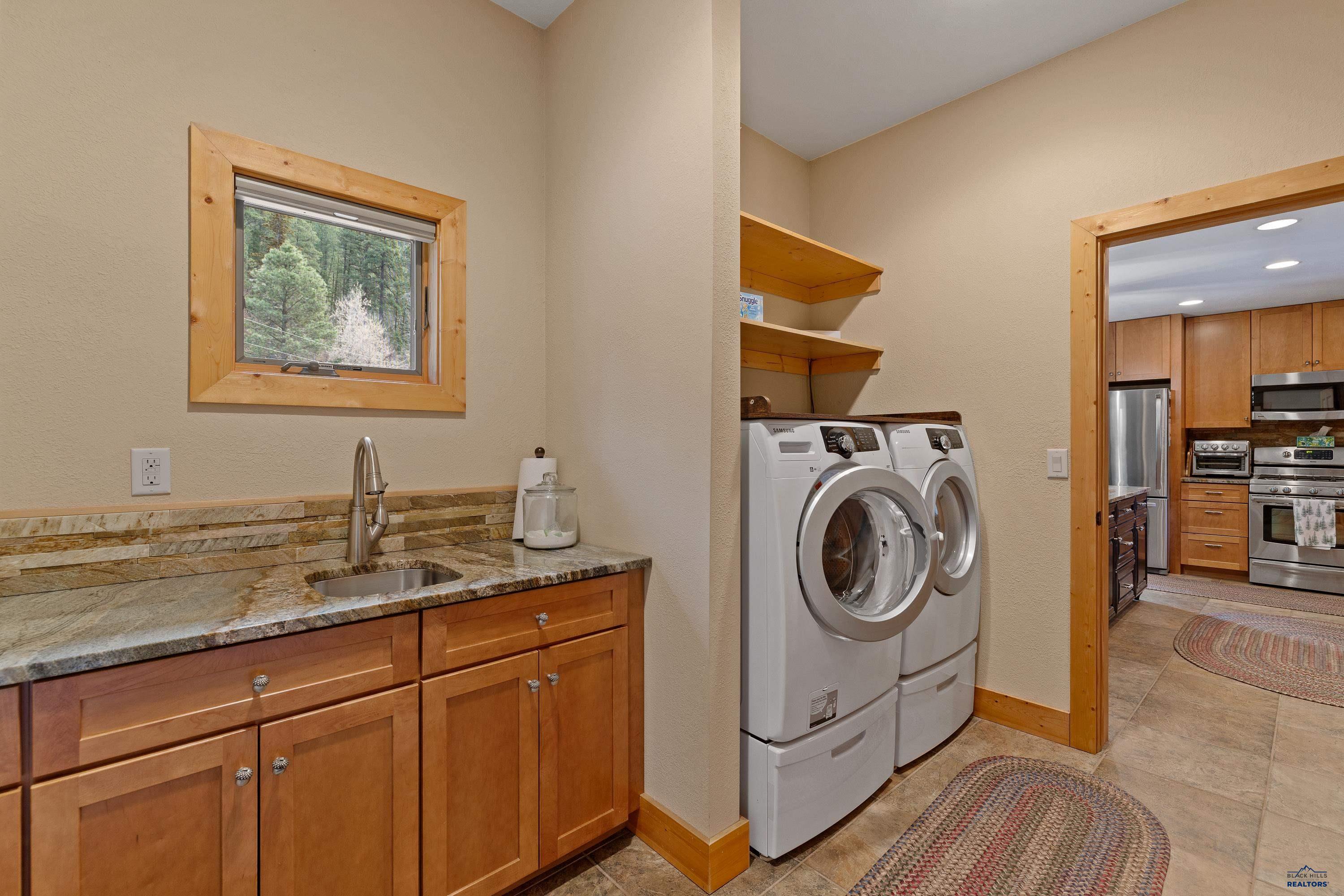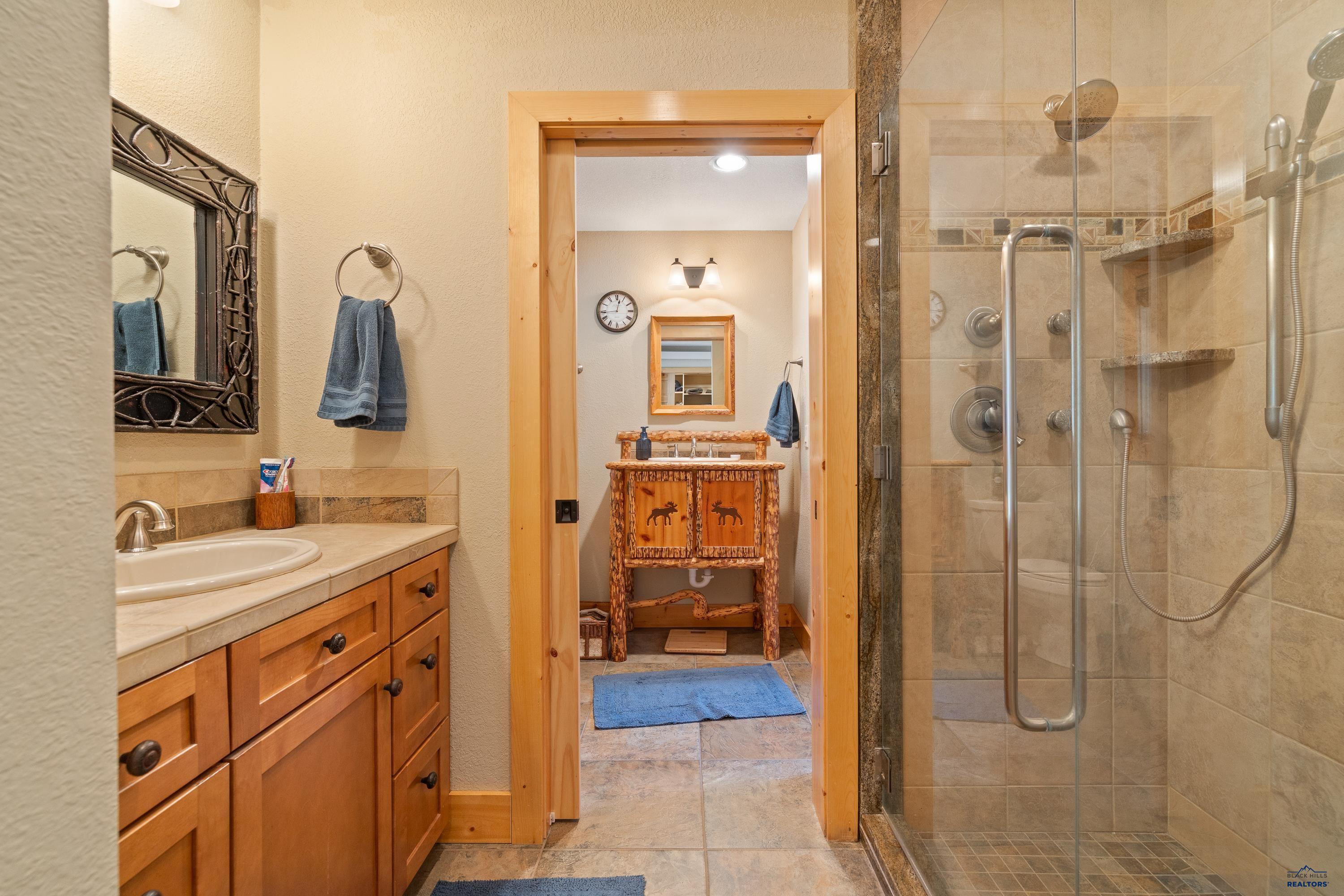 Absolute creekside perfection in Spearfish Canyon! These properties rarely become available and this is a true Black Hills treasure. This stunning and serene home offers peace and tranquility, yet has easy access to Spearfish which is just 5 minutes away. Rustic timber beams welcome you to the front porch. The soaring vaulted tongue and groove ceilings with its wall of windows perfectly frames the view of the canyon and creek. The master suite is located on the main floor and features a pellet stove, walk-in closet, jetted tub, and tile shower. Step onto the impressive patio areas from either the living room or the master bedroom and immerse yourself in the incredible beauty of Spearfish Canyon and Spearfish Creek. Just off the living room is the kitchen and dining area. The heated tile floors, cozy gas fireplace, gorgeous granite and tile backsplash, and built in desk area offers the perfect combination of function and beauty. The thoughtful layout offers two spacious bedrooms in the upper level, a full bathroom with heated tile floors, and plenty of storage closets. Access to the attached heated garage is through the spacious laundry room. There is a charming family room located above the garage. This property has maximized the beauty of the canyon with impressive landscaping and a built in firepit. This home was built with high quality materials and is in impeccable condition.