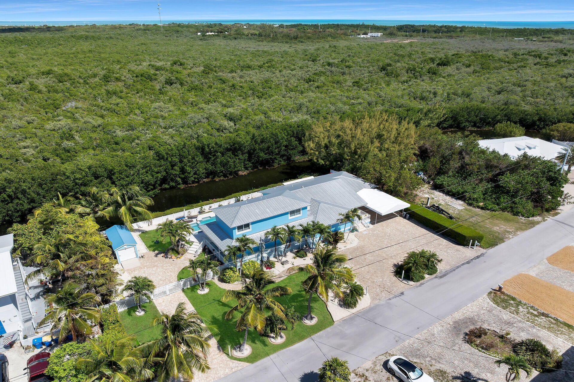 Experience Coastal Luxury and privacy with this exceptional 5 bedroom, 3 bath home on two lots!!Over 2900 sq. ft. of thoughtfully designed living space. Constructed of concrete with impact windows and doors and recently painted inside and out, this home blends style, safety, and comfort.