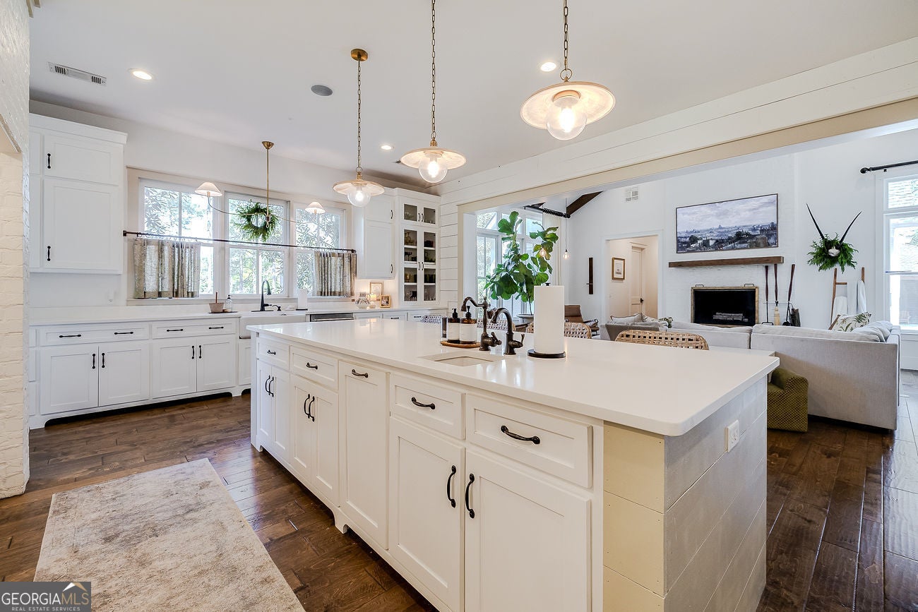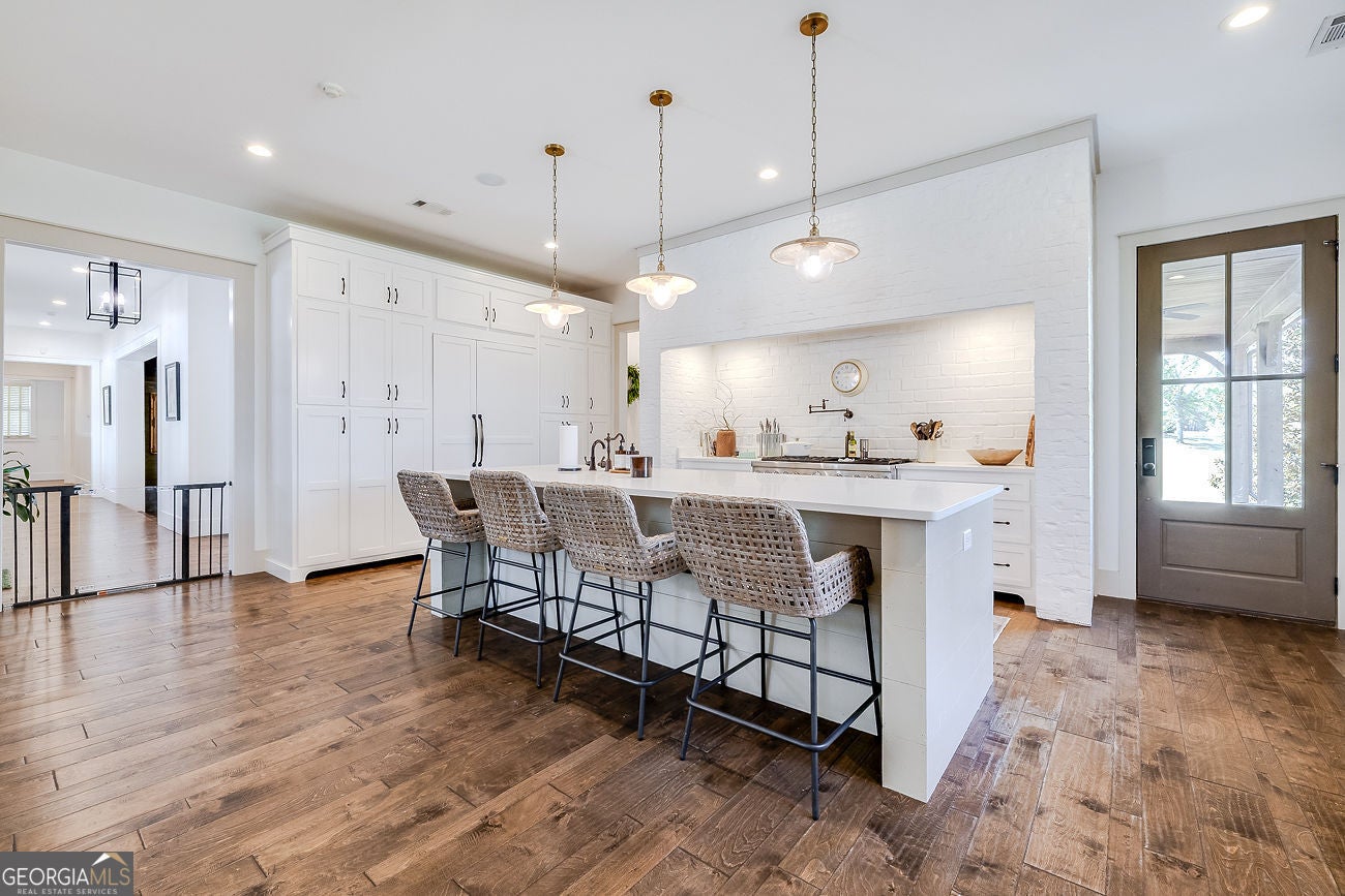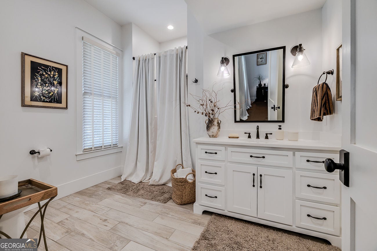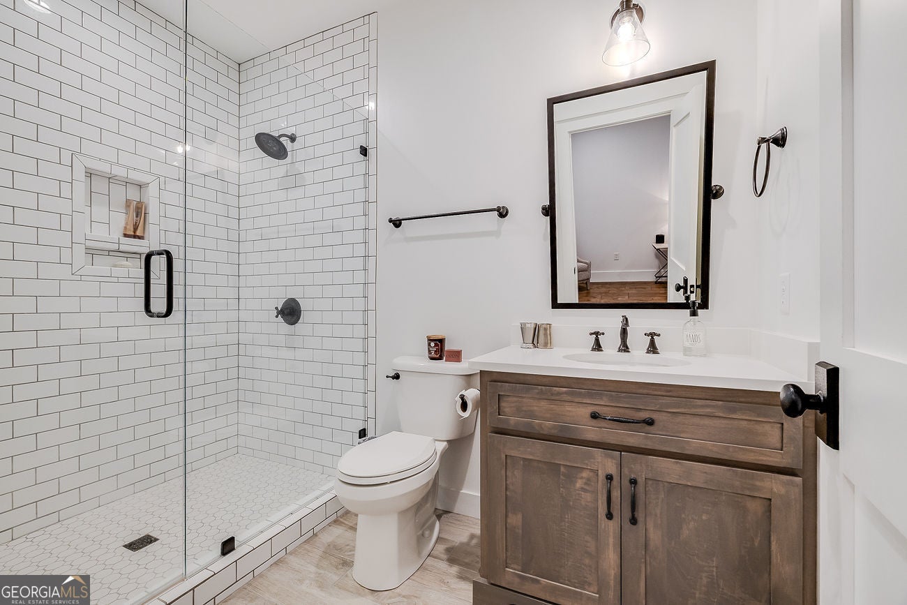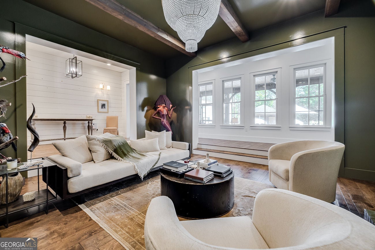 Once in a lifetime. That phrase gets overusedbut not here.Set on 4.55 acres of flat, fully usable, private land, this extraordinary estate delivers the rare combination of total seclusion and everyday conveniencejust minutes from Matt Hwy, Publix, dining, and 10 minutes to Cumming City Center.**Completely reimagined just one year ago by Cherry Thorne Interiors**, this home was taken down to the studs and rebuilt with uncompromising attention to detail. The result is a refined, magazine-worthy residence that blends warmth, function, and elevated design at every turn.The main level is nothing short of stunninganchored by wide-plank, light oak hardwoods and a bright, open-concept layout. The kitchen is a true showpiece, featuring custom cabinetry, high-end appliances, statement lighting, and an oversized island designed for gathering. A scullery pantry straight out of HGTV dreams adds both beauty and function, keeping everything effortlessly tucked away.Flow seamlessly from the main living spaces to the screened porch and pool, creating the ultimate indoor-outdoor lifestyle. A thoughtfully designed friends entry with direct pool access makes everyday living and entertaining effortless.The primary suite on main is a private retreat, complemented by an additional main-level bedroom with ensuite bath, plus a stylish powder room for guests.Upstairs, youll find a spacious bedroom, full bath, and a versatile loftperfect for a homework space, office, or teen hangout.The terrace level is truly next-level. Designed for both entertaining and extended stays, it features a full second kitchen, rec room, dedicated pool table space, a media room for Friday night movies, two bedrooms, and a large full bathplus separate entrance and additional driveway, making it ideal for an in-law suite or long-term guests.Beyond the home, the property continues to impress with a detached oversized 3-car garage with finished office/bonus space above and private entry, a covered RV parking with its own drive, expansive parking options, Firepit, garden beds, and mature landscaping. The huge wraparound front porch that invites you to slow down and stay awhile and connects to the Dining Room for indoor/outdoor entertaining. Zoned for North Forsyth schools, this property offers the rare ability to feel completely removedwhile being just minutes from everything.This isnt just a homeits a lifestyle, a retreat, and an opportunity that rarely comes to market! Dont Miss!