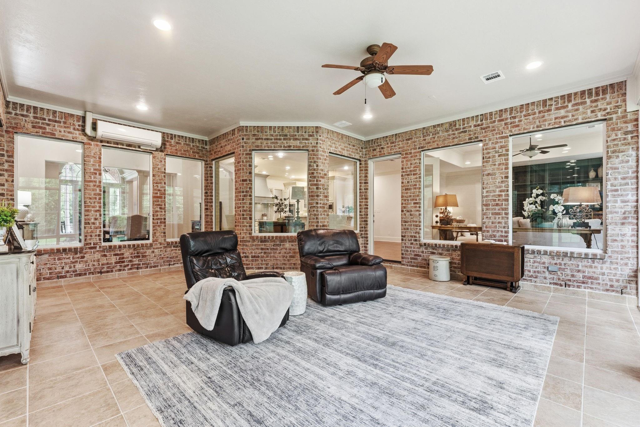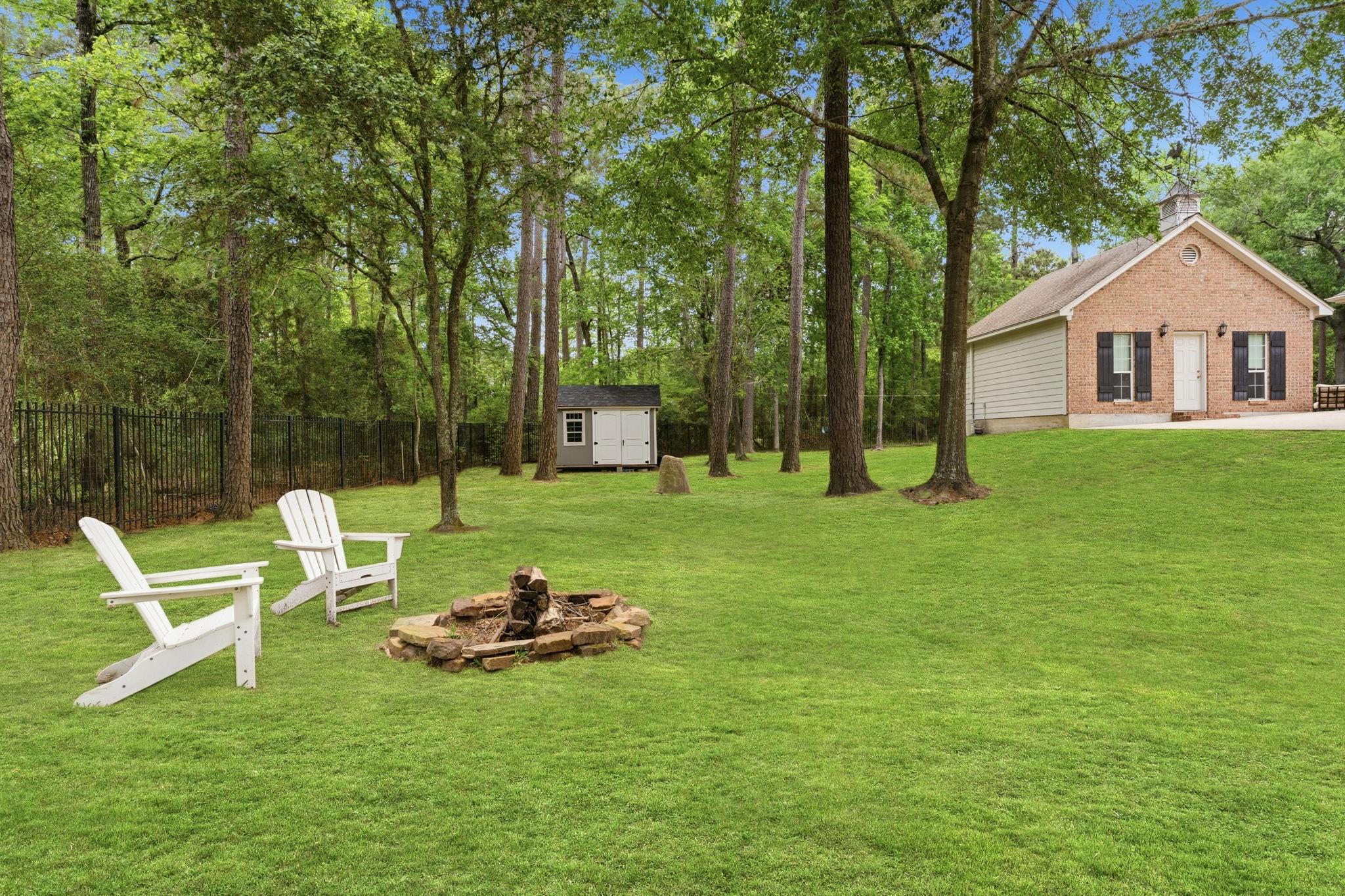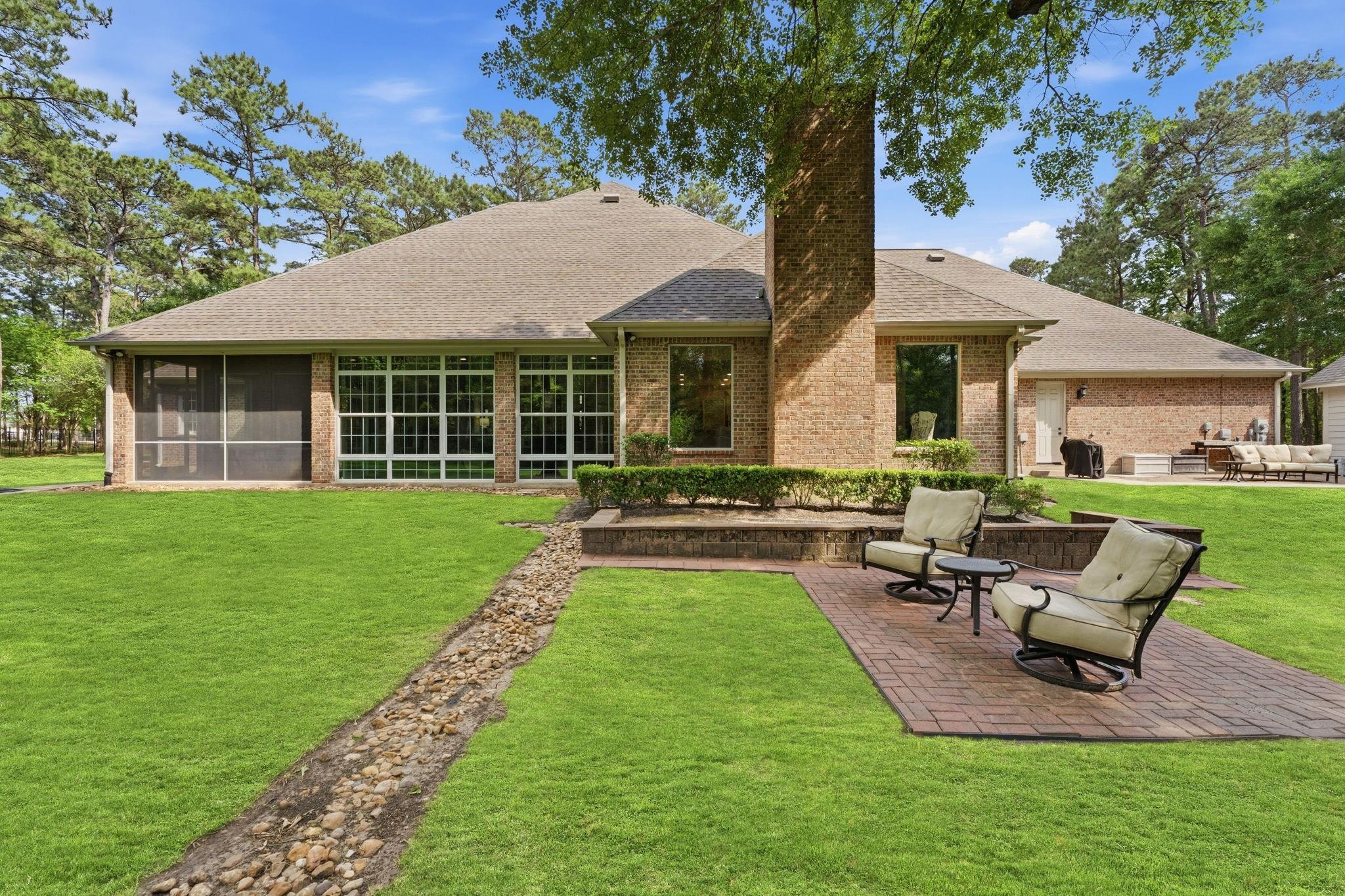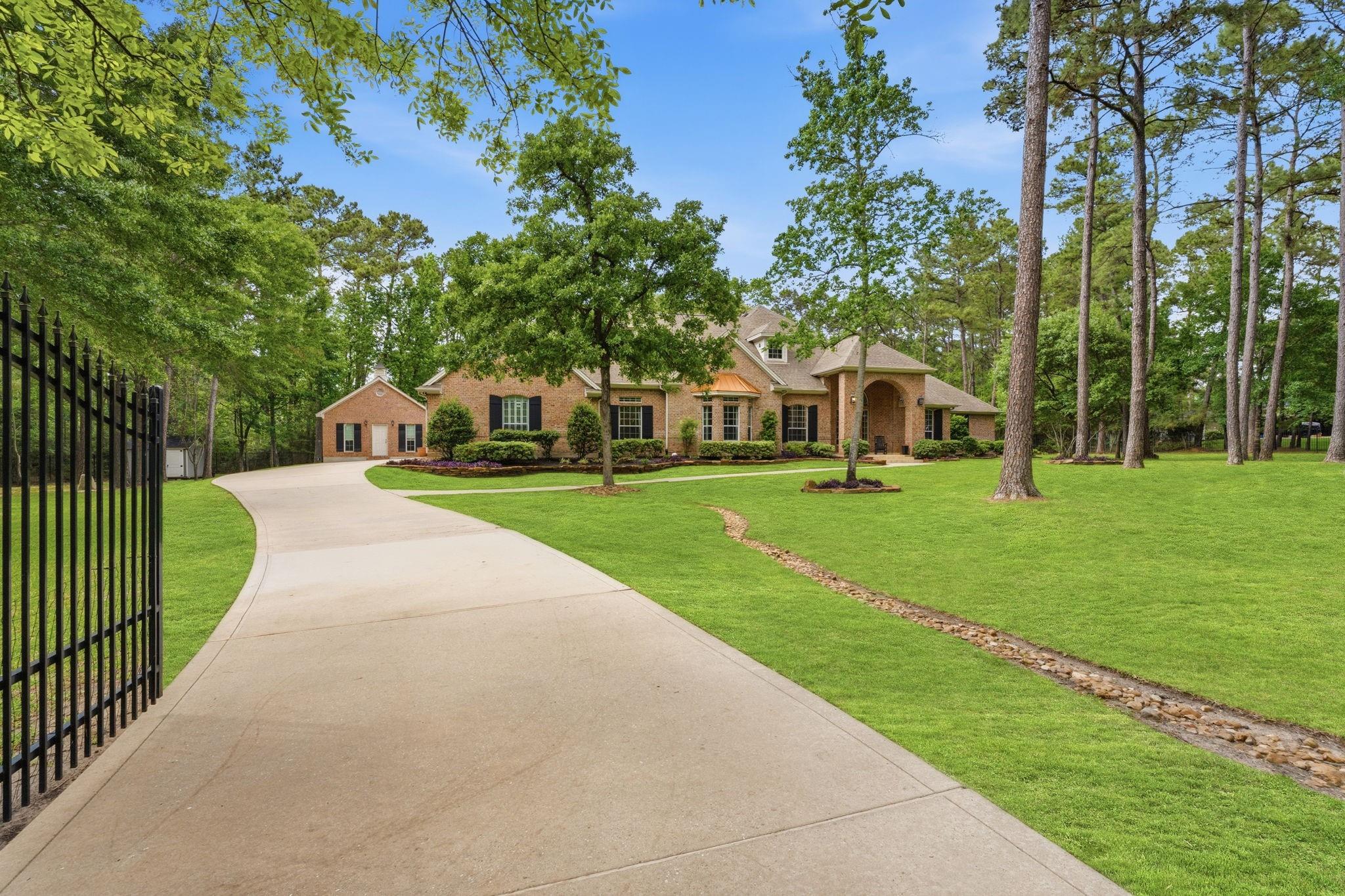 GORGEOUS sprawling 1-story situated on 2 beautiful acres, fully enclosed w/ a 6 ft wrought iron fence offering privacy & peace of mind w/no back neighbors! Step inside to find real wood floors, oversized windows, custom built ins, and a lay-out that flows effortlessly! The Kitchen opens to the Living & Dining areas--perfect for gathering & entertaining while Bedrooms & Living spaces remain spacious & airy. Natural light is beyond abundant throughout! Enjoy seeing the wildlife from your heated & cooled Sunroom (not included in SF) offering a serene space to relax & enjoy the views year-round. This home has been meticulously cared for & it shows! The Primary Suite is a true retreat w/ shiplap walls, a freestanding soaking tub & separate shower. Charming detached school house with its own mini-split provides flexibility for a creative studio, or easily converted into a guest house with the water well located just behind! Heated & cooled TX basement for maximum storage! DONT MISS IT!