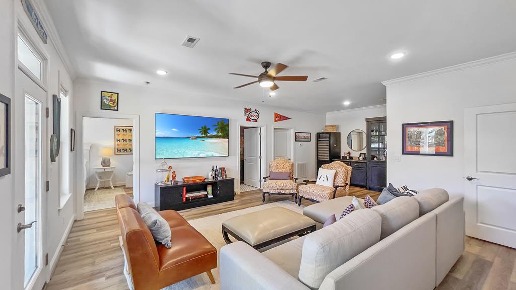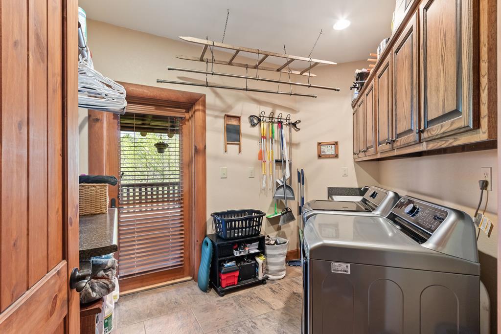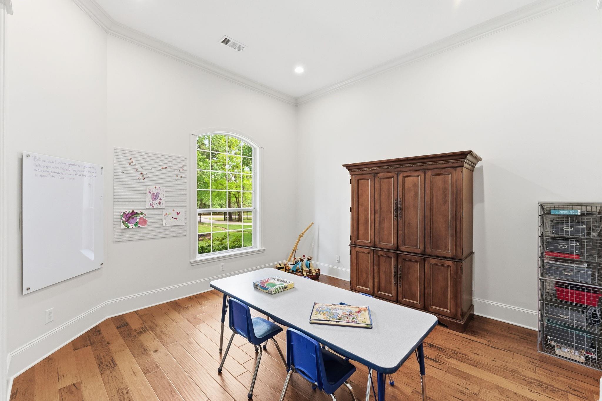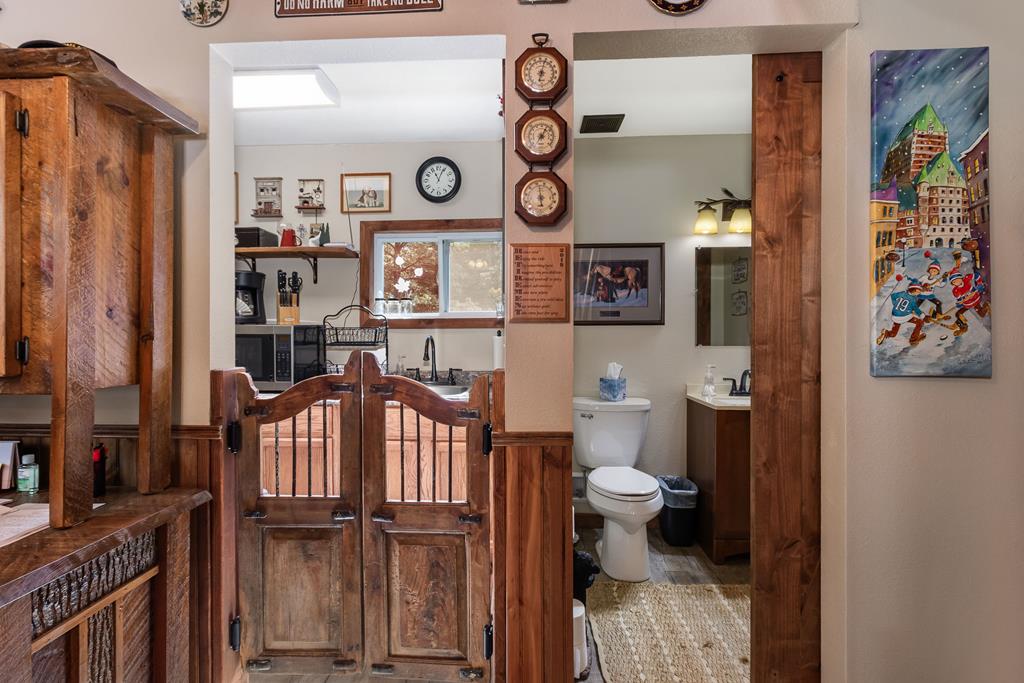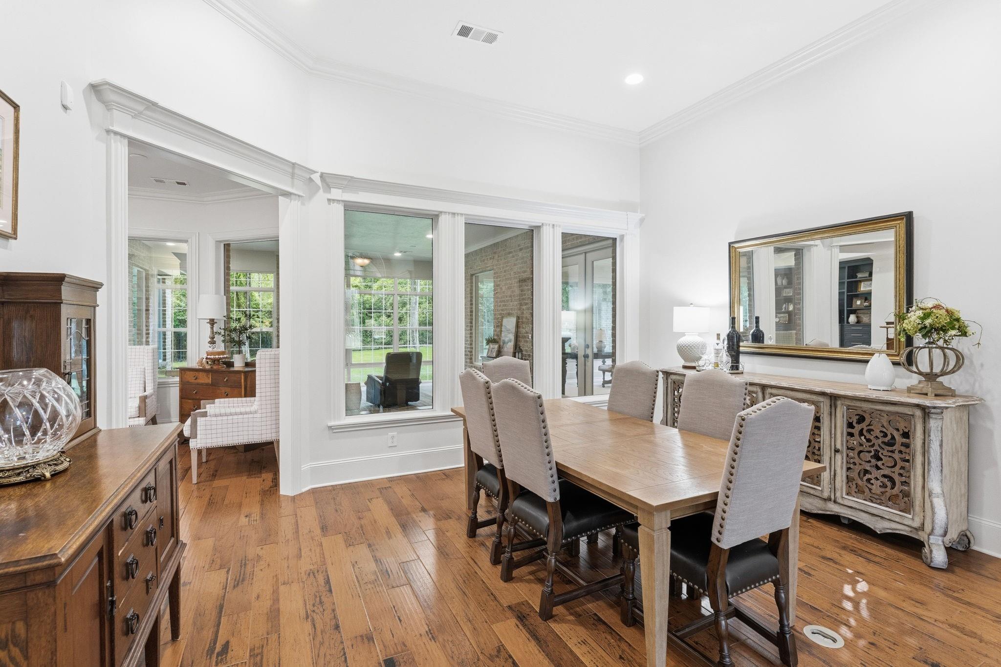 GORGEOUS sprawling 1-story situated on 2 beautiful acres, fully enclosed w/ a 6 ft wrought iron fence offering privacy & peace of mind w/no back neighbors! Step inside to find real wood floors, oversized windows, custom built ins, and a lay-out that flows effortlessly! The Kitchen opens to the Living & Dining areas--perfect for gathering & entertaining while Bedrooms & Living spaces remain spacious & airy. Natural light is beyond abundant throughout! Enjoy seeing the wildlife from your heated & cooled Sunroom (not included in SF) offering a serene space to relax & enjoy the views year-round. This home has been meticulously cared for & it shows! The Primary Suite is a true retreat w/ shiplap walls, a freestanding soaking tub & separate shower. Charming detached school house with its own mini-split provides flexibility for a creative studio, or easily converted into a guest house with the water well located just behind! Heated & cooled TX basement for maximum storage! DONT MISS IT!