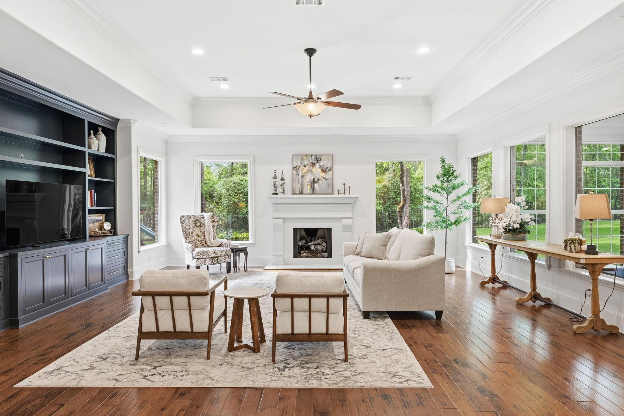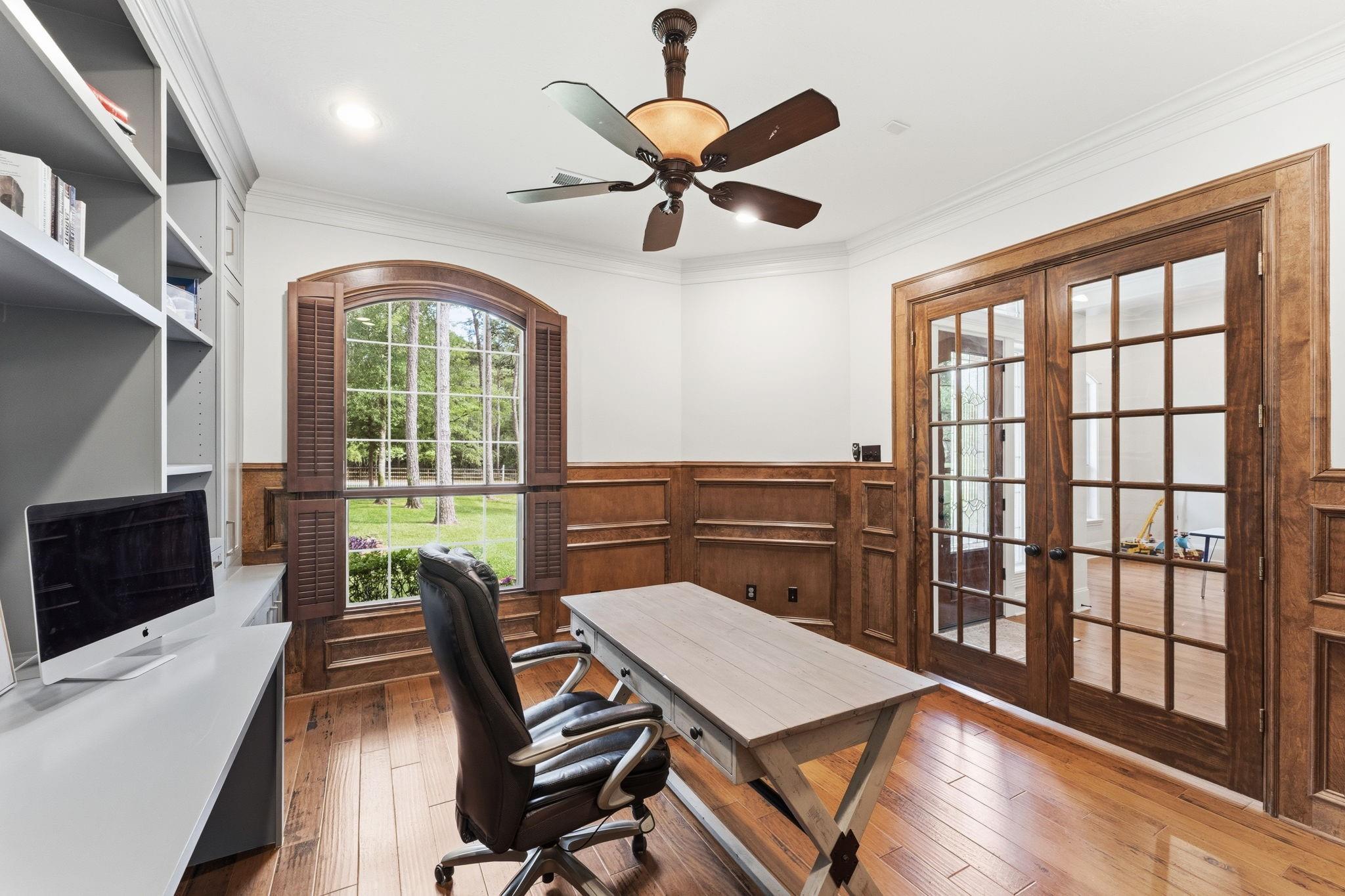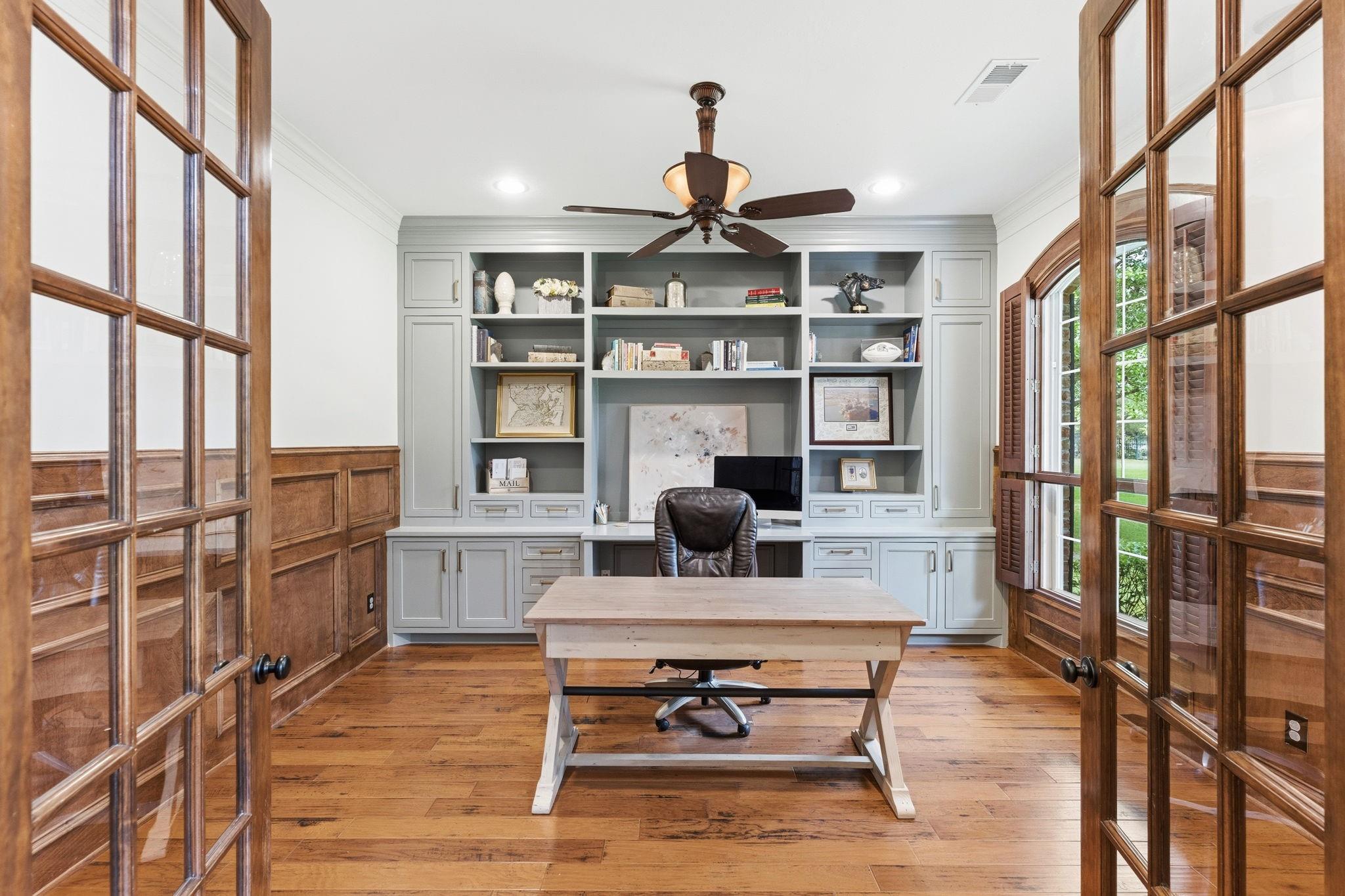 GORGEOUS sprawling 1-story situated on 2 beautiful acres, fully enclosed w/ a 6 ft wrought iron fence offering privacy & peace of mind w/no back neighbors! Step inside to find real wood floors, oversized windows, custom built ins,