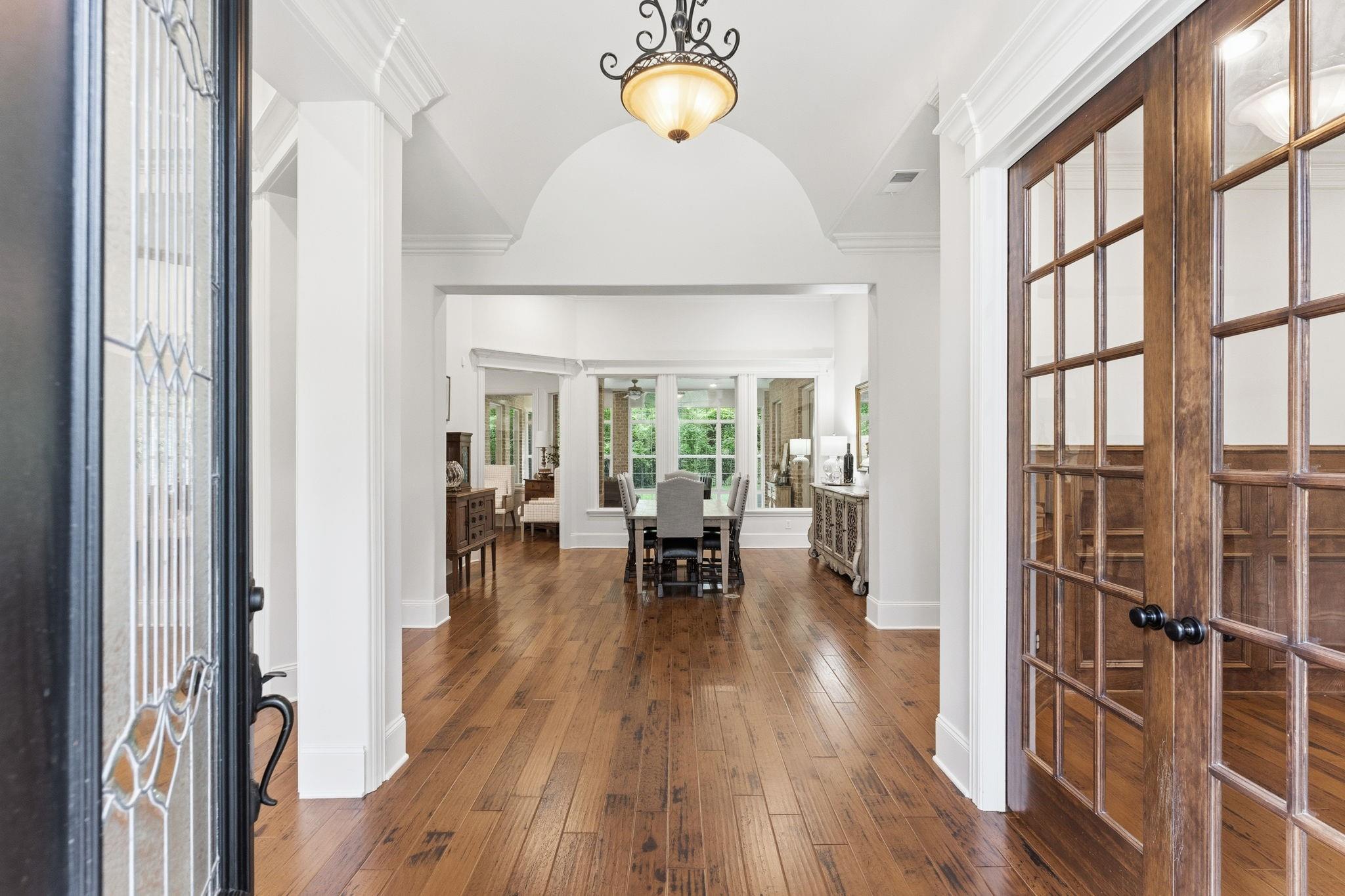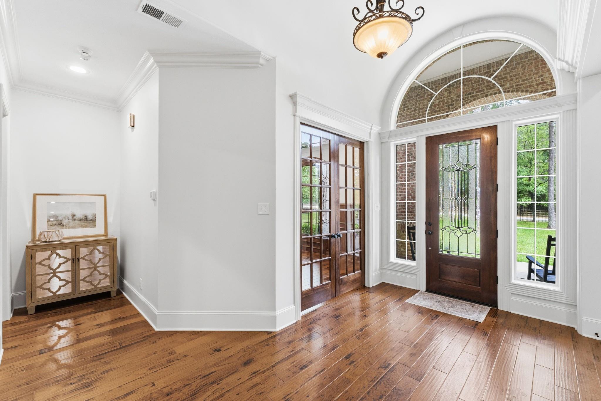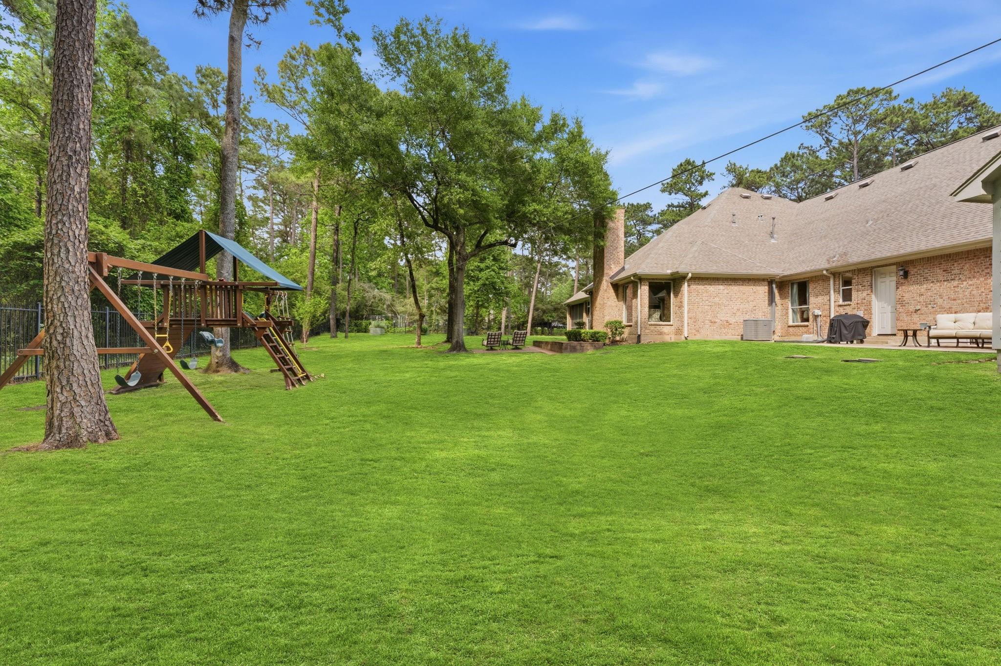 GORGEOUS sprawling 1-story situated on 2 beautiful acres, fully enclosed w/ a 6 ft wrought iron fence offering privacy & peace of mind w/no back neighbors! Step inside to find real wood floors, oversized windows, custom built ins,