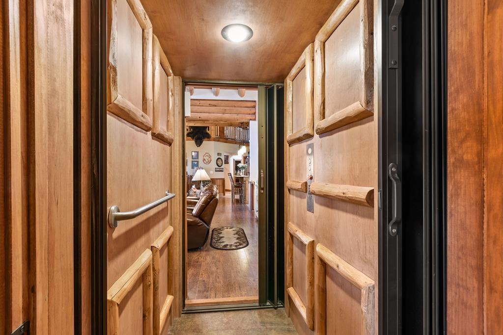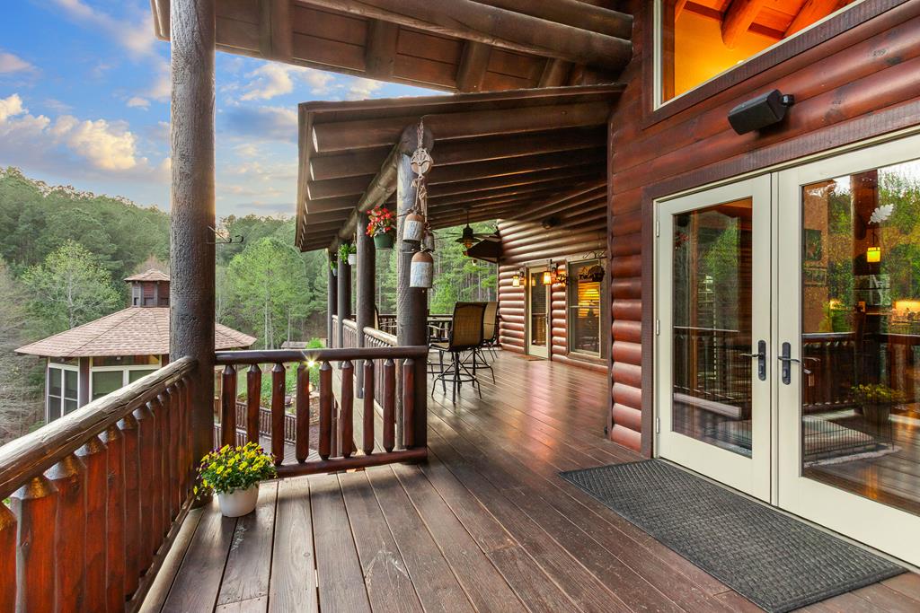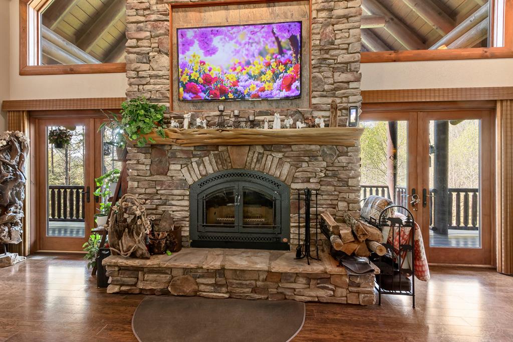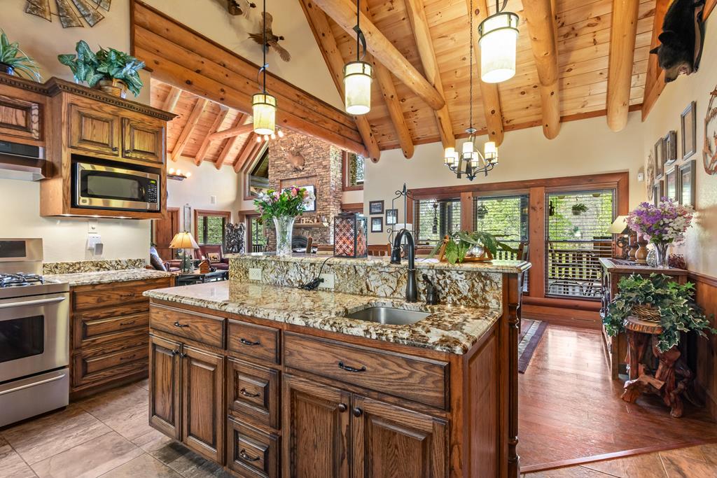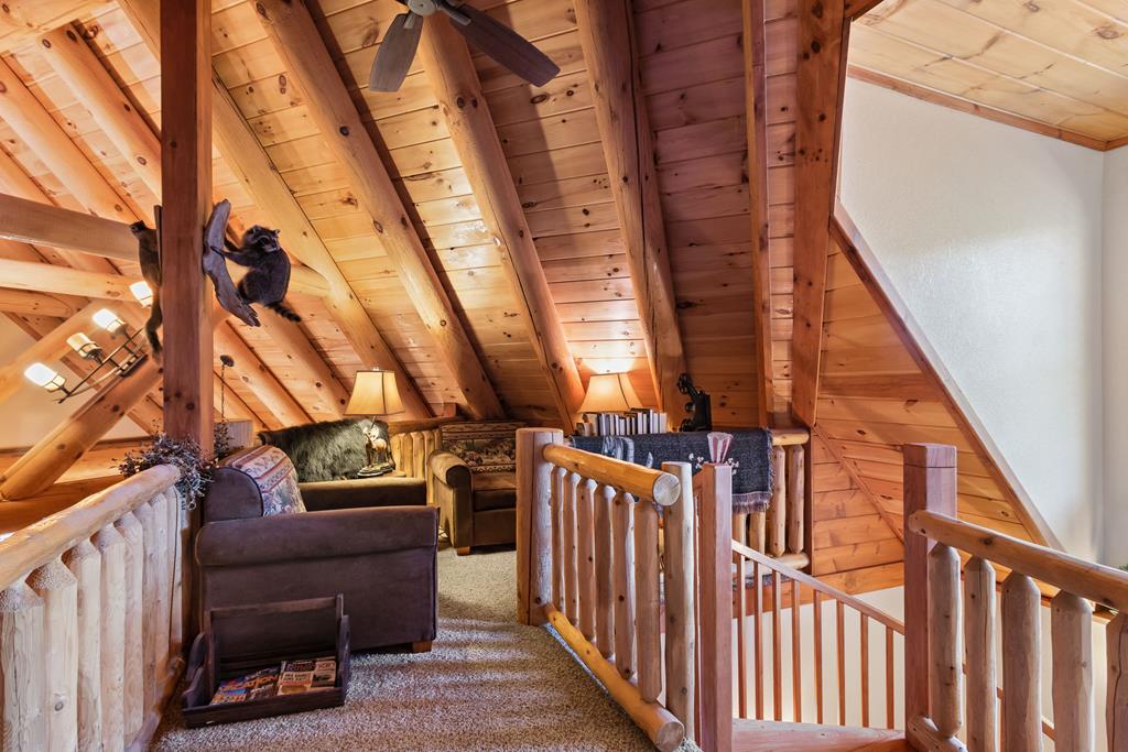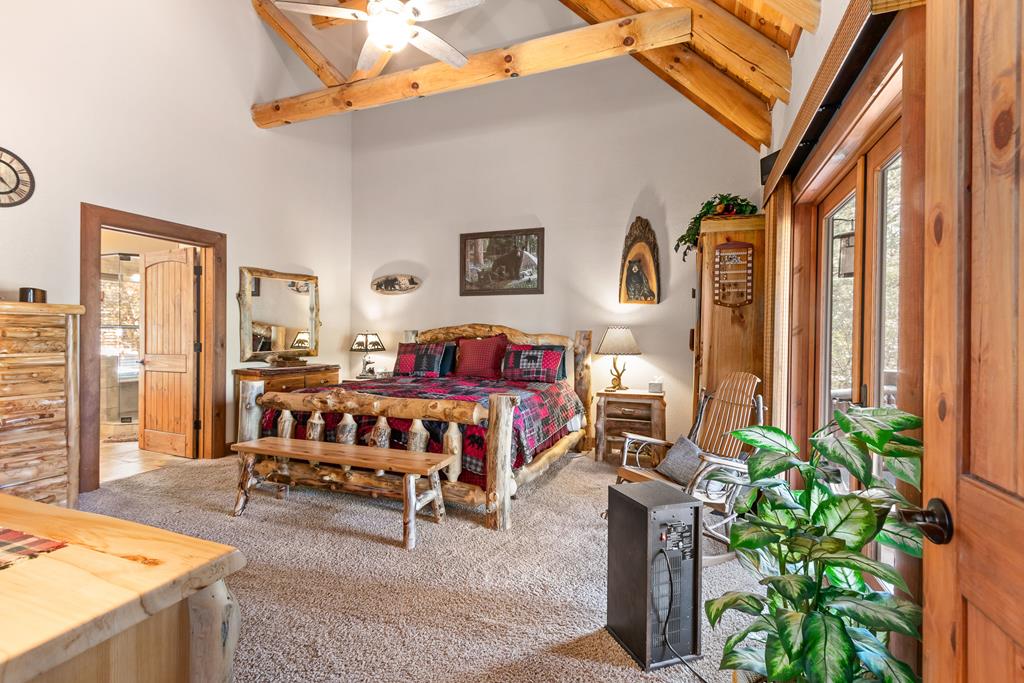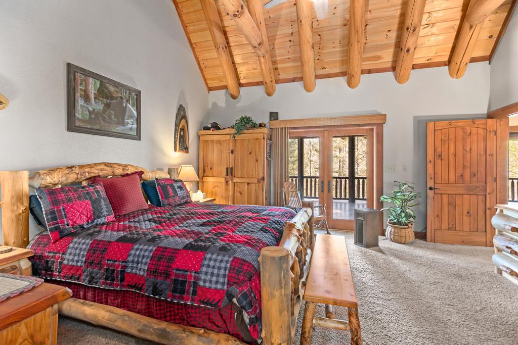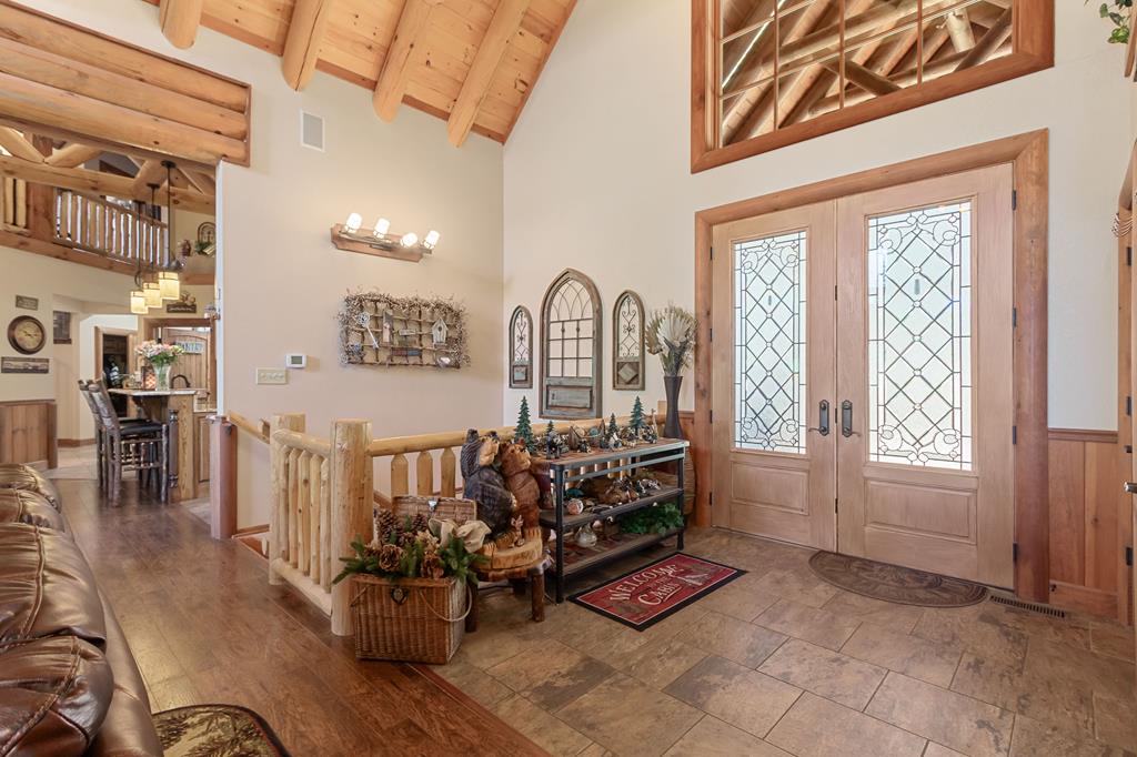 EXPERIENCE LUXURY MOUNTAIN ESTATE LIVING AT ITS FINEST on just over four private, wooded acres. This exceptional log and stone home blends rustic elegance with high-end custom craftsmanship, offering 4 bedrooms, 3 full bathrooms, 2 half bathrooms, and multiple versatile bonus rooms.From the moment you enter, youre greeted by soaring vaulted ceilings with exposed beams and impeccable attention to detail at every turn. The home features TWO stunning floor-to-ceiling stacked stone fireplaces, creating warm and inviting gathering spaces. A private elevator provides convenience across levels, while a dedicated media room and integrated security system add both comfort and peace of mind. Outdoors, the estate is thoughtfully equipped with an impressive array of outbuildings, including a highly customized two-story office ideal for remote work or creative pursuits, an RV carport complete with a dump station, a 2-bay garage, and an additional 3-bay garage offering abundant storage and workspace. A greenhouse, pump house, and a beautifully crafted log gazebo housing an 8-person hot tub further elevate the propertys appeal. In addition is a fully equipped outdoor kitchen, a cozy fire pit area, and a garden complete with planter boxes and mature fruit treesperfect for both relaxation and sustainable living. This remarkable estate offers too many features to fully capturecomprehensive documentation is available detailing the extensive upgrades and amenities. A rare opportunity to own a truly distinctive mountain retreat.