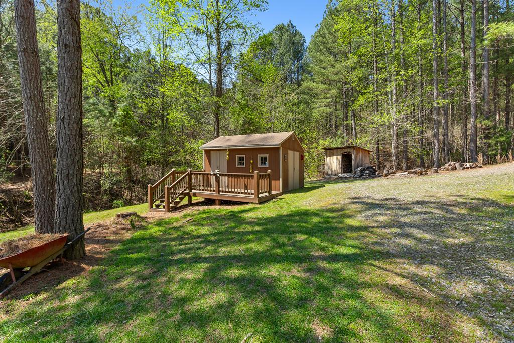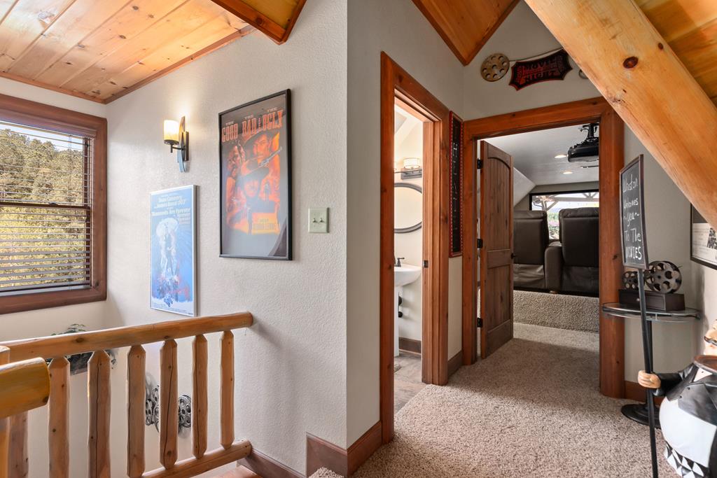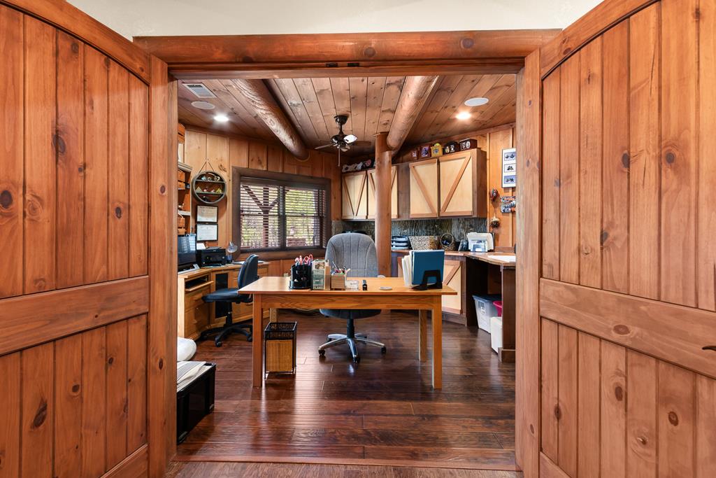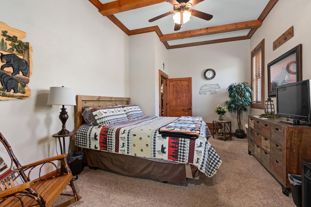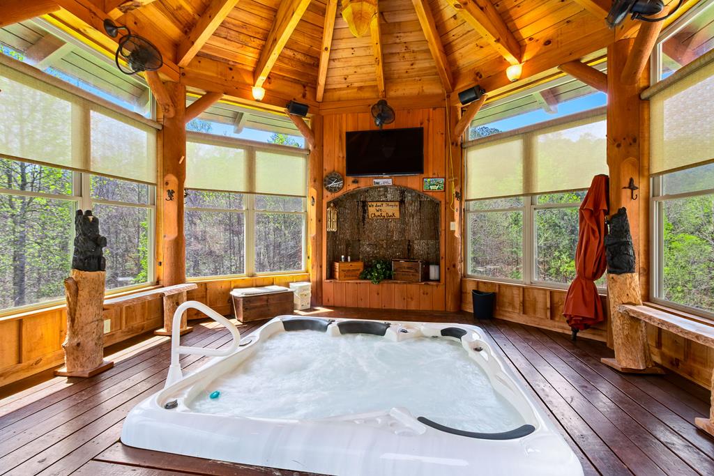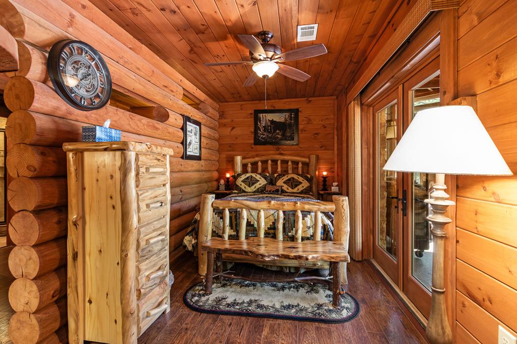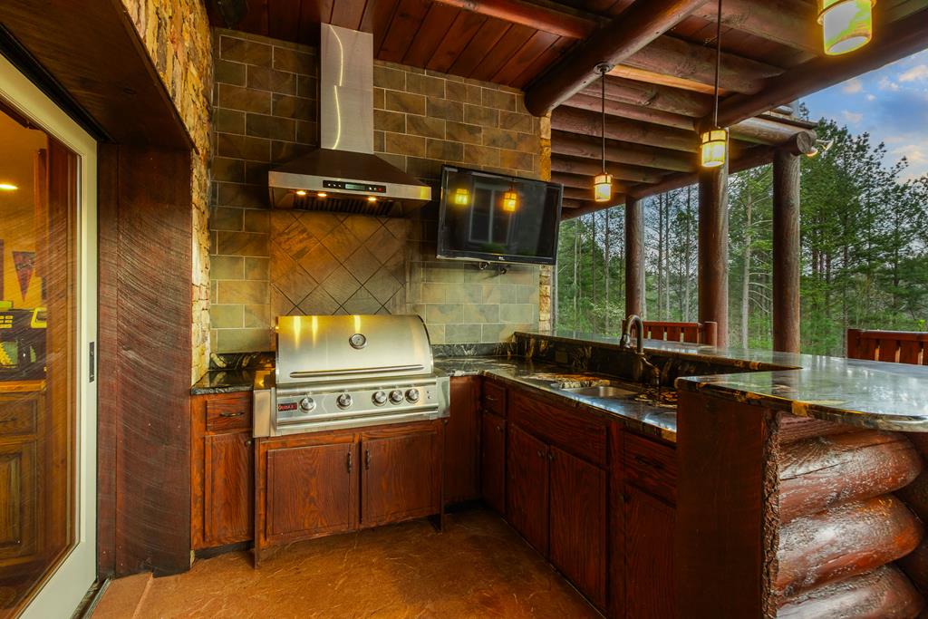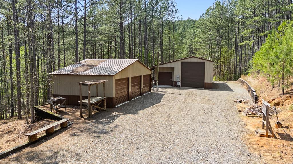EXPERIENCE LUXURY MOUNTAIN ESTATE LIVING AT ITS FINEST on just over four private, wooded acres. This exceptional log and stone home blends rustic elegance with high-end custom craftsmanship, offering 4 bedrooms, 3 full bathrooms, 2 half bathrooms, and multiple versatile bonus rooms.From the moment you enter, youre greeted by soaring vaulted ceilings with exposed beams and impeccable attention to detail at every turn. The home features TWO stunning floor-to-ceiling stacked stone fireplaces, creating warm and inviting gathering spaces. A private elevator provides convenience across levels, while a dedicated media room and integrated security system add both comfort and peace of mind. Outdoors, the estate is thoughtfully equipped with an impressive array of outbuildings, including a highly customized two-story office ideal for remote work or creative pursuits, an RV carport complete with a dump station, a 2-bay garage, and an additional 3-bay garage offering abundant storage and workspace. A greenhouse, pump house, and a beautifully crafted log gazebo housing an 8-person hot tub further elevate the propertys appeal. In addition is a fully equipped outdoor kitchen, a cozy fire pit area, and a garden complete with planter boxes and mature fruit treesperfect for both relaxation and sustainable living. This remarkable estate offers too many features to fully capturecomprehensive documentation is available detailing the extensive upgrades and amenities. A rare opportunity to own a truly distinctive mountain retreat.