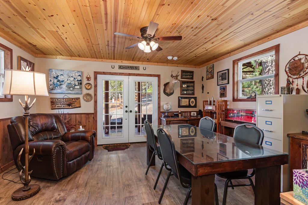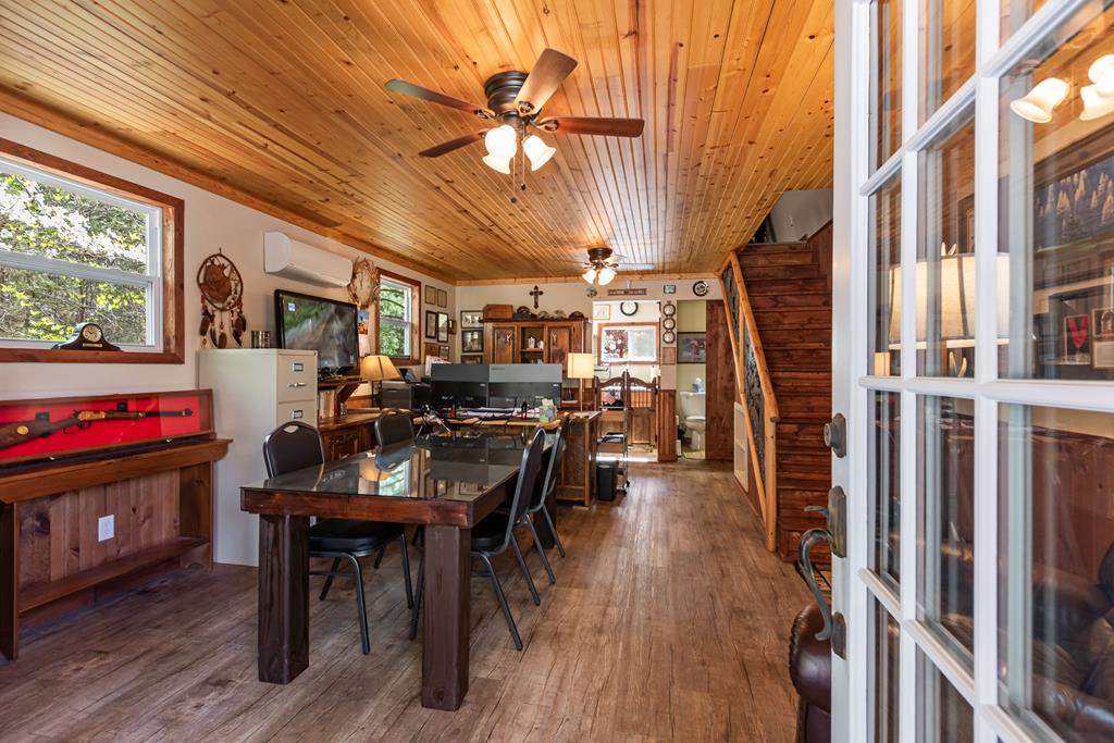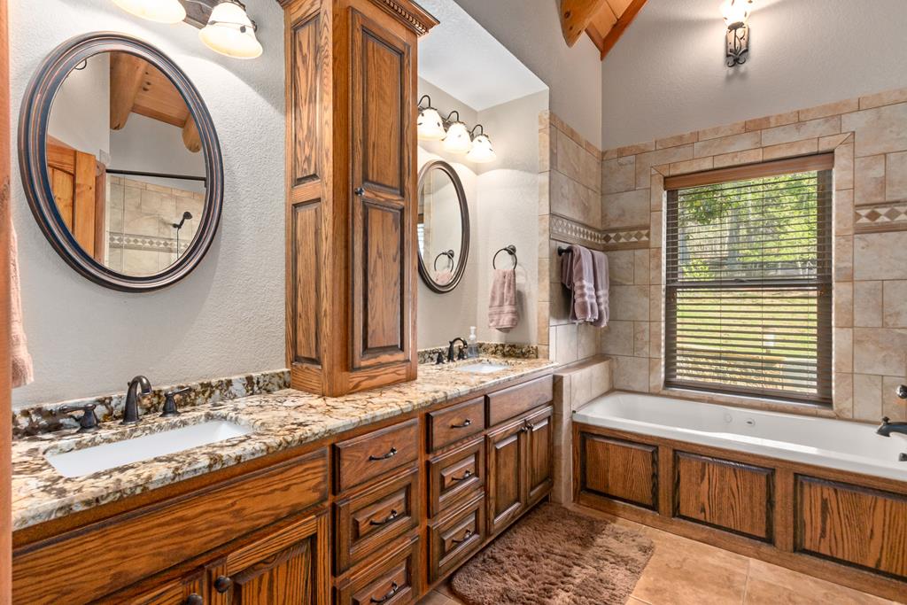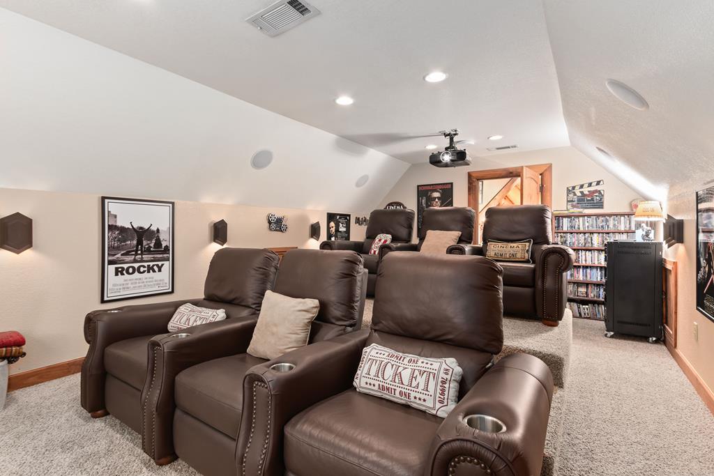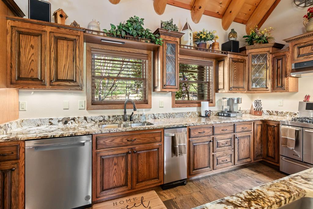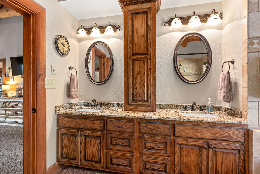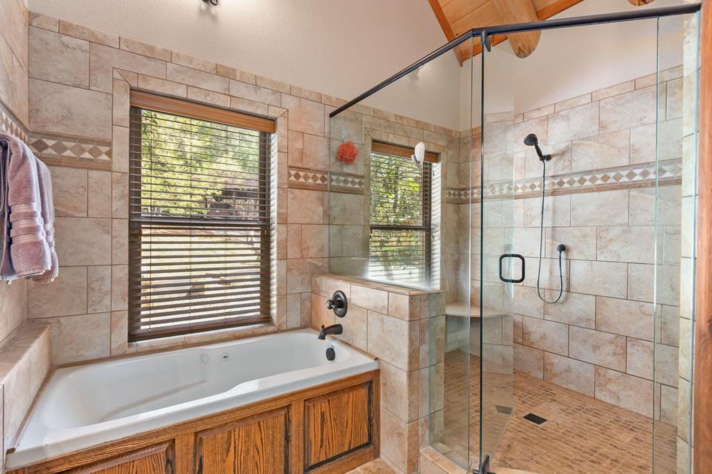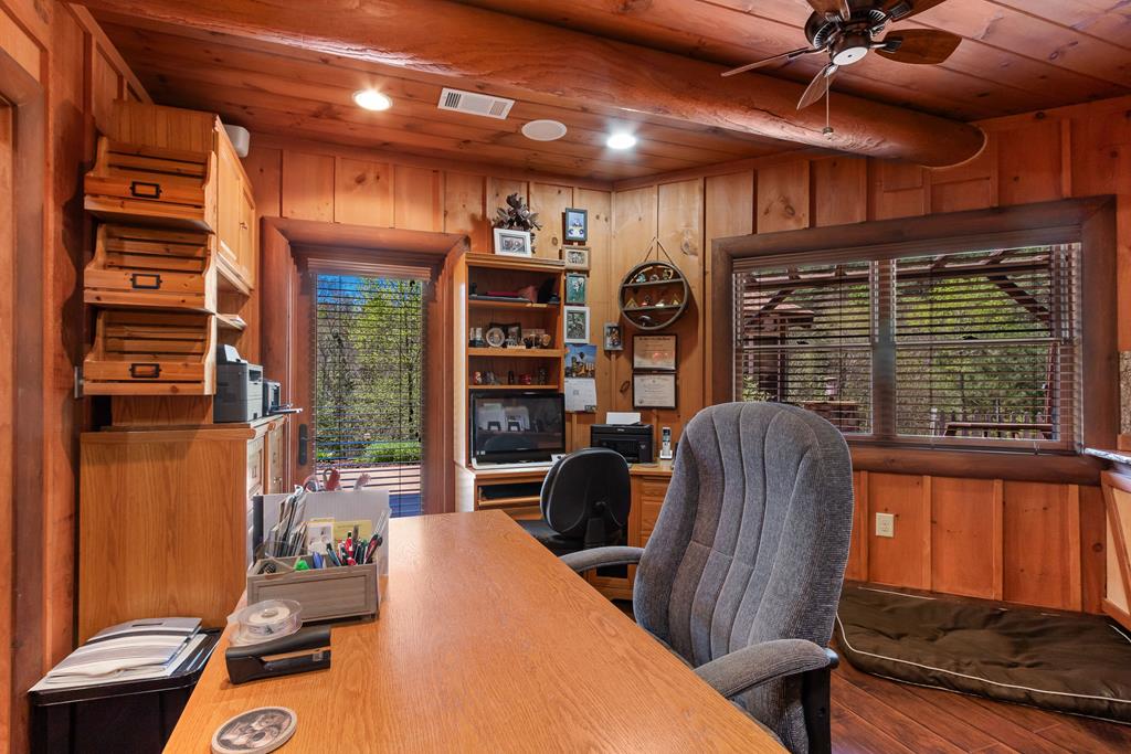 EXPERIENCE LUXURY MOUNTAIN ESTATE LIVING AT ITS FINEST on just over four private, wooded acres. This exceptional log and stone home blends rustic elegance with high-end custom craftsmanship, offering 4 bedrooms, 3 full bathrooms, 2 half bathrooms, and multiple versatile bonus rooms.From the moment you enter, youre greeted by soaring vaulted ceilings with exposed beams and impeccable attention to detail at every turn. The home features TWO stunning floor-to-ceiling stacked stone fireplaces, creating warm and inviting gathering spaces. A private elevator provides convenience across levels, while a dedicated media room and integrated security system add both comfort and peace of mind. Outdoors, the estate is thoughtfully equipped with an impressive array of outbuildings, including a highly customized two-story office ideal for remote work or creative pursuits, an RV carport complete with a dump station, a 2-bay garage, and an additional 3-bay garage offering abundant storage and workspace. A greenhouse, pump house, and a beautifully crafted log gazebo housing an 8-person hot tub further elevate the propertys appeal. In addition is a fully equipped outdoor kitchen, a cozy fire pit area, and a garden complete with planter boxes and mature fruit treesperfect for both relaxation and sustainable living. This remarkable estate offers too many features to fully capturecomprehensive documentation is available detailing the extensive upgrades and amenities. A rare opportunity to own a truly distinctive mountain retreat.