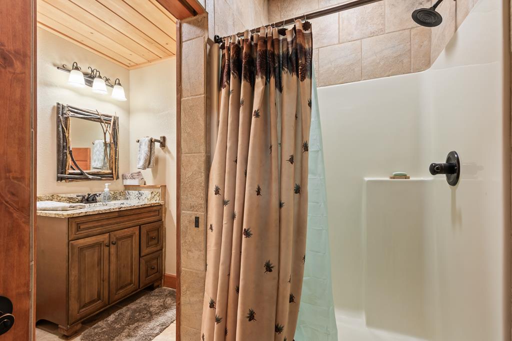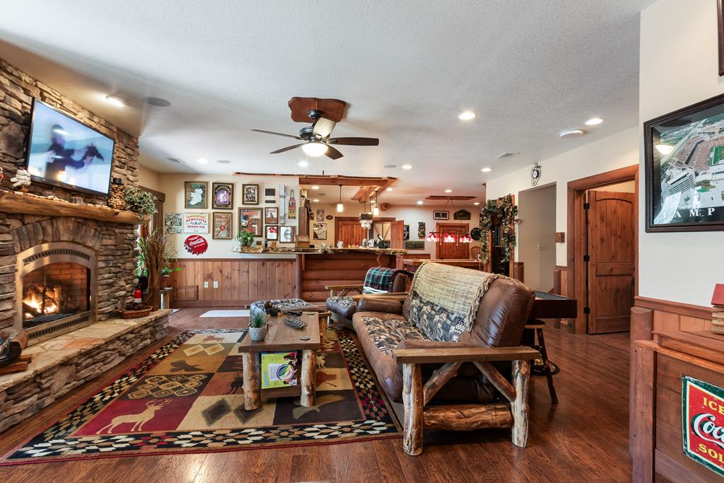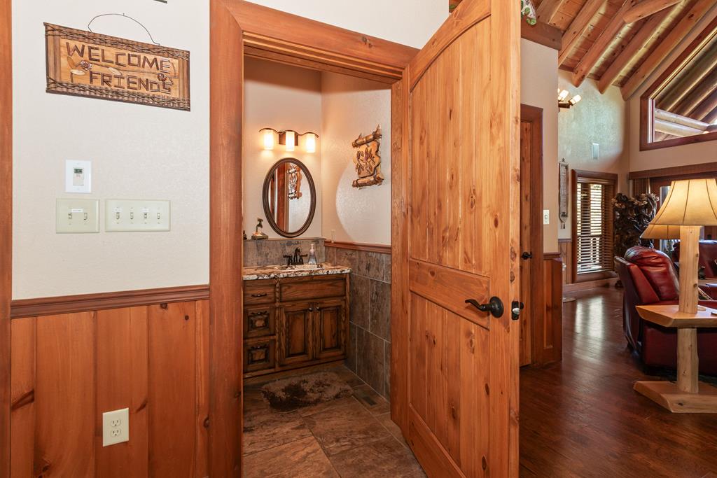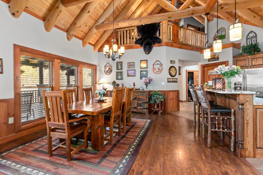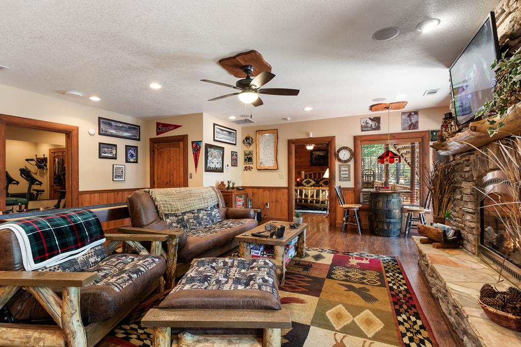 EXPERIENCE LUXURY MOUNTAIN ESTATE LIVING AT ITS FINEST on just over four private, wooded acres. This exceptional log and stone home blends rustic elegance with high-end custom craftsmanship, offering 4 bedrooms, 3 full bathrooms, 2 half bathrooms, and multiple versatile bonus rooms.