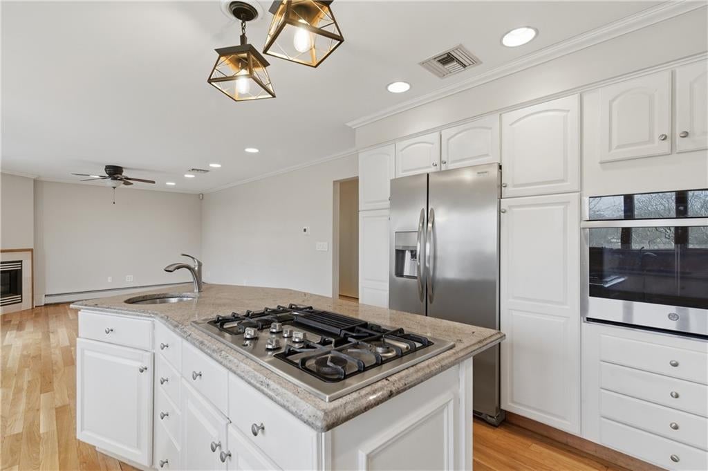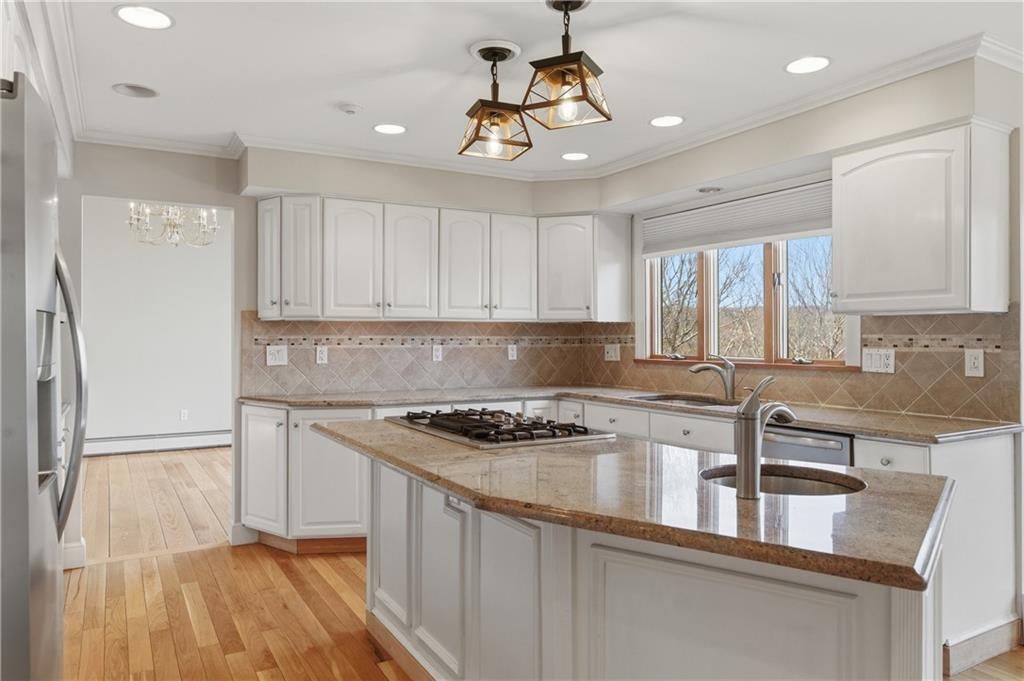 Tucked away in a peaceful Kirkbrae Estates cul-de-sac, this stately 45 bed, 3.5 bath COLN offers elegance, space, & versatility in an absolutely magical setting. Charming mahogany front porch to watch the sunsets, partial stone faade, classic wood clapboard exterior, and beautifully established landscapingw/ lawn sprinklers. GREAT CURB APPEAL. Open foyer w/gleaming maple hardwood flrs that flow seamlessly on both levels. Main flr features office w/French door, a lavette, and a fireplaced living rm that opens to a stunning cathedral dining rm. Magnificent windows frame serene views of the Blackstone River woods & a lush backyard. Spacious kitchen, featuring granite countertops, stainless appliances, & inviting breakfast nook that opens to family rm w/ gas fireplace & sliders to an oversized upper deck to enjoy breathtaking sunrises. 2nd floor primary suite features cathedral ceilings, generous closet space,& abundant light. En-suite bath offers jetted tub & separate shower enclosure. Two additional bedrms w/ double closets share a bath. Massive bonus rm ideal as a 4th bedrm, playrm, or game rm. Fully finished lower offers an exceptional in-law or extended stay setup. Full 2nd kitchen, dining area, family rm w/gas fireplace, bedrm, 3rd full bath, office space, storage & cedar closet. This level is perfect for multi-generational living. Gas heat, central AC, town water/sewer, & 3-car garage. Abundant sq. ftg & unbeatable quiet neighborhood location. PERFECT! SEE YOU SOON.