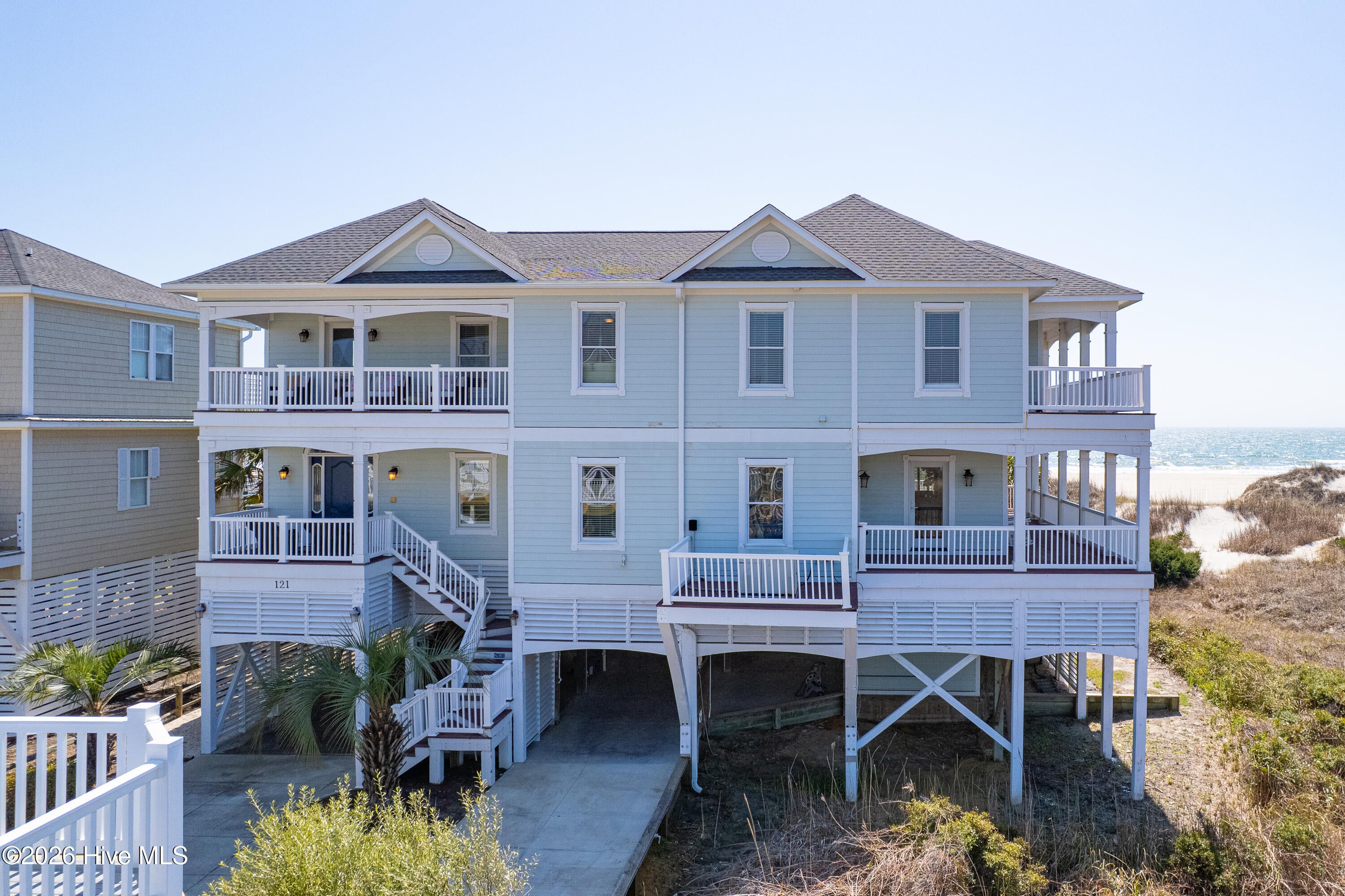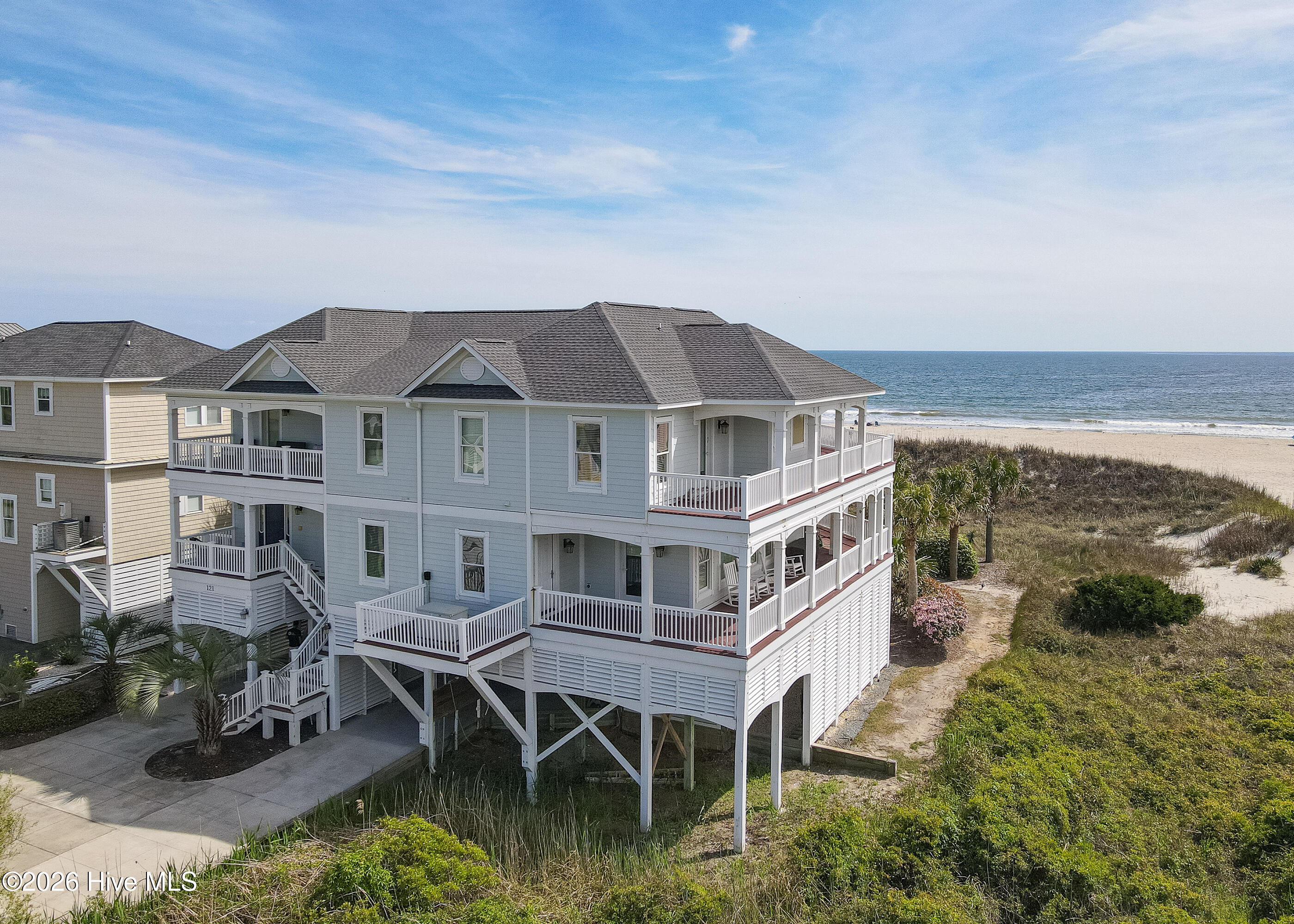 Set within the sought-after Turtle Creek neighborhood on Oak Island, this exceptional oceanfront property offers rare scale, privacy, and breathtaking scenery. Positioned on an expansive 80-foot-wide lot--far exceeding the typical 50 feet--the home provides a sense of openness and separation that is increasingly hard to find along the coast. A large protective dune and even a front lawn--both uncommon for oceanfront properties--enhance the settings beauty and functionality.Spanning over 4,500 square feet, this is one of the islands largest homes, designed for comfortable living and entertaining. The layout includes a spacious family room, formal living and dining rooms, and a breakfast area, along with an upstairs TV/lounge space that adds flexibility for gatherings or quiet retreat.There are four ensuite bedrooms, including two oversized suites, each with direct deck access. The primary suite serves as a private retreat, featuring a large bath with double toilets, a jetted tub, walk-in shower, extensive granite countertops, and a generous walk-in closet with custom built-ins. An upstairs office with a full bath and adjoining closet offers the potential to be converted into an additional bedroom.Additional features include an elevator, two laundry areas (upper and lower levels), abundant storage closets, extensive built-ins, generous kitchen cabinetry, and plantation shutters throughout much of the home. Oak flooring spans the first floor, with the exception of the kitchen and breakfast area which present a clear opportunity for redesign to suit your vision.Outdoor living is a standout, with expansive upper and lower wraparound porches totaling over 2,500 square feet, perfectly positioned to take in sweeping views of both the Atlantic Ocean and tranquil marshlands. Water is visible from nearly every room--an extraordinary feature that defines the homes living experience.Surrounded by beautifully designed, upscale coastal homes, this property combines location, size, and views with the opportunity for personalization. With much of the structural work already addressed and some materials already on site, the foundation is in place to unlock its full potential.The home presents an opportunity for a buyer to invest in meaningful improvements, including both structural and cosmetic updates, to fully realize its potential in this exceptional oceanfront location.This is more than an oceanfront home--its a rare opportunity to own one of the most desirable oversized lots on Oak Island, where privacy and panoramic ocean-to-marsh views come together in a way few properties can match.