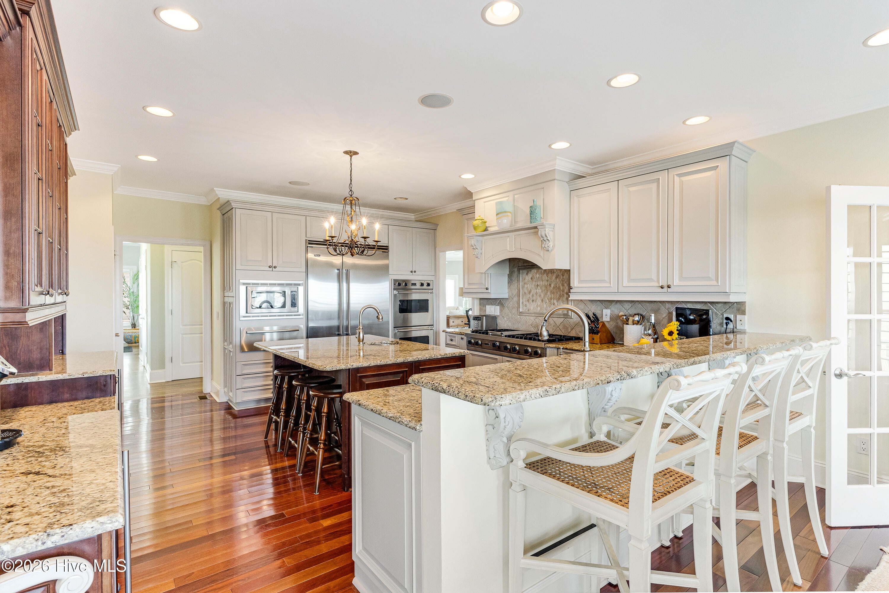 Welcome to this extraordinary custom-built estate offering over 6,000 finished square feet of refined living space, 5BR ,4.5 Baths, 3 car garage w/ custom storage, all conveniently located on a private 1.5-acre level lot backing to serene woods and mature trees. Thoughtfully and extensively remodeled within the past year, this home blends timeless elegance with todays most sought-after upgrades.At the heart of the home is a stunning, fully redesigned Chefs kitchen featuring an expansive center island, premium stainless steel appliances, quartz countertops, and high-end custom cabinetrydesigned to impress and built for everyday living. Newly refinished hardwood floors flow throughout the main level, enhancing the homes warmth and sophistication.The dramatic two-story family room showcases a floor-to-ceiling stone fireplace and walls of windows that flood the space with natural light. A spacious rear office with a distinctive picture window offers inspiring views of the backyard and visiting wildlifeperfect for working from home in tranquility.Upstairs, the luxurious owners suite is a true retreat, complete with a newly remodeled spa-like bath and multiple walk-in closets. Three additional generously sized bedrooms feature beautifully updated Jack-and-Jill baths and one en-suite bath, offering comfort and style for family and guests alike.The finished daylight walkout lower level is designed for entertaining and relaxation, offering a large game room, media/TV room, full bath, and opportunity for a fifth bedroom. An expansive unfinished storage areawith full-size windowsprovides exceptional potential for future finished space. Step directly outside the full walkout to your private outdoor oasis. Enjoy your own resort-style retreat featuring an incredible in-ground custom saltwater Gunite pool with waterfall, extensive concrete decking, auto retractable pool cover, and an enormous elevated Trex deck overlooking the groundsperfect for gatherings or peaceful evenings under the stars.All this privacy, yet just minutes to premier shopping, dining, top-rated schools, and major commuter routes.This is more than a homeits a rare opportunity to own a truly one-of-a-kind jewel. Do not miss out!