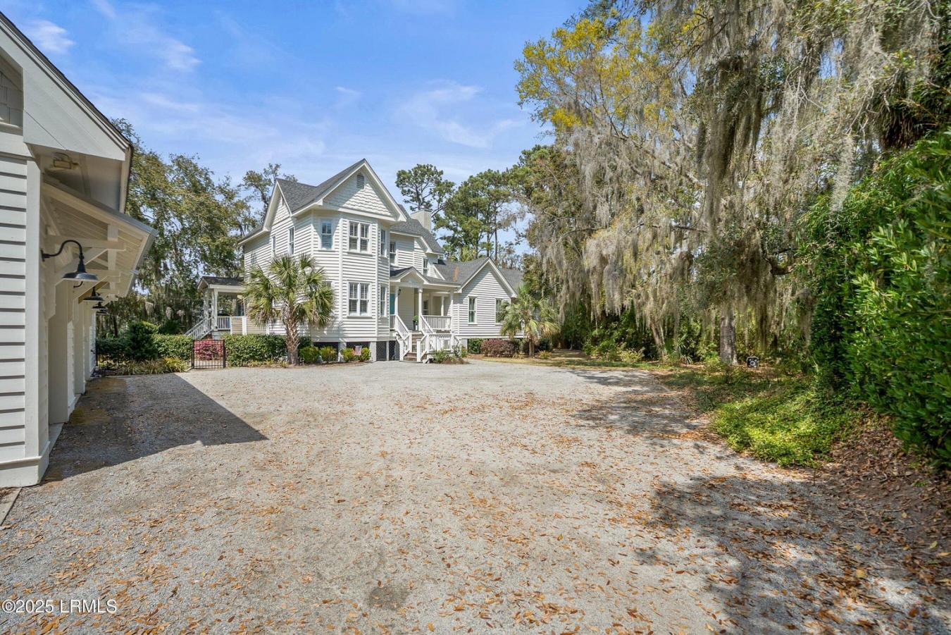 Lowcountry privacy, waterfront access, and exceptional versatility come together at 4 Pilot House Road on St. Helena Island. Set behind a fully fenced and gated entrance on .93 private acres, this fully furnished property is surrounded by mature trees and established landscaping, creating a peaceful retreat with marsh views and direct access to the water with a private dock. Fresh exterior paint gives the home and outbuildings an updated, polished look. The main home offers 4 bedrooms and 3.5 baths, blending timeless charm with thoughtful updates designed for comfortable coastal living. A standout feature is the spectacular main-level primary suite addition, offering beautiful views, access to the rear screened porch, a spacious bedroom, a large en suite bath, and an oversized closet. The updated kitchen features custom cabinetry, quartz countertops, tile flooring, and stainless appliances. Outdoor living is central to the experience, with expansive porches and inviting screened spaces that make it easy to relax, entertain, and enjoy the natural surroundings. For buyers seeking flexibility, the detached 3-car garage is a rare and valuable feature, topped by a fully finished guest house with its own living room, kitchen, large bedroom, and full bath-ideal for guests, extended stays, private quarters, or added functionality. The garage workshop also includes a convenient half bath, adding even more functionality to the space. With no HOA, a private dock with a boat lift, and access to Jenkins Creek for boating, fishing, and exploring the waterways, this property captures the lifestyle that makes St. Helena Island so special. Located just minutes from town, grocery stores, local dining, and Eddings Point boat landing, this is a rare opportunity to own a private, fully furnished Lowcountry retreat with both convenience and character.