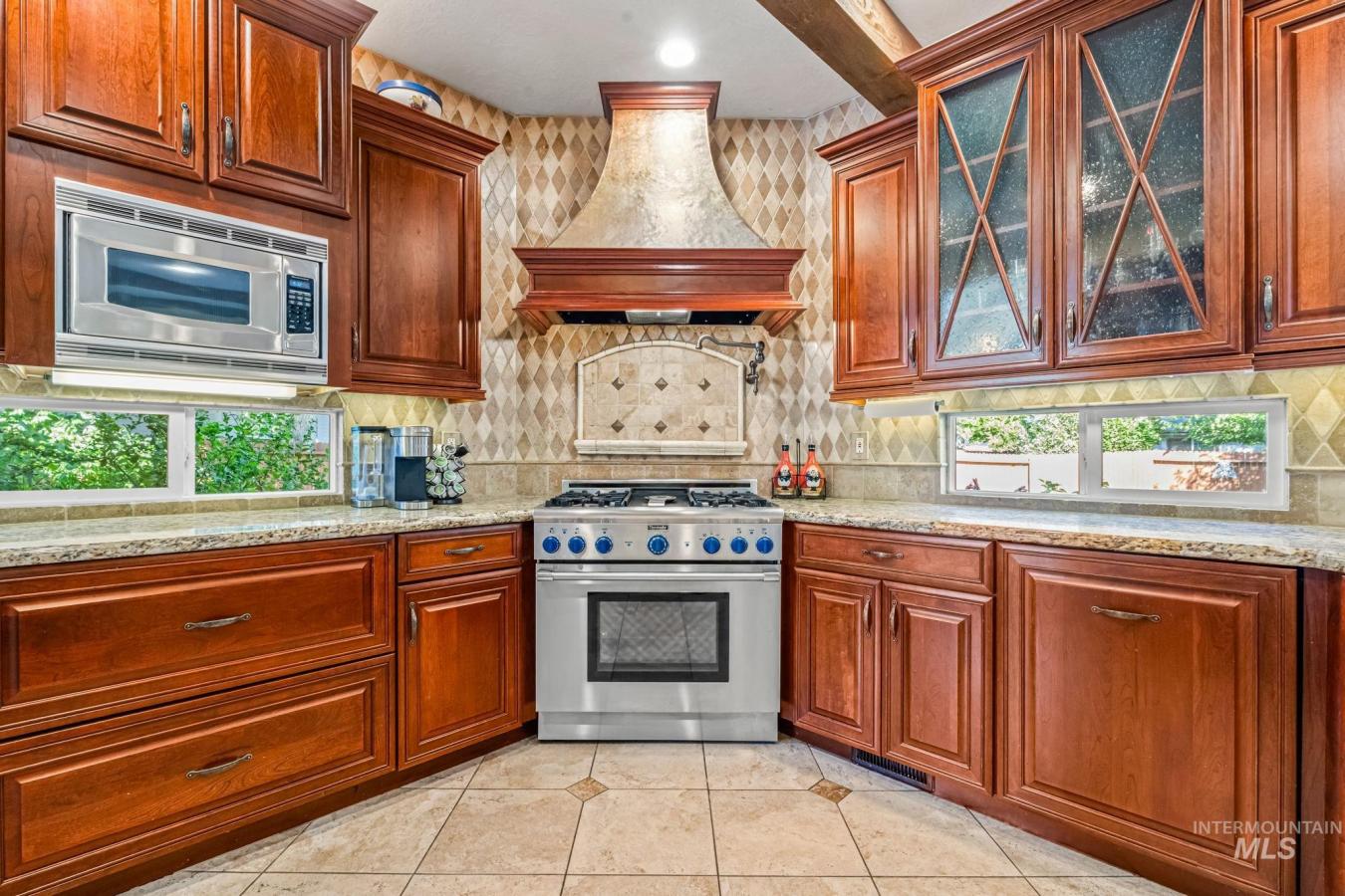 Get ready to fall in love with a home full of charm, style, and standout details! Fresh exterior paint and an upgraded HVAC system with a humidifier set the stage for comfort. Step into a grand entry with tall ceilings that lead to a warm living area featuring beautiful Italian-style beams. The kitchen is a dream with custom cabinets, soft-close drawers, pullouts, a Thermador oven with a griddle, a pot filler, a copper apron sink, and a Bosch dishwasher. The backyard shines with a wood-fired pizza oven, lush landscaping, mature trees, nectarines, blackberries, and vibrant front yard blooms. Dont miss the RV parking! The spacious primary suite includes mountain views, a bonus mirrored closet, double doors, dual sinks, a soaker tub, and a brand new shower! Storage is generous with oversized closets, garage shelving, and smart built-ins. Located in one of Eagles most established communities with over 44 acres of walking paths, waterfalls, and mature trees. Dont miss your chance to live in the beautiful Lexington Hills community!