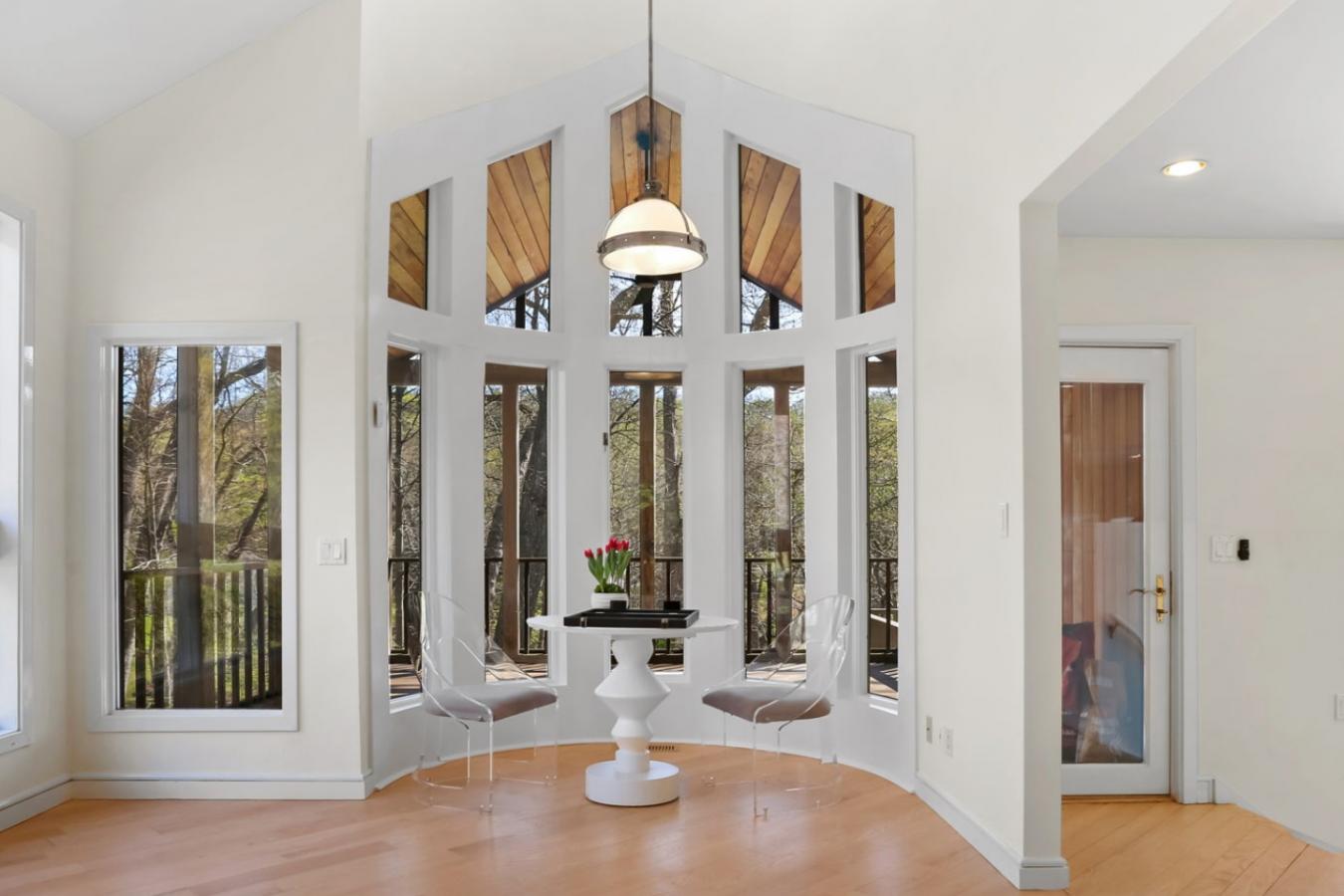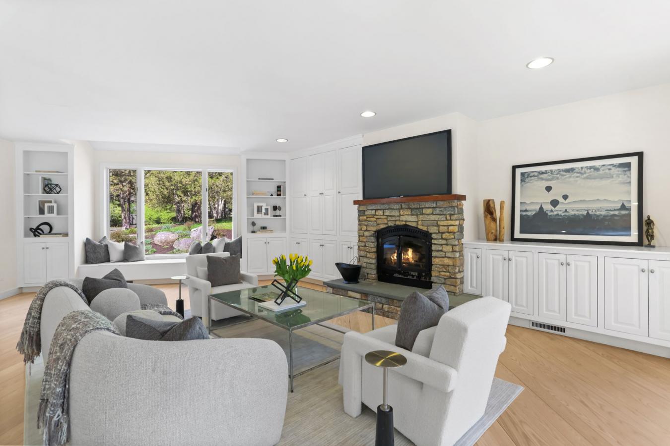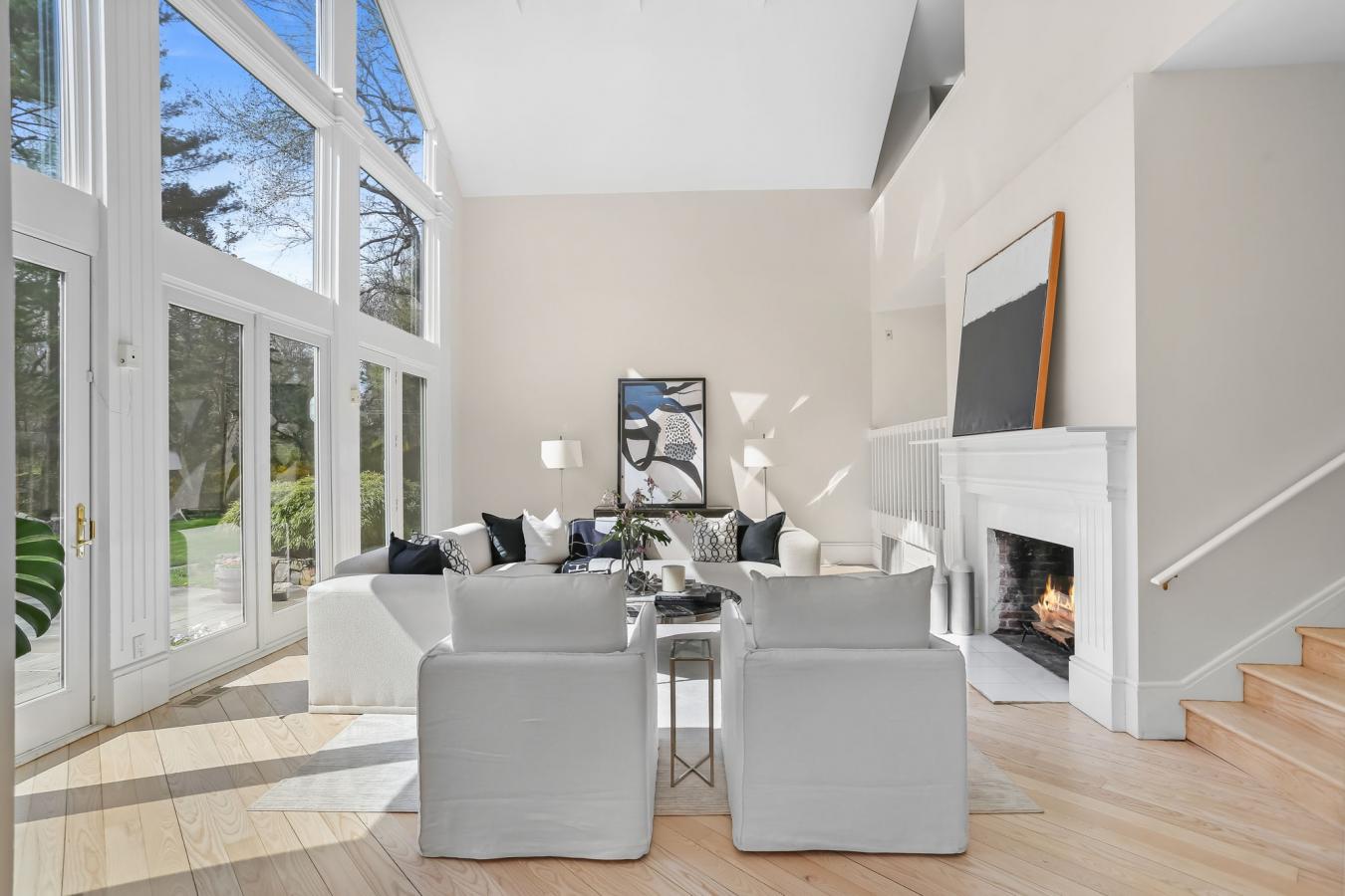 A four-season retreat-where open lawns, a beautiful pool, and the surrounding landscape create a sense of quiet luxury. Set along the Saugatuck River on a quiet private Lower Weston Cul de Sac, this architecturally distinctive contemporary is privately sited on 2.49 acres, offering scale, light, and direct river access in one of Westons most desirable settings. A soaring cathedral ceiling Great Room anchors the home, defined by dramatic vertical volume, expansive glass, and extraordinary natural light. A central fireplace adds warmth and balance to the openness, creating a space equally suited for entertaining or quiet evenings at home. The kitchen is thoughtfully positioned at the heart of daily living, opening seamlessly to the family room with fireplace. French doors lead directly to the deck, Gunite pool, and BBQ terraces, creating effortless indoor outdoor flow and making summer gatherings and everyday living feel connected to the landscape. A striking three season porch with cathedral ceilings extends the architectural expression and provides a serene transitional space overlooking the natural surroundings. A substantial private office with fireplace offers an exceptional work from home retreat. The primary suite is a sanctuary featuring its own fireplace and a newly renovated spa bath. 3/4 additional bedrooms provide comfort and flexibility. The grounds unfold toward the Saugatuck River, offering direct access for kayaking, fishing, or simply enjoying the peaceful waterfront setting. In winter months, upper level glimpses of the river add seasonal dimension. Additional highlights include a three-car garage and solar for energy efficiency. Architecturally expressive yet comfortably livable, this lower Weston contemporary blends light, privacy, and natural beauty just minutes from Westport amenities, commuting access, and Westons award-winning schools.