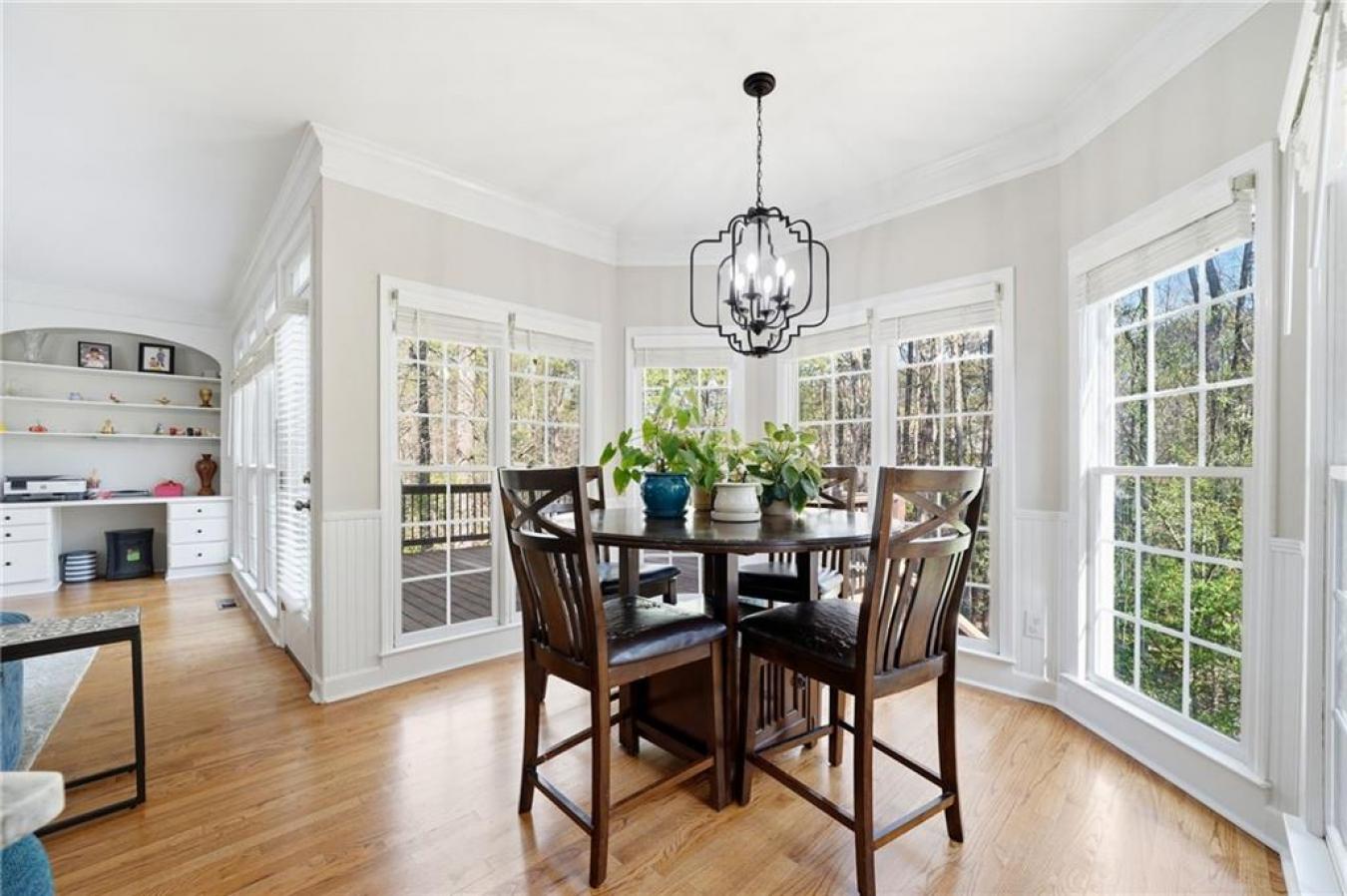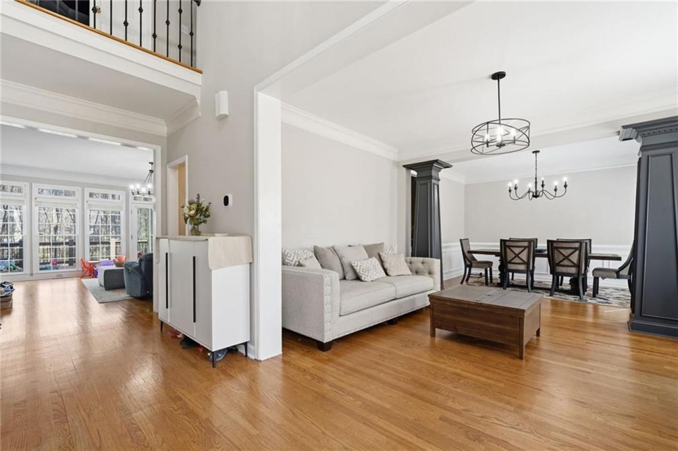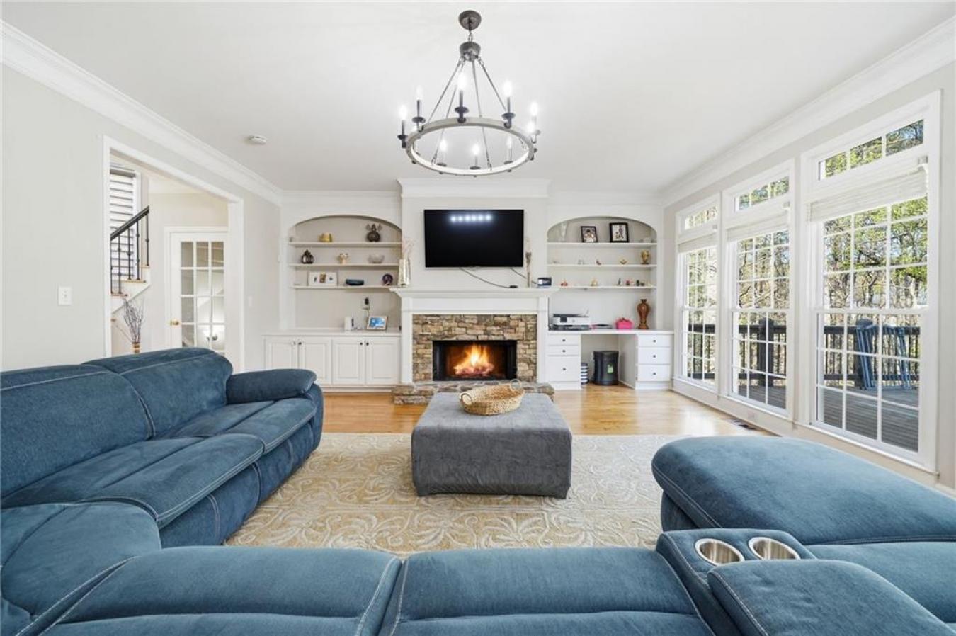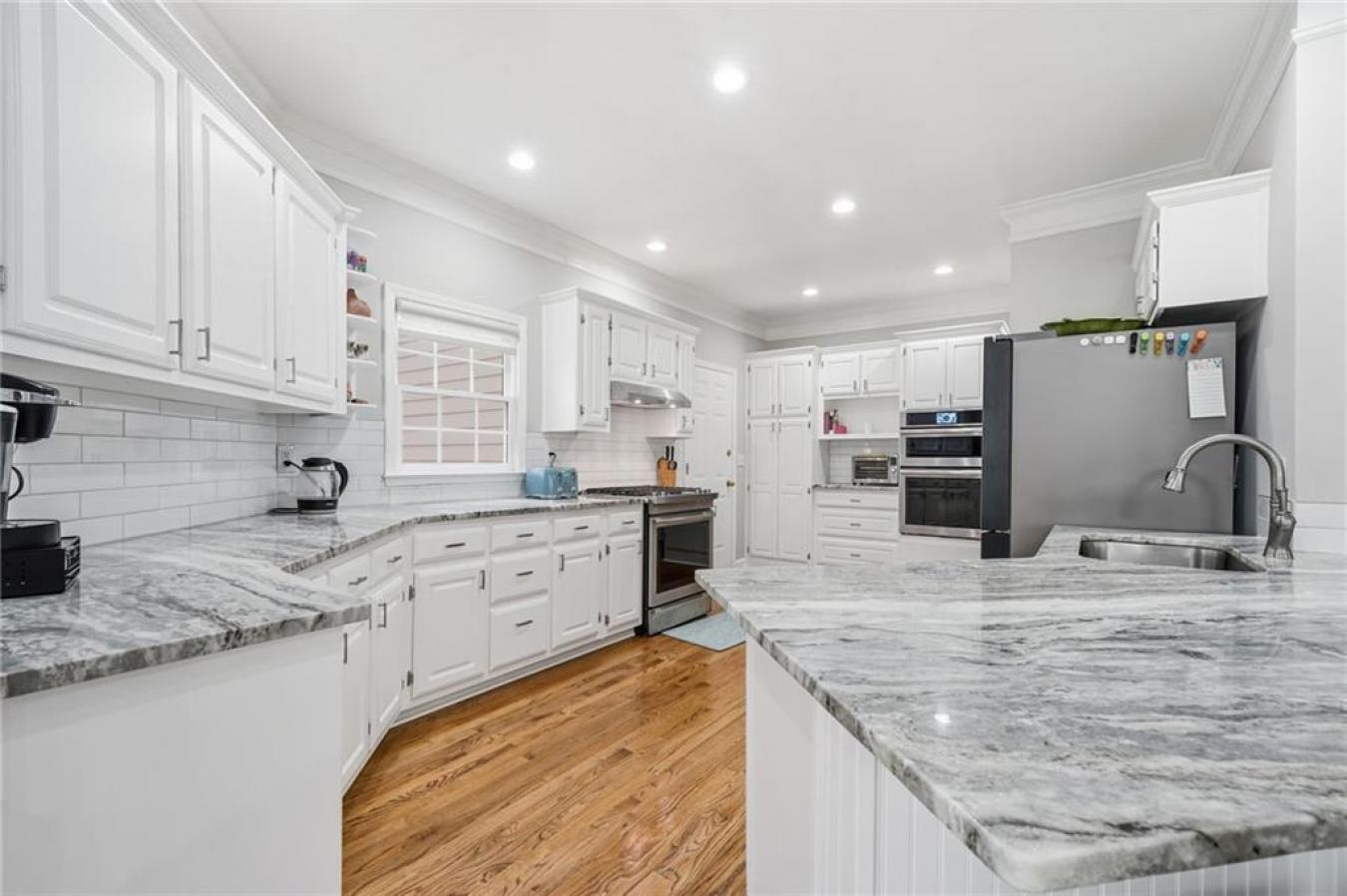 A new roof installed in December 2025 and fresh interior paint set the stage for this beautifully maintained 5 bedroom, 3.5 bath home in an established swim and tennis community. The kitchen is a standout with abundant white cabinetry, generous counter space, updated countertops, and JennAir appliances, all opening easily to the main living areas for effortless everyday living and entertaining. This beautifully presented home welcomes you with timeless curb appeal, a charming arched entry, and manicured landscaping. Inside, a bright two-story foyer and gleaming hardwood floors lead to a formal living room or den and a separate dining room with elegant trim detail, creating a warm and inviting feel throughout. The spacious family room features a cozy fireplace, custom built-ins, and large windows that fill the space with natural light, while the bayed breakfast area is surrounded by windows and peaceful wooded views. Upstairs, the oversized primary suite is a true retreat with a deep tray ceiling and ample space to unwind, while the primary bath offers high ceilings, dual vanities, a soaking tub framed by windows, a separate shower, and a large walk-in closet with custom organization potential. The secondary bedrooms are spacious and versatile, ideal for family, guests, or home office needs. The finished basement expands the home even further with a second family room; a custom bar area with rich cabinetry and tile detail; an additional bedroom and full bath; and flexible space perfect for a media room, playroom, gym, or private guest suite. Enjoy outdoor living on the elevated deck overlooking a fenced backyard with mature trees, offering both privacy and a serene setting. Additional highlights include crown molding, built-in shelving, updated lighting, and thoughtful details throughout. Conveniently located just minutes from I-985 and I-85, as well as shopping and dining, this home offers the perfect blend of comfort, space, and location.