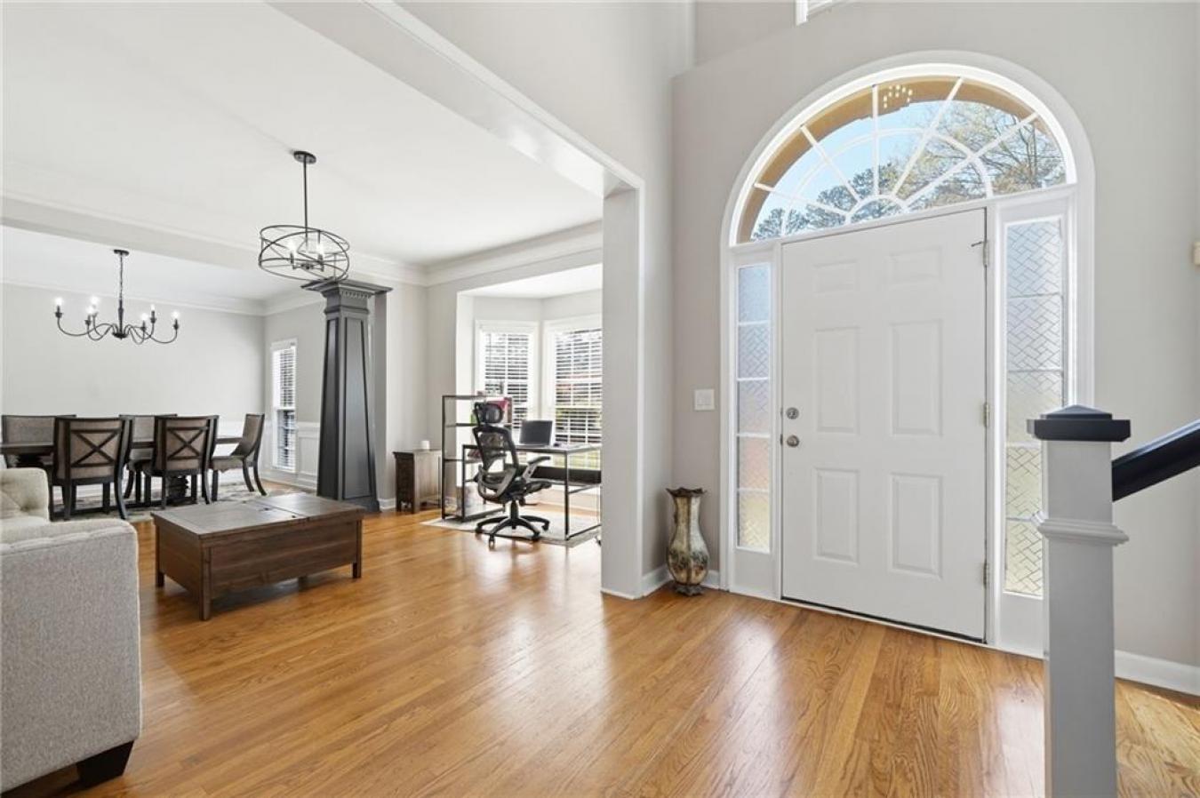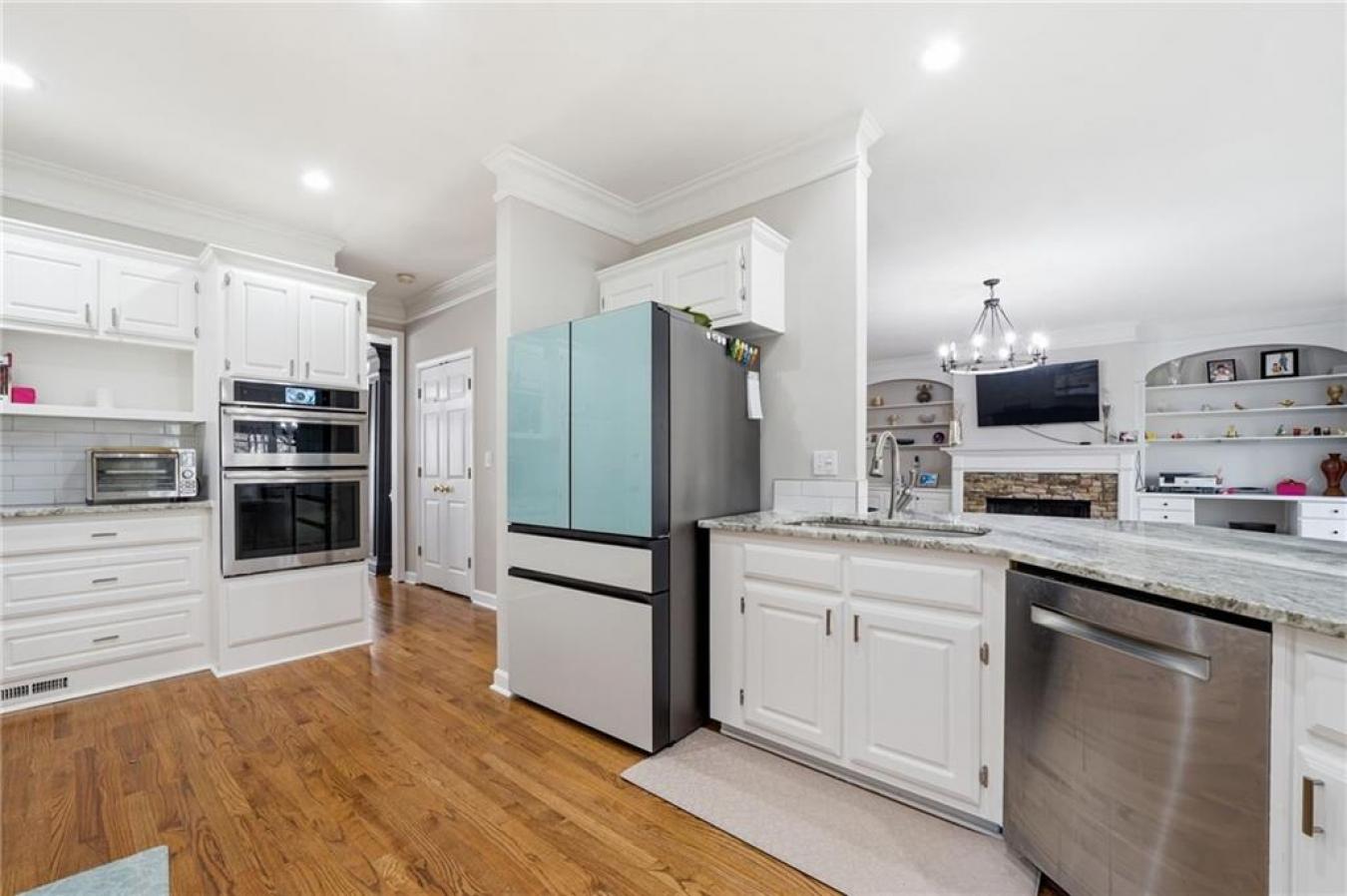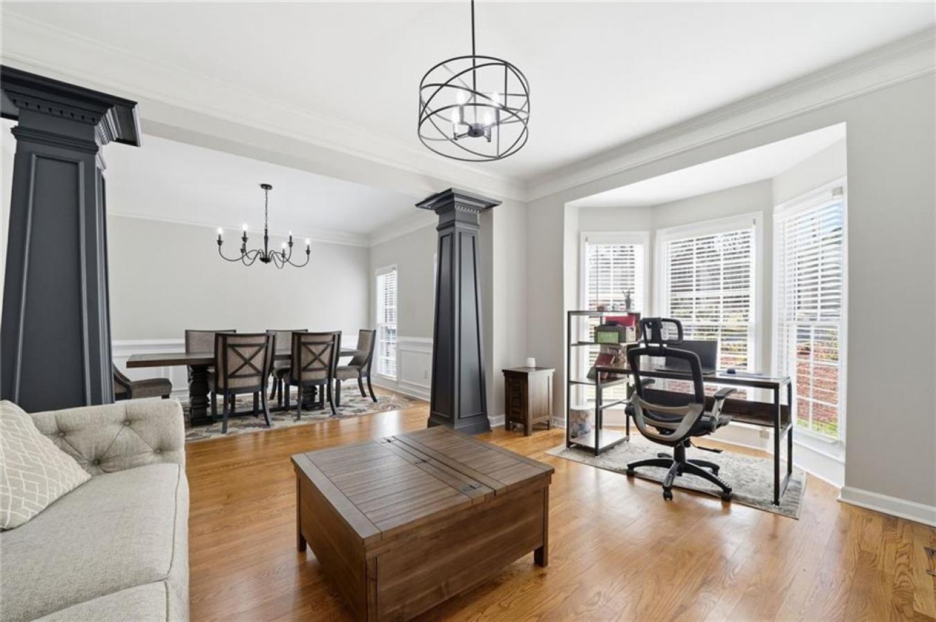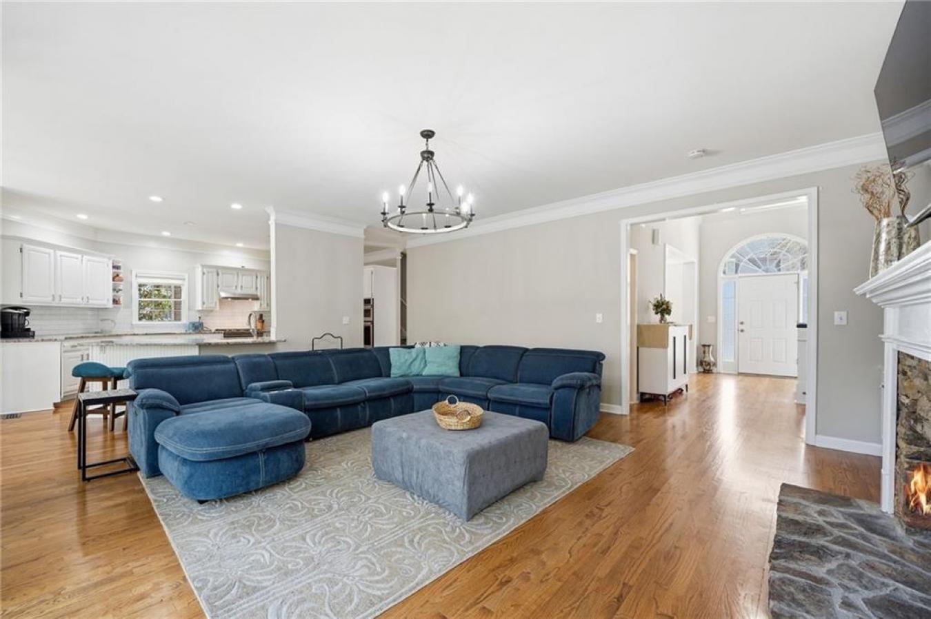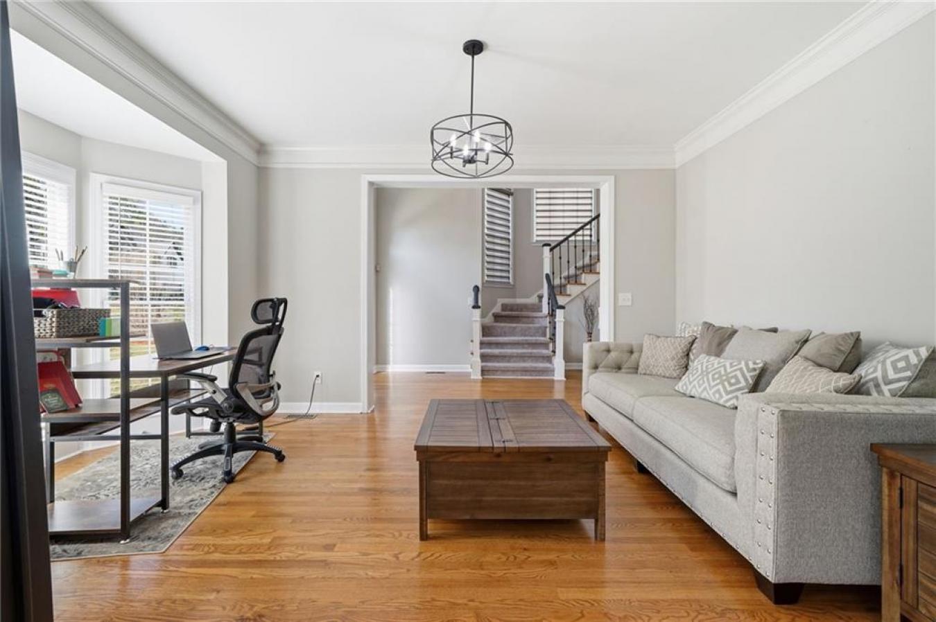 A new roof installed in December 2025 and fresh interior paint set the stage for this beautifully maintained 5 bedroom, 3.5 bath home in an established swim and tennis community. The kitchen is a standout with abundant white cabinetry, generous counter space, updated countertops, and JennAir appliances, all opening easily to the main living areas for effortless everyday living and entertaining. This beautifully presented home welcomes you with timeless curb appeal, a charming arched entry, and manicured landscaping. Inside, a bright two-story foyer and gleaming hardwood floors lead to a formal living room or den and a separate dining room with elegant trim detail, creating a warm and inviting feel throughout. The spacious family room features a cozy fireplace, custom built-ins, and large windows that fill the space with natural light, while the bayed breakfast area is surrounded by windows and peaceful wooded views. Upstairs, the oversized primary suite is a true retreat with a deep tray ceiling and ample space to unwind, while the primary bath offers high ceilings, dual vanities, a soaking tub framed by windows, a separate shower, and a large walk-in closet with custom organization potential. The secondary bedrooms are spacious and versatile, ideal for family, guests, or home office needs. The finished basement expands the home even further with a second family room; a custom bar area with rich cabinetry and tile detail; an additional bedroom and full bath; and flexible space perfect for a media room, playroom, gym, or private guest suite. Enjoy outdoor living on the elevated deck overlooking a fenced backyard with mature trees, offering both privacy and a serene setting. Additional highlights include crown molding, built-in shelving, updated lighting, and thoughtful details throughout. Conveniently located just minutes from I-985 and I-85, as well as shopping and dining, this home offers the perfect blend of comfort, space, and location.