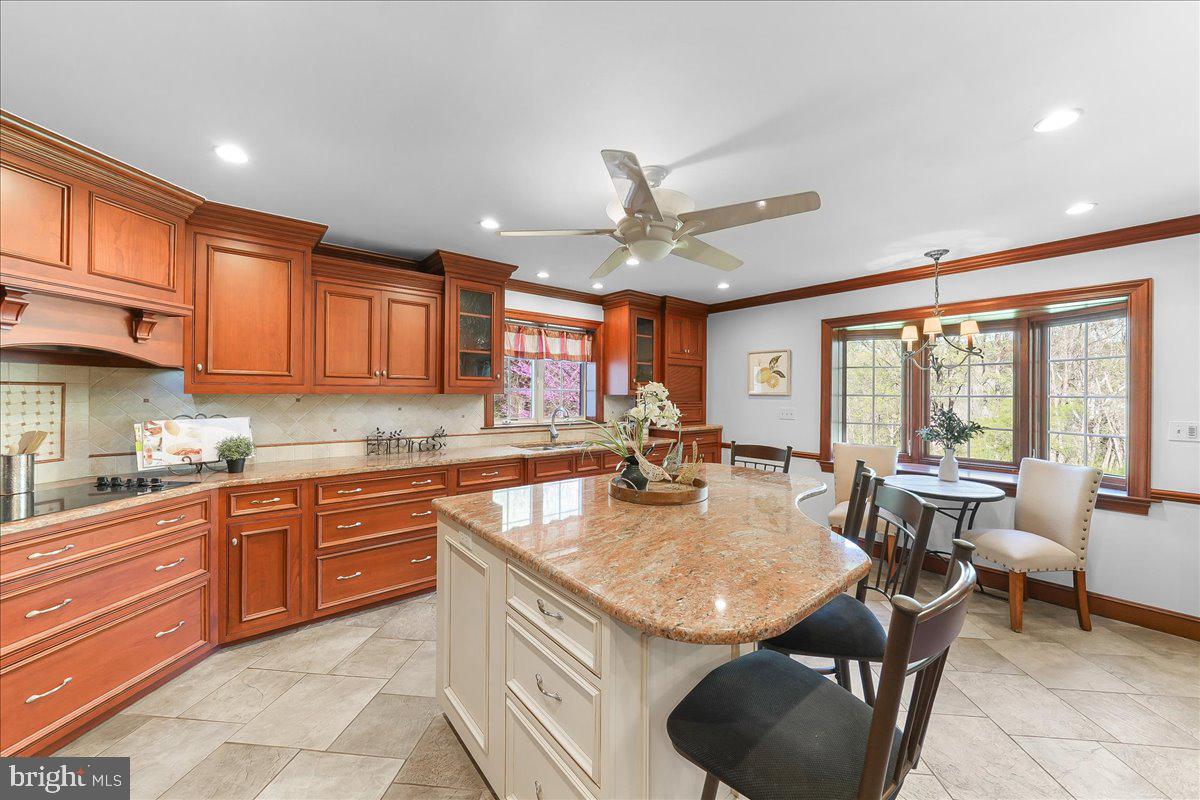 This Toll Brothers home is set within a highly sought-after, established community, offering a timeless design and a generous living space. The conservatory is a true highlight, offering a bright and inviting space that connects to the formal living & gathering areas, enhancing the homes open flow. The finished walk-out basement adds exceptional versatility, providing expansive recreation space with direct access to the patio and rough plumbing already in place for a future full bathroom. A welcoming two-story foyer opens to gleaming hardwood floors and expansive windows that fill the home with natural light. The family room features vaulted ceilings and a gas fireplace, and opens directly to the kitchen and breakfast area. The kitchen is thoughtfully designed with granite countertops, white 42-inch cabinetry, black stainless steel appliances, and a center island perfect for storage and casual seating. A skylit breakfast area adds warmth and natural light, with direct access to the deck and patio for effortless indoor-outdoor living. The first floor also includes a private office with custom built-ins and a laundry room with access to the yard. Upstairs, the primary suite offers a spacious retreat with a sitting area, walk-in closet, and an en suite bath complete with a Jacuzzi tub, stall shower, dual vanity, and skylight. Additional bedrooms are well-proportioned and filled with natural light. Additional highlights include a three-car garage and a beautifully sized yard.
