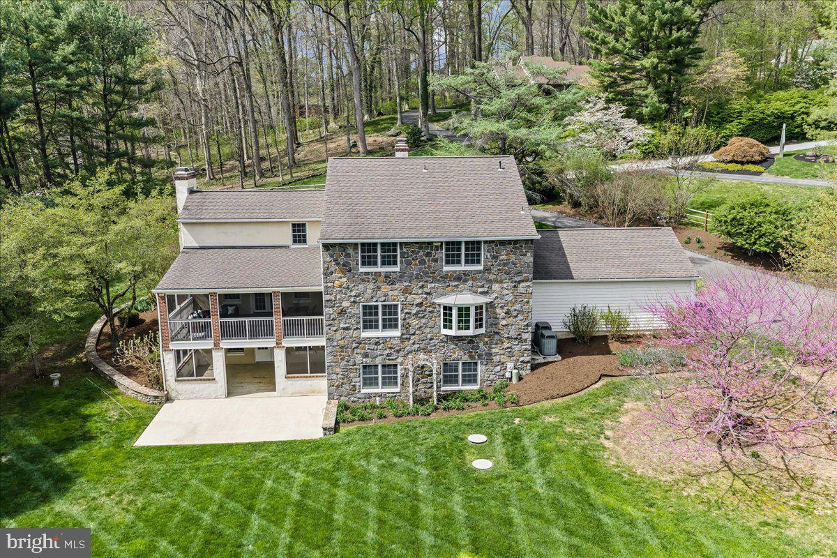 Welcome to 1200 Winderly Lane in Edgemont Township, Newtown Square. This stunning estate home sits on a private 2.36 acre wooded lot and offers 5 bedrooms, 4 full bathrooms, and 3 half bathroomsperfect for comfortable living and elegant entertaining.A grand foyer opens to a spacious formal living room with fireplace and a large dining room. The sun-filled family room features a vaulted ceiling and gas fireplace, creating a warm and inviting space. The eat-in kitchen is ideal for everyday living and entertaining, complete with a large gas range, center island with seating, and easy access to a walk-in pantry. Just off the kitchen, youll find a convenient first-floor laundry room with access to the 3-car garage and backyard. A private home office with its own balcony provides a quiet and functional workspace. Two half bathrooms are conveniently located on the first floor.Upstairs, the home offers 5 generously sized bedrooms and 4 full bathrooms. The primary suite features a large soaking tub, separate glass shower, and a walk-in closet with built-ins. Two bedrooms have en-suite bathrooms, while a Jack and Jill bath connects the remaining bedrooms. All bedrooms have hardwood flooring and ample closet space. The finished walkout basement adds valuable living space and includes a dedicated home theaterperfect for entertaining or relaxing. The basement also includes a private flex room, a half bathroom, generous storage space and a cedar closet.Outdoor living is just as impressive with an expansive deck overlooking peaceful wooded views. The property also features raised garden beds with a drip irrigation system, ready for planting. A new roof was installed in 2024.Located in a prime location within the Rose Tree Media School District, this exceptional home offers space, privacy, and timeless appeal in one of Newtown Squares most desirable settings.