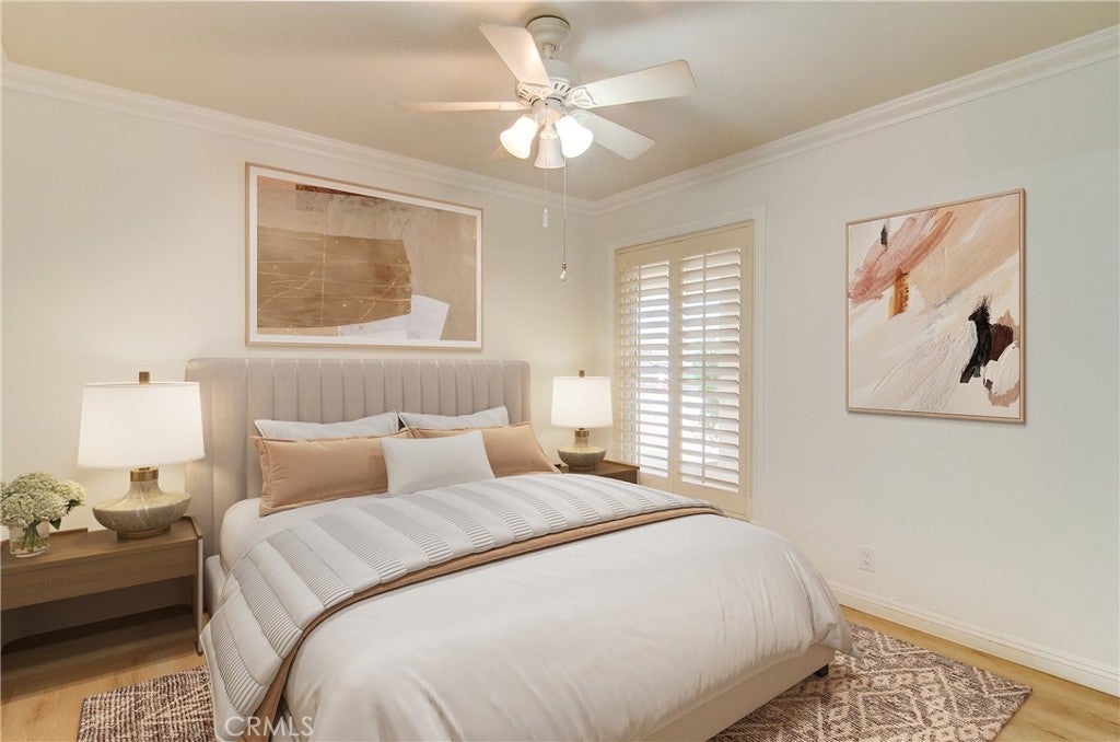Fantastic purchase opportunity on this 4-bedroom, 2-bathroom single-story Princeton model in the popular College Park East neighborhood of Seal Beach. Fresh interior painting and new Luxury Vinyl Flooring throughout the living area. Outstanding features of this property include great curb appeal, a double-door entry, custom-tiled entry, new LVP flooring in the living room, dining room & bedrooms, crown molding, a fireplace in the living room, vaulted ceilings, plantation shutters throughout, an open and bright kitchen with granite countertops, a full granite backsplash, ample pantry space, and recessed lighting. There is a separate family room with a built-in desk and corner cabinet. The large primary bedroom features a walk-in closet and sliding glass doors to the backyard. The primary bathroom has been updated with a custom tile vanity, shower and flooring. Dual-pane windows and sliding doors are throughout the home and the bedrooms are a nice size. The hallway bathroom includes a dual-sink custom-tiled vanity and tub wall. AC has been recently upgraded in 2023. The laundry room includes a washer and dryer, and the bedrooms have ceiling fans and mirrored closet doors. The verdant and private backyard features mature trees creating an oasis for entertaining, a built-in BBQ, and an outdoor patio area. A 2-car attached garage has extra built-in storage cabinets and the driveway features an attractive flagstone ribbon and low maintenance landscape. This beautiful home is located in the coveted Los Alamitos Unified School district and close to shopping, restaurants, golf courses, beaches, and freeways. Dont miss out!